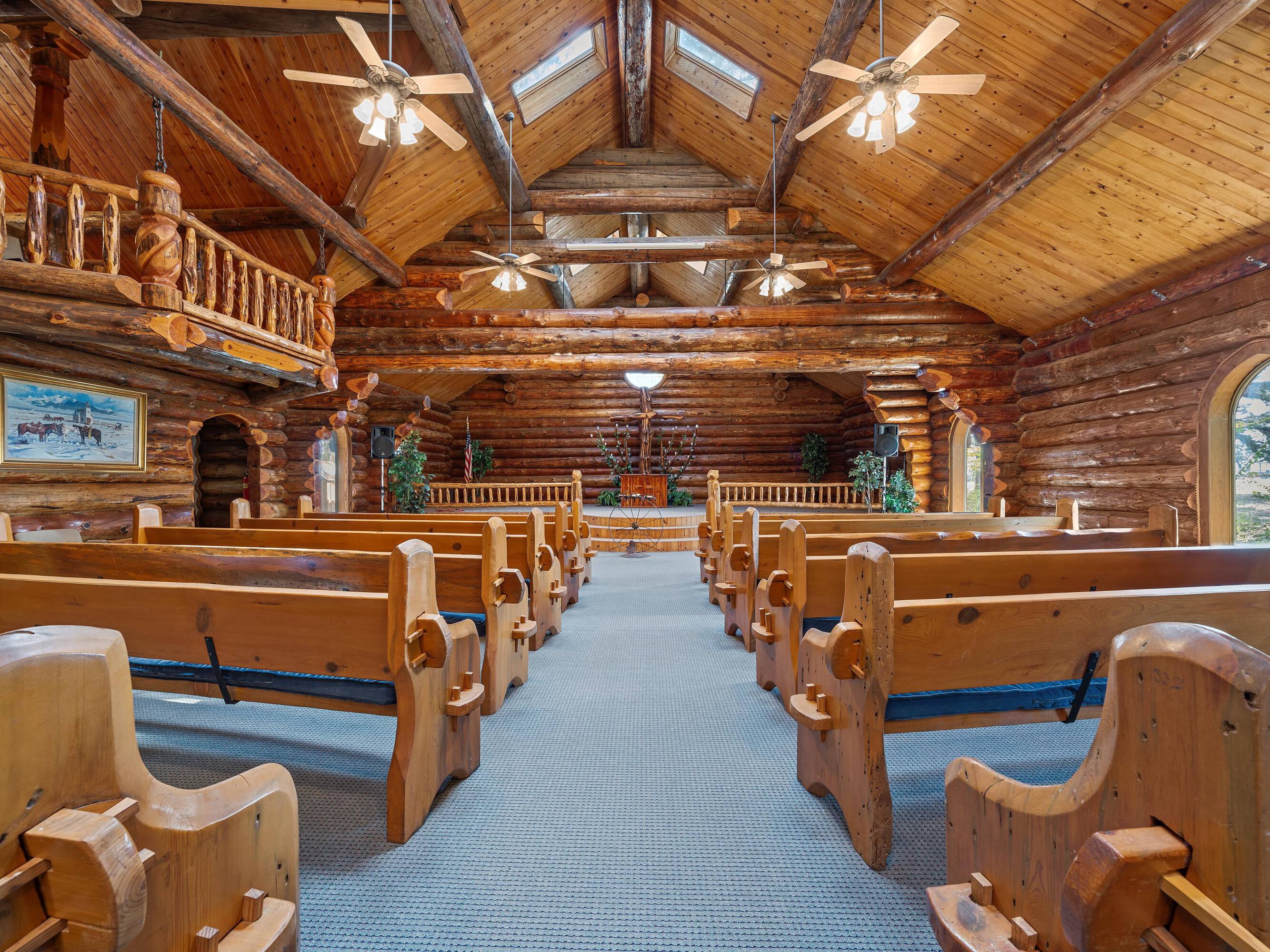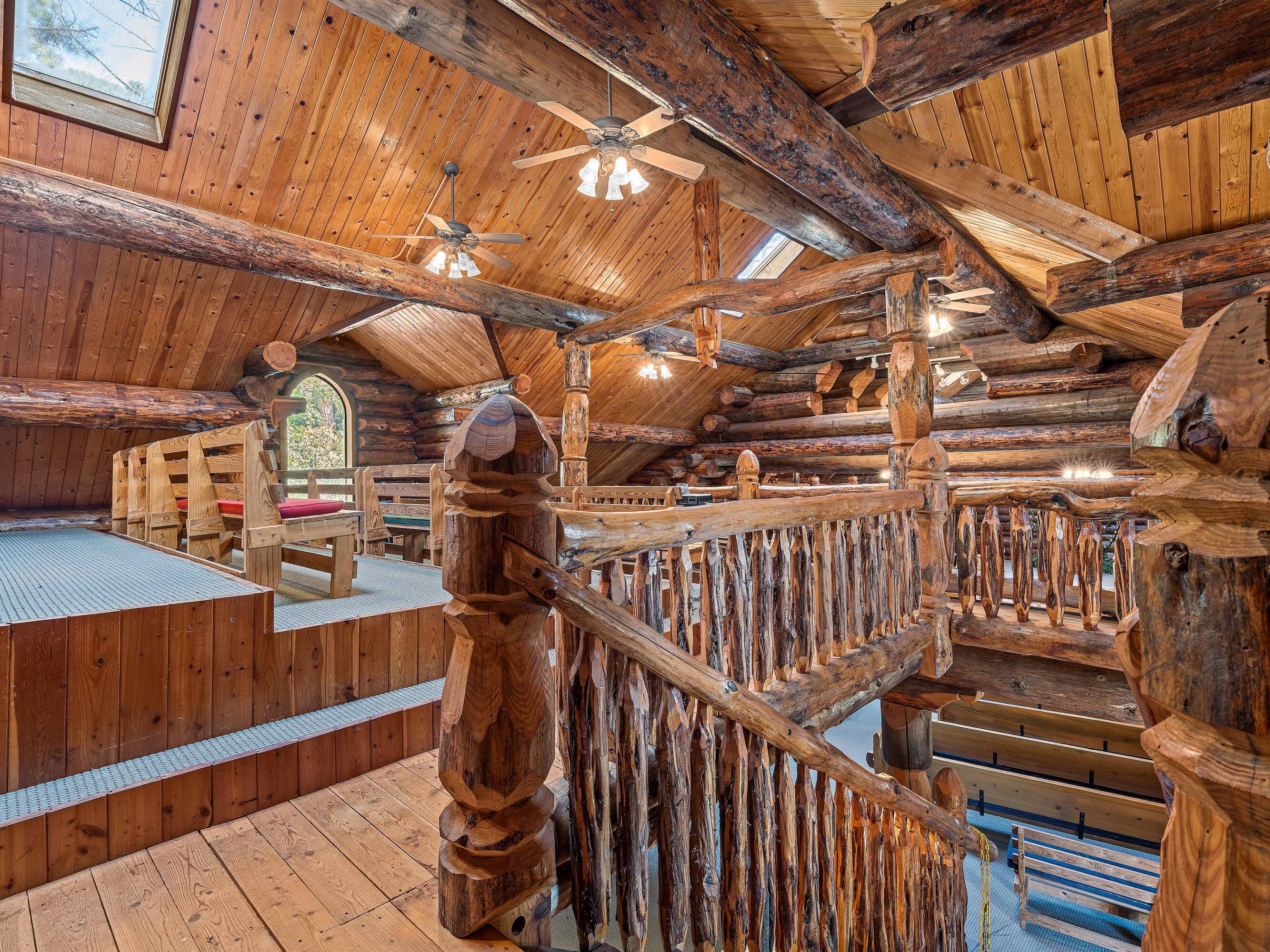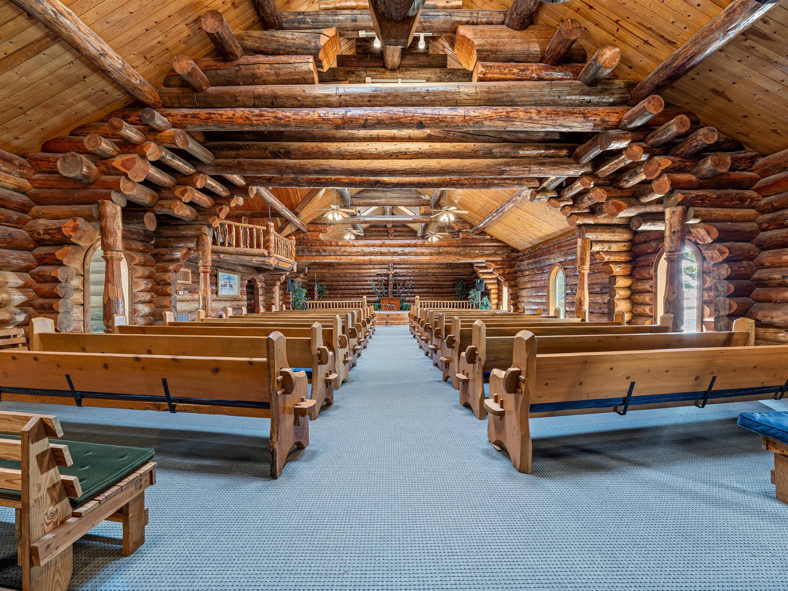This property features: Scribed log cabin church offering a unique and peaceful retreat.; Handcrafted with precision and rustic elegance.; Vaulted wood ceilings and exposed beams with natural light create a warm atmosphere.