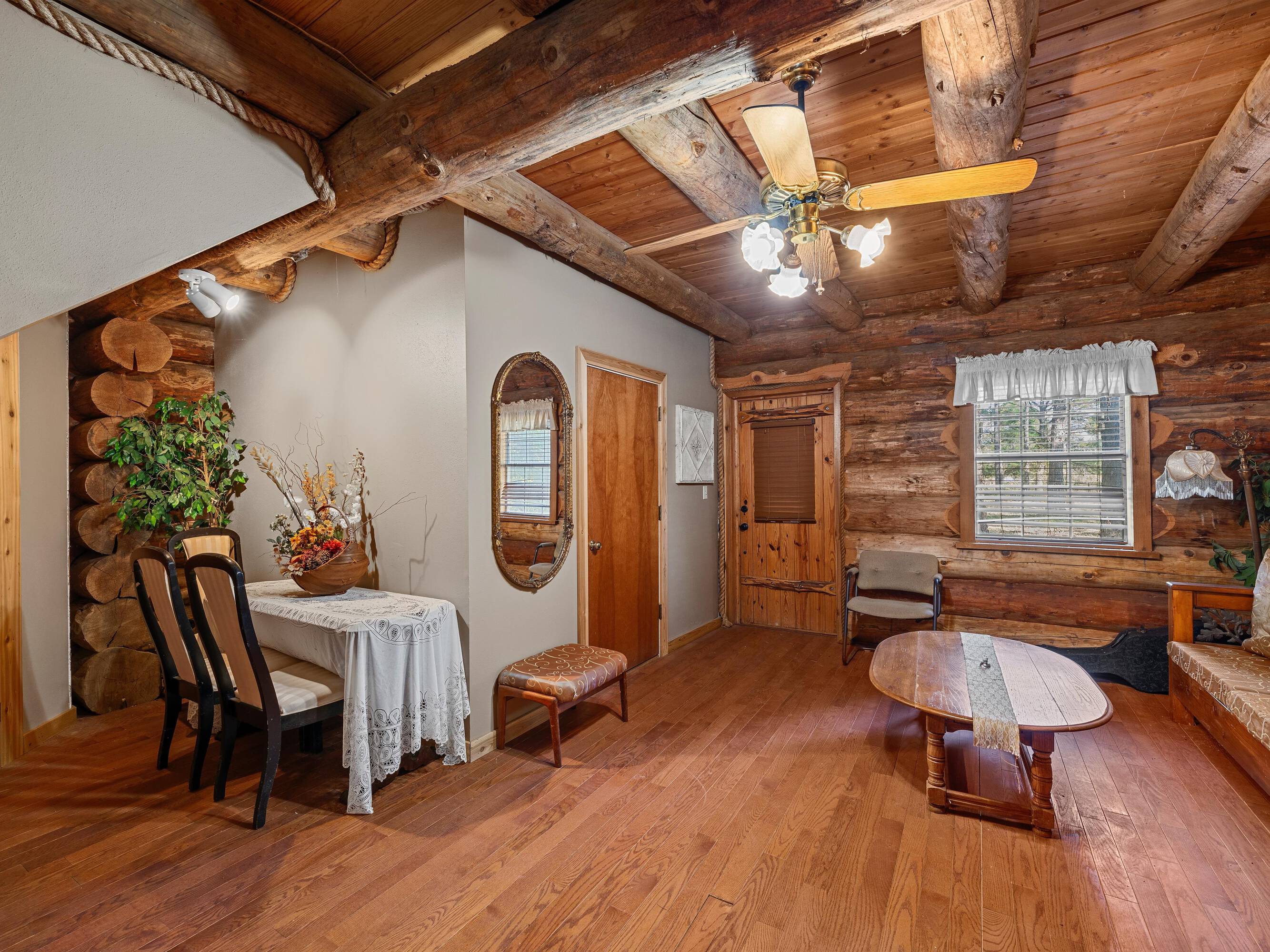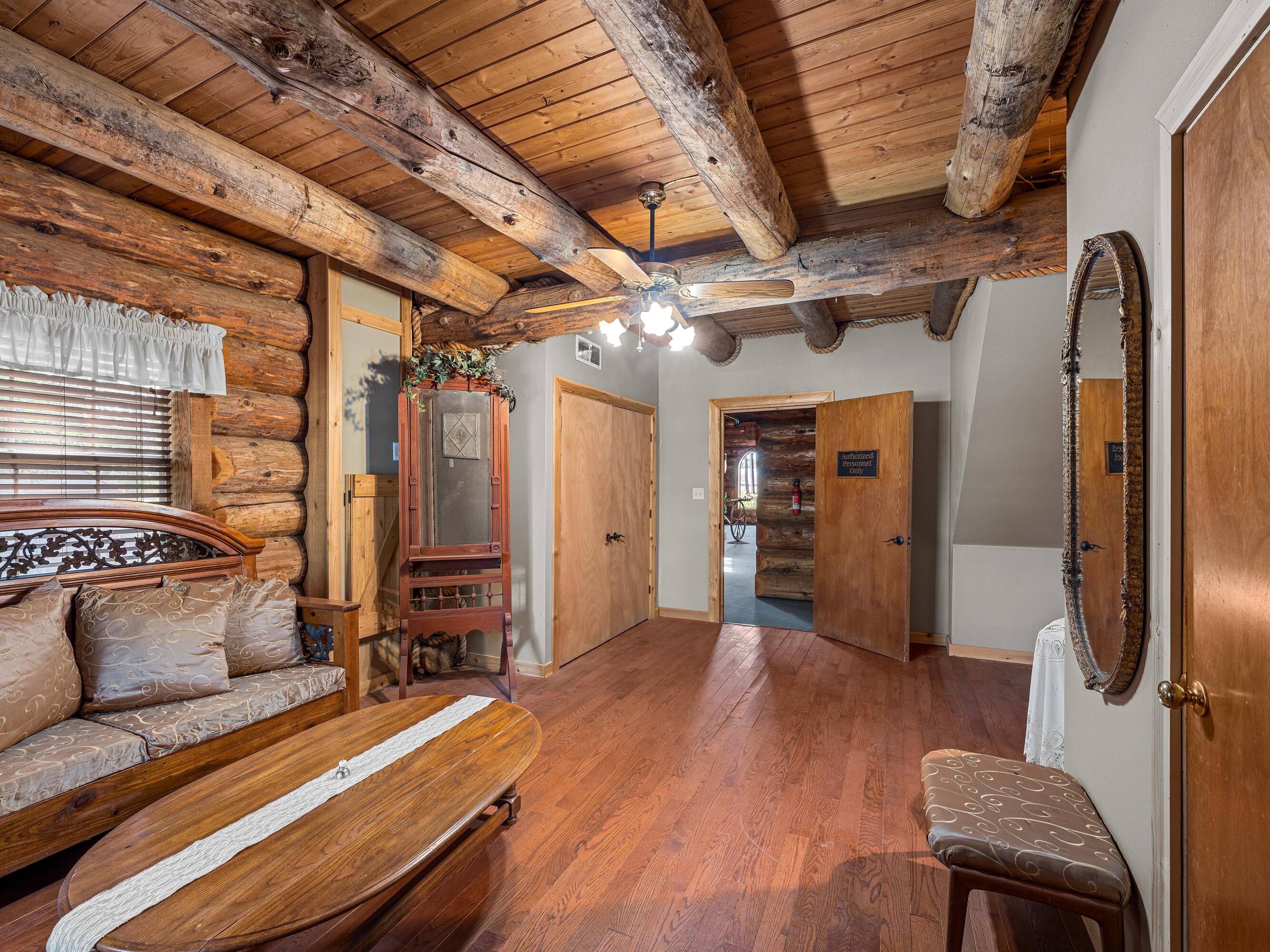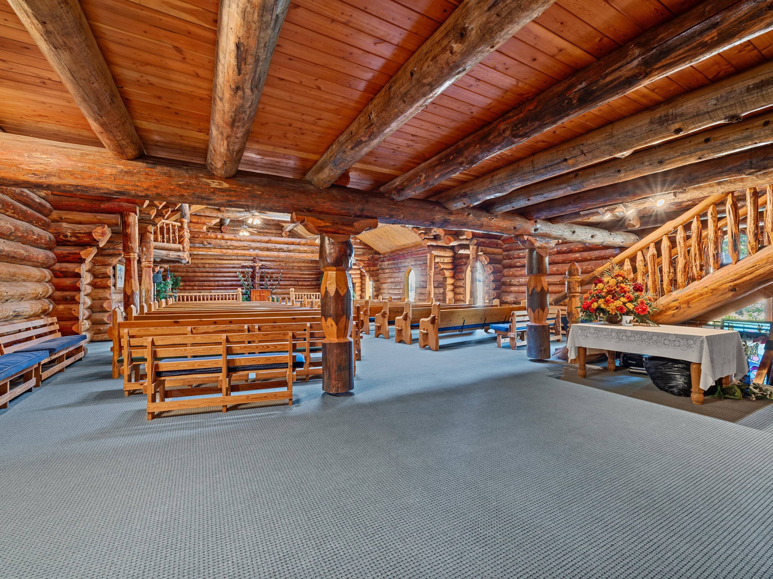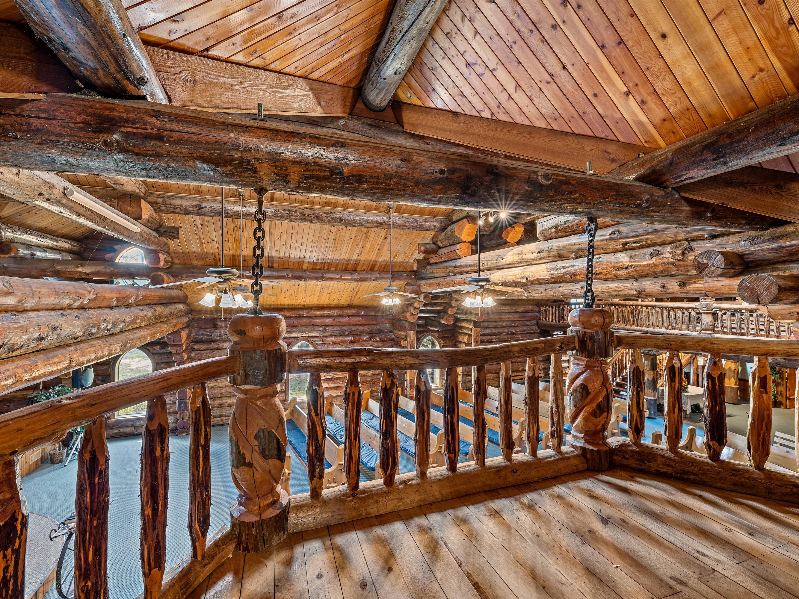 This property features: Scribed log cabin church offering a unique and peaceful retreat.; Handcrafted with precision and rustic elegance.; Vaulted wood ceilings and exposed beams with natural light create a warm atmosphere.