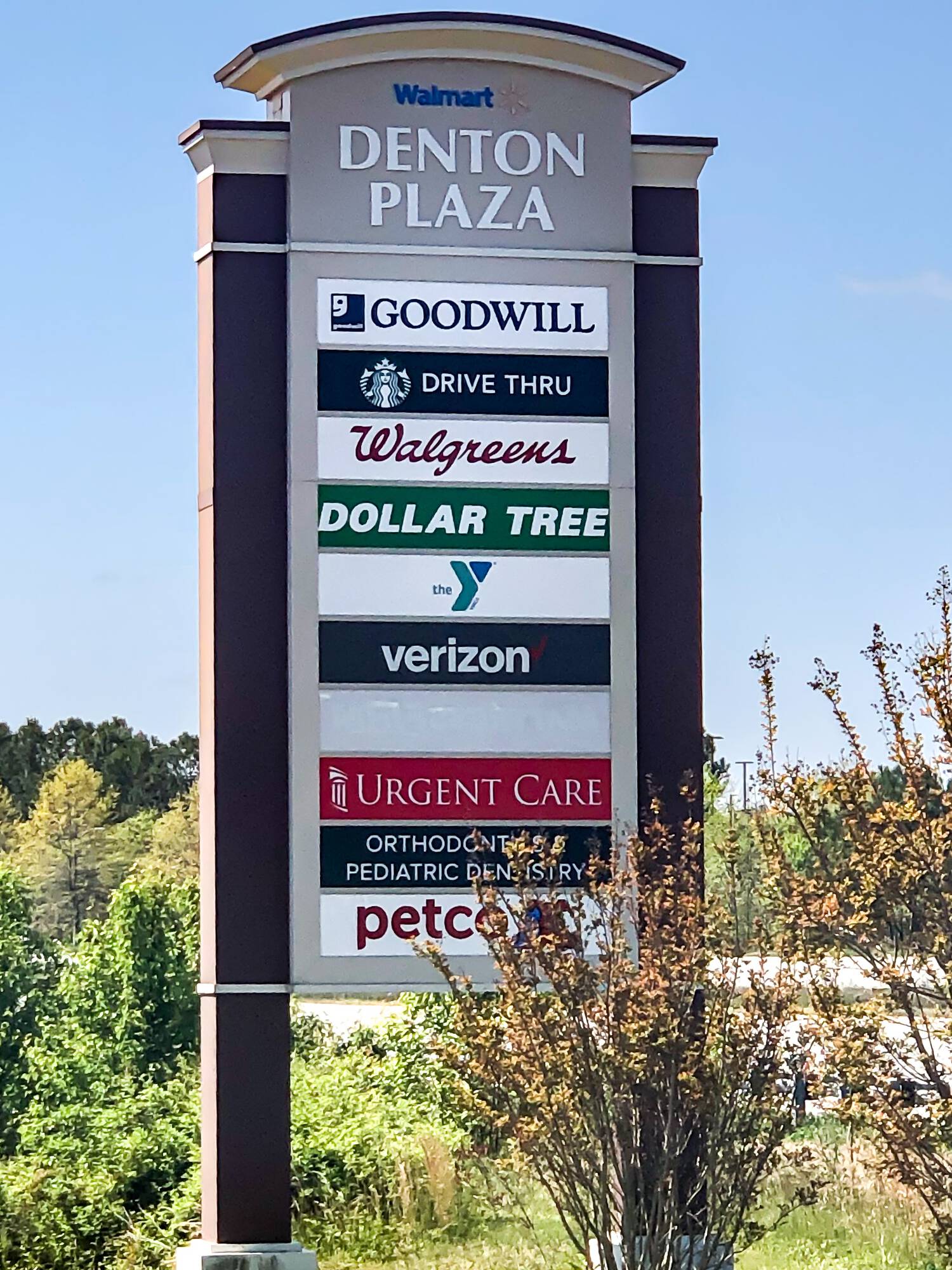 Denton Plaza Shopping Center offers over 100,000 square feet of retail space. The center is located adjacent to a Walmart Super Center at the corner of Route 404 and Legion Road in Denton, Maryland. Denton Plaza serves as a destination stop for travelers going to and returning from the Delaware and Maryland beaches.