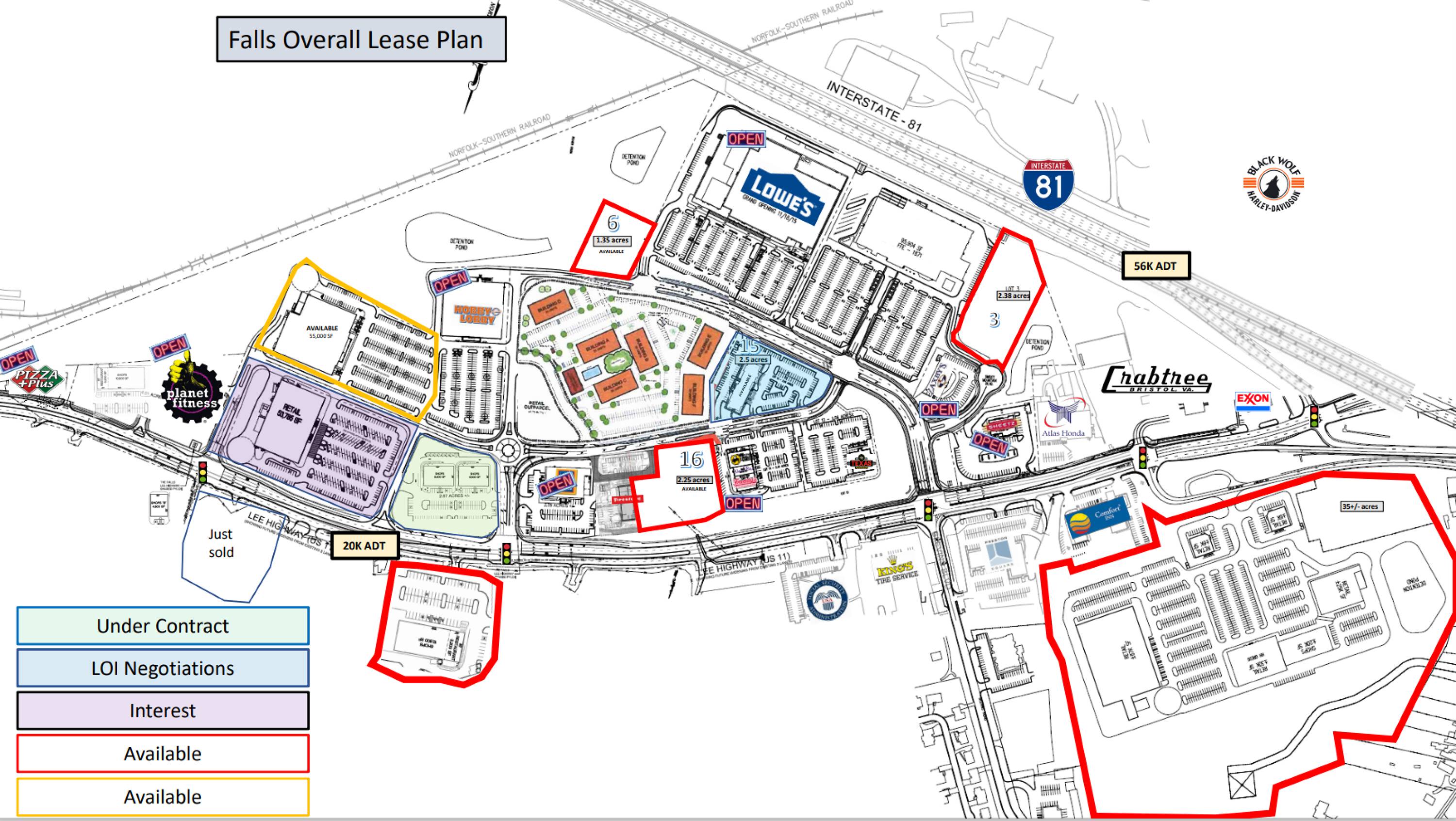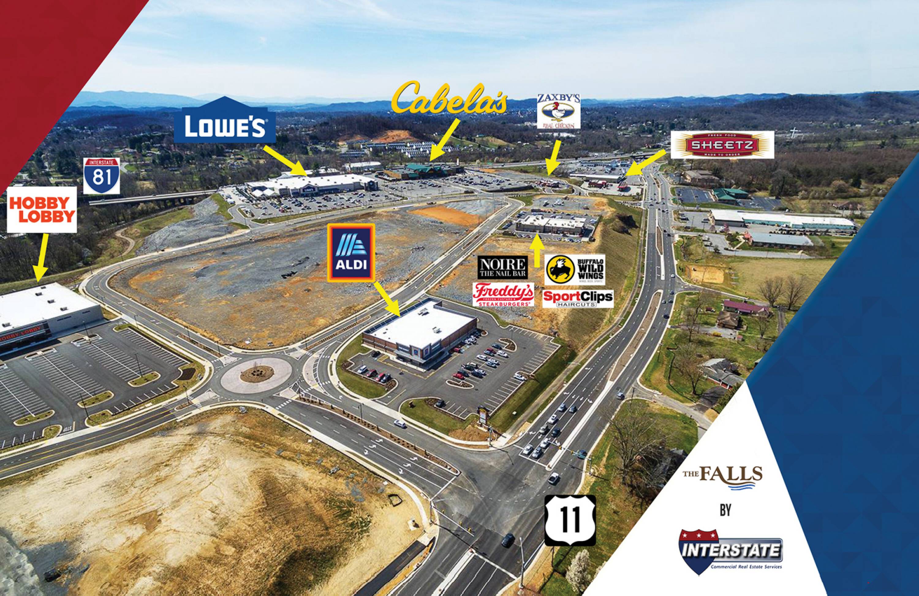 This property features: Incredible visibility from I‑81 and Lee Hwy.; Existing tenants like Lowe’s and Aldi attract over 3 million customers annually.; Significant growth potential with outlots available.