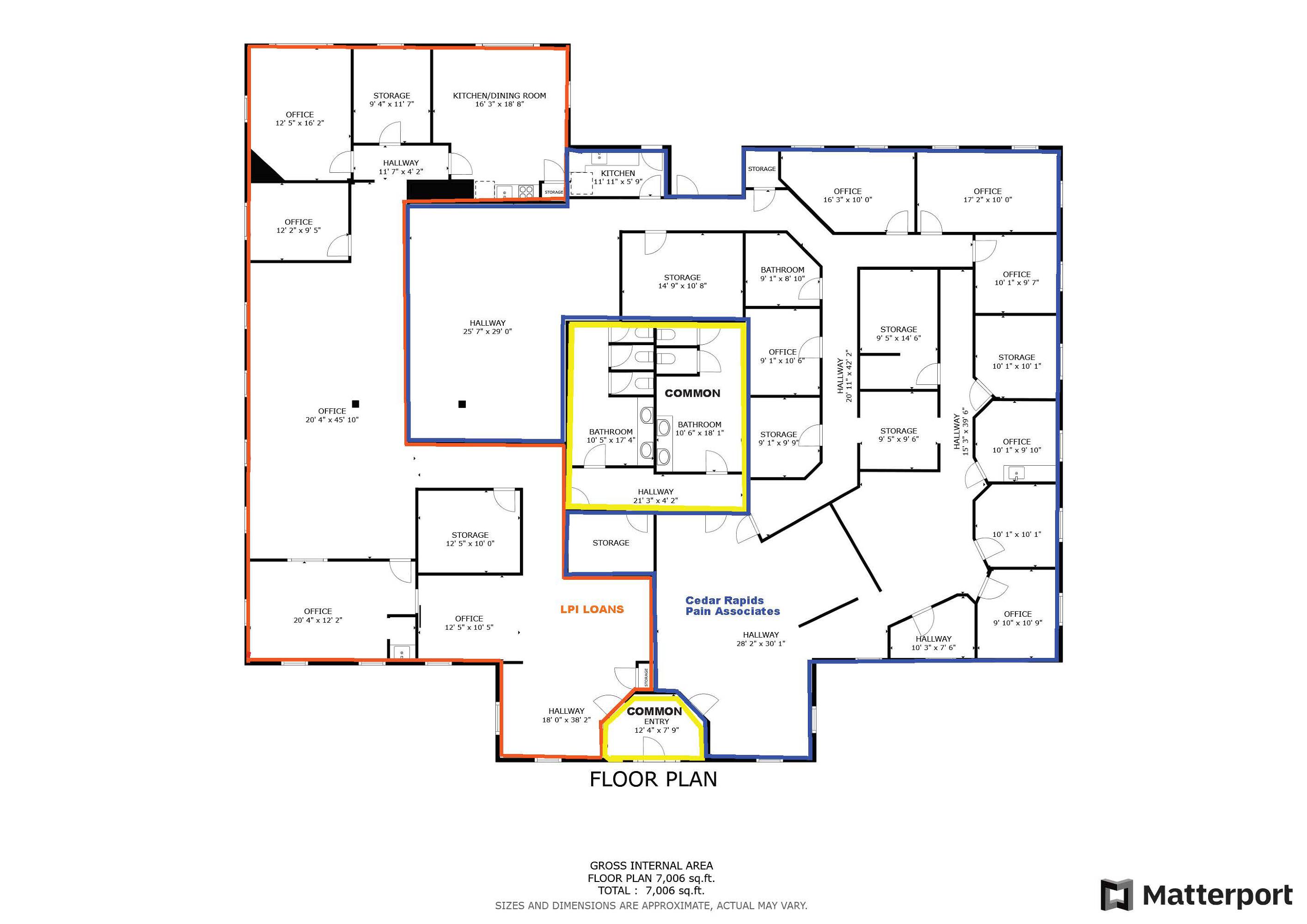 This multi-tenant office building offers 7,360 square feet of space on over 1.5 acres of land. Constructed in 1992, the property features recent improvements to Suite A, providing a modern interior. The building is currently configured to accommodate two tenants, presenting a potential income stream for an owner-user. There are approximately 44 on-site parking spaces. One tenant, Pain Associates, occupies 4,106 square feet and has committed to a NNN lease at $11.75 per square foot through January 31, 2025. The property is located in a desirable area with access to major transportation networks.