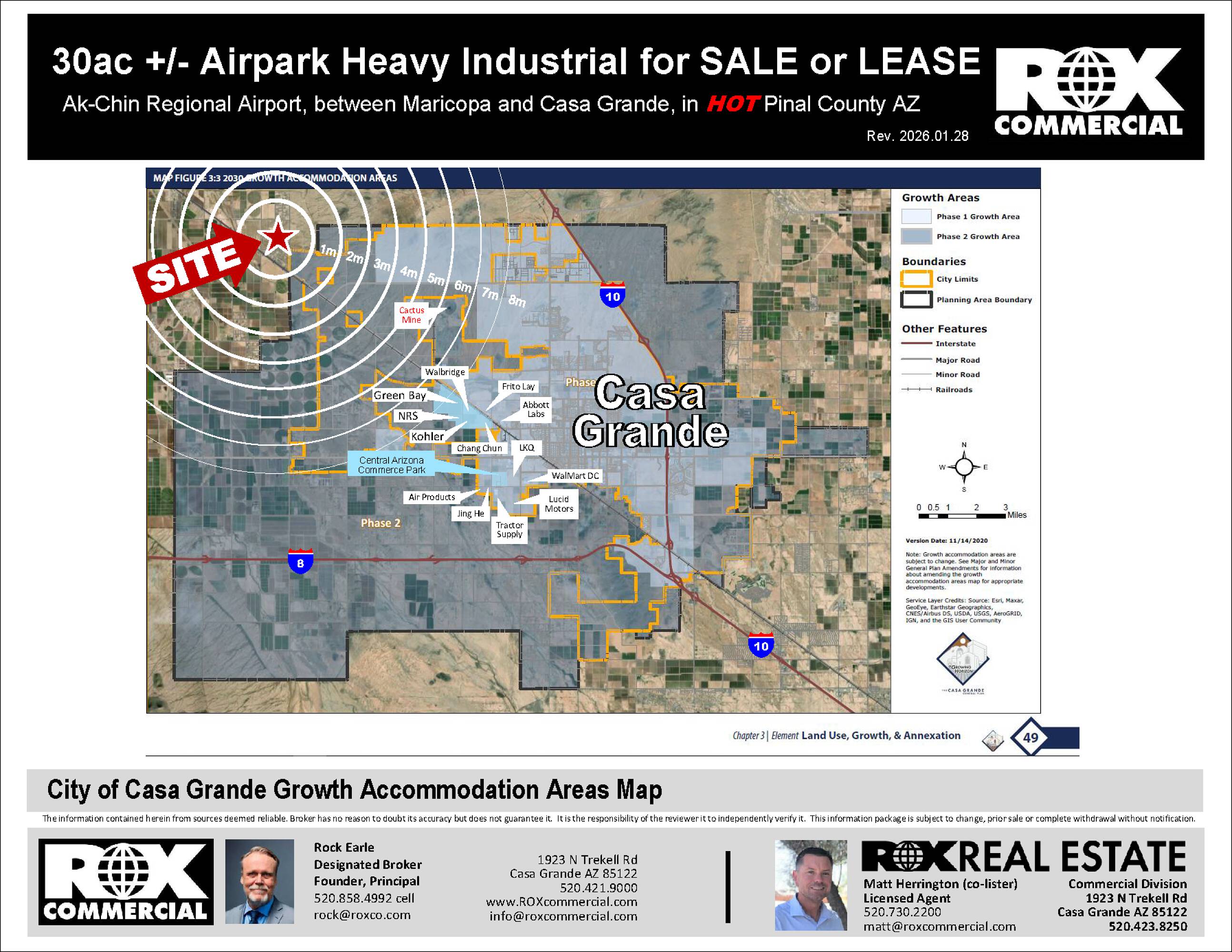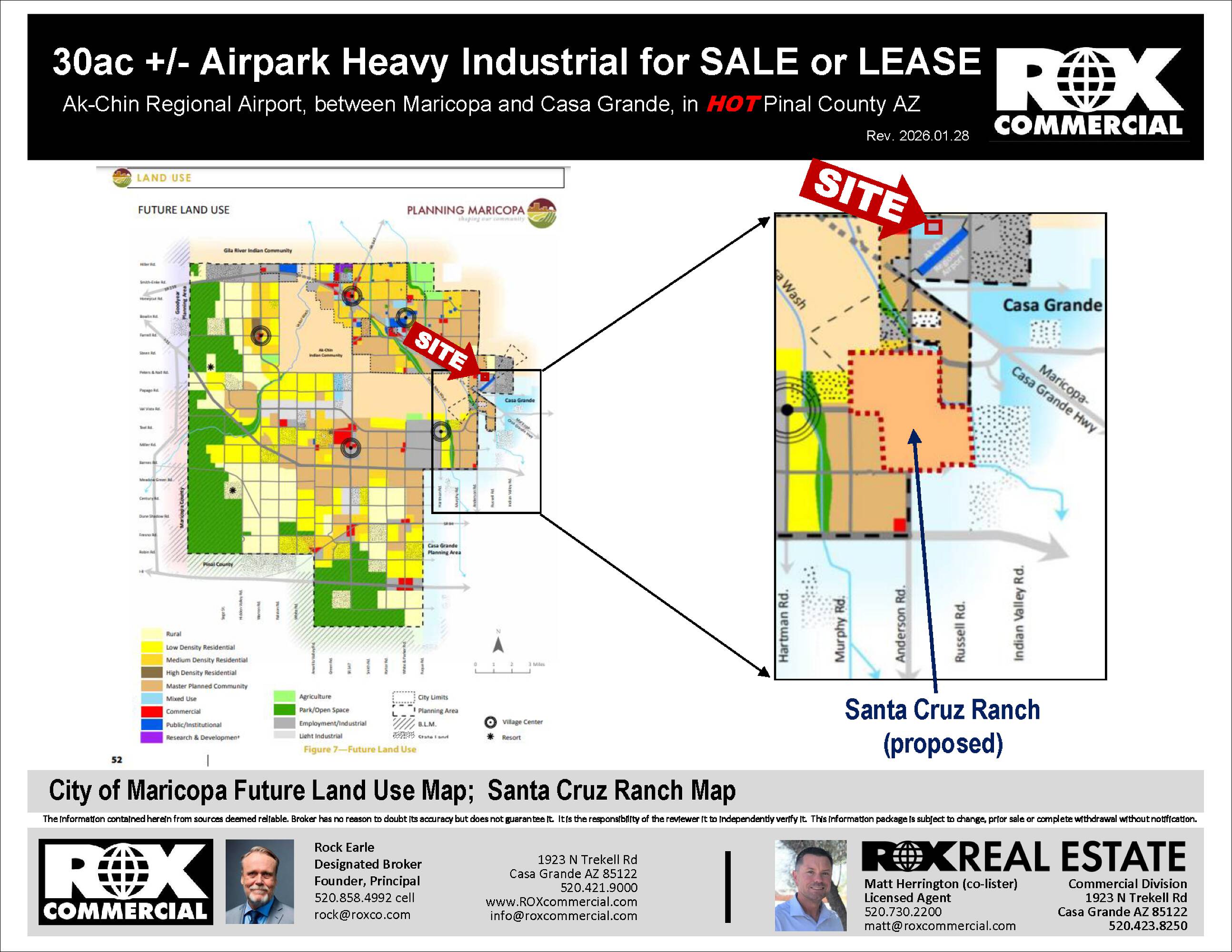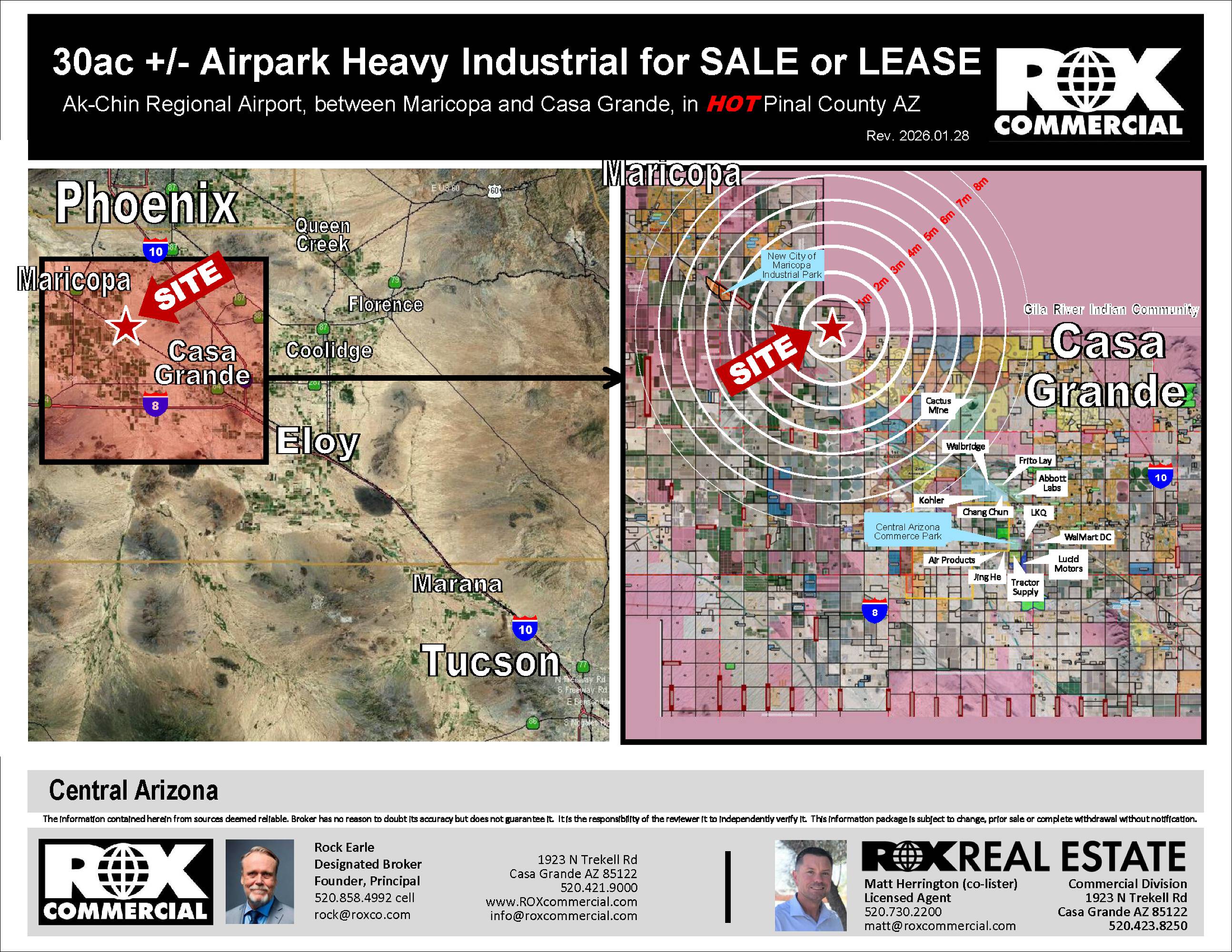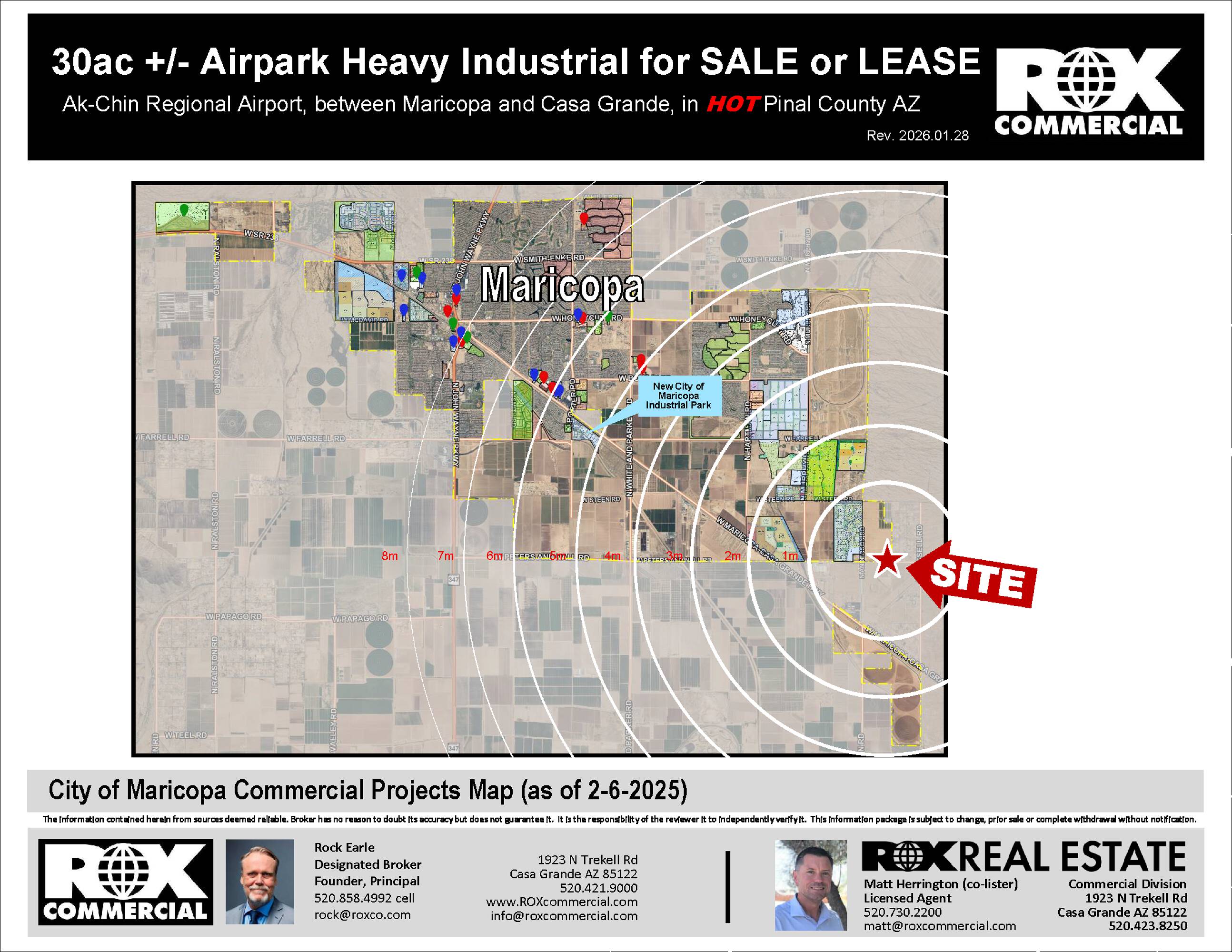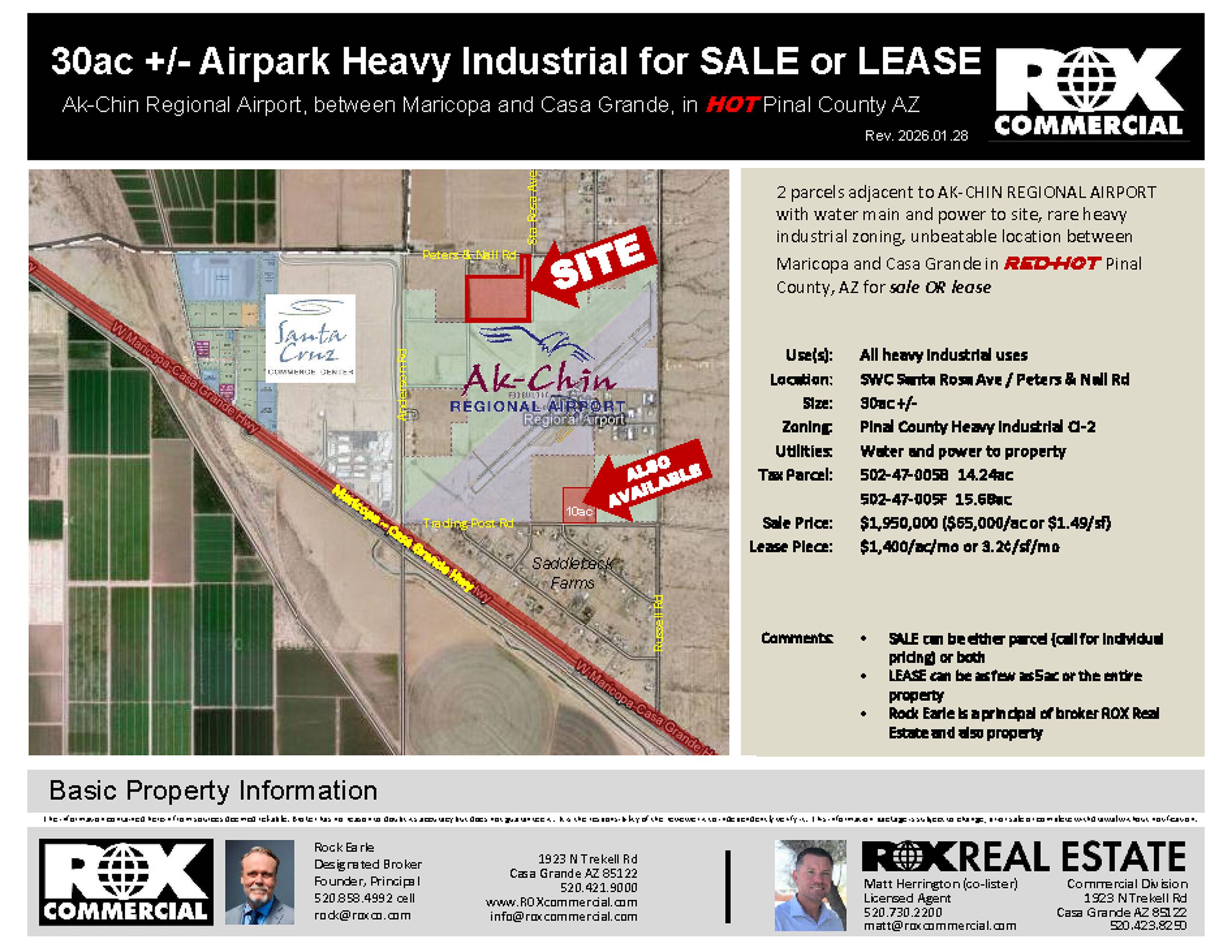 These ready-to-build parcels are located adjacent to the Ak Chin Regional Airport. The site benefits from the availability of a water main and power. The property features rare heavy industrial zoning. Situated in a rapidly growing area of Pinal County, the location offers convenient access between Maricopa and Casa Grande. The property is less than 10 miles from the Pinal County Tech Park, which houses companies such as Kohler, ChangChun, and Walbridge. The property size is 1303315 square feet.
