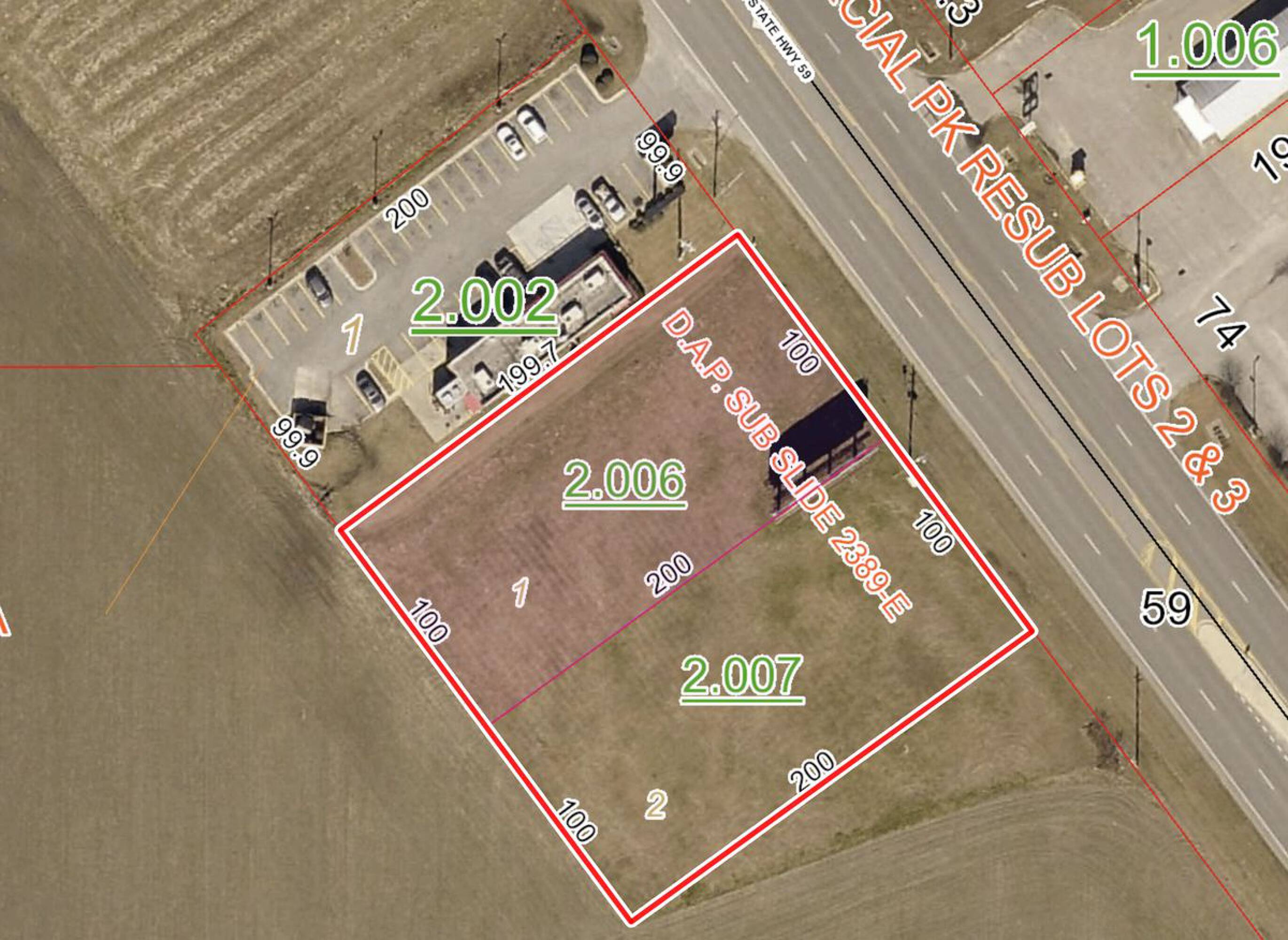 Two lots with highway frontage and B-2 zoning.
