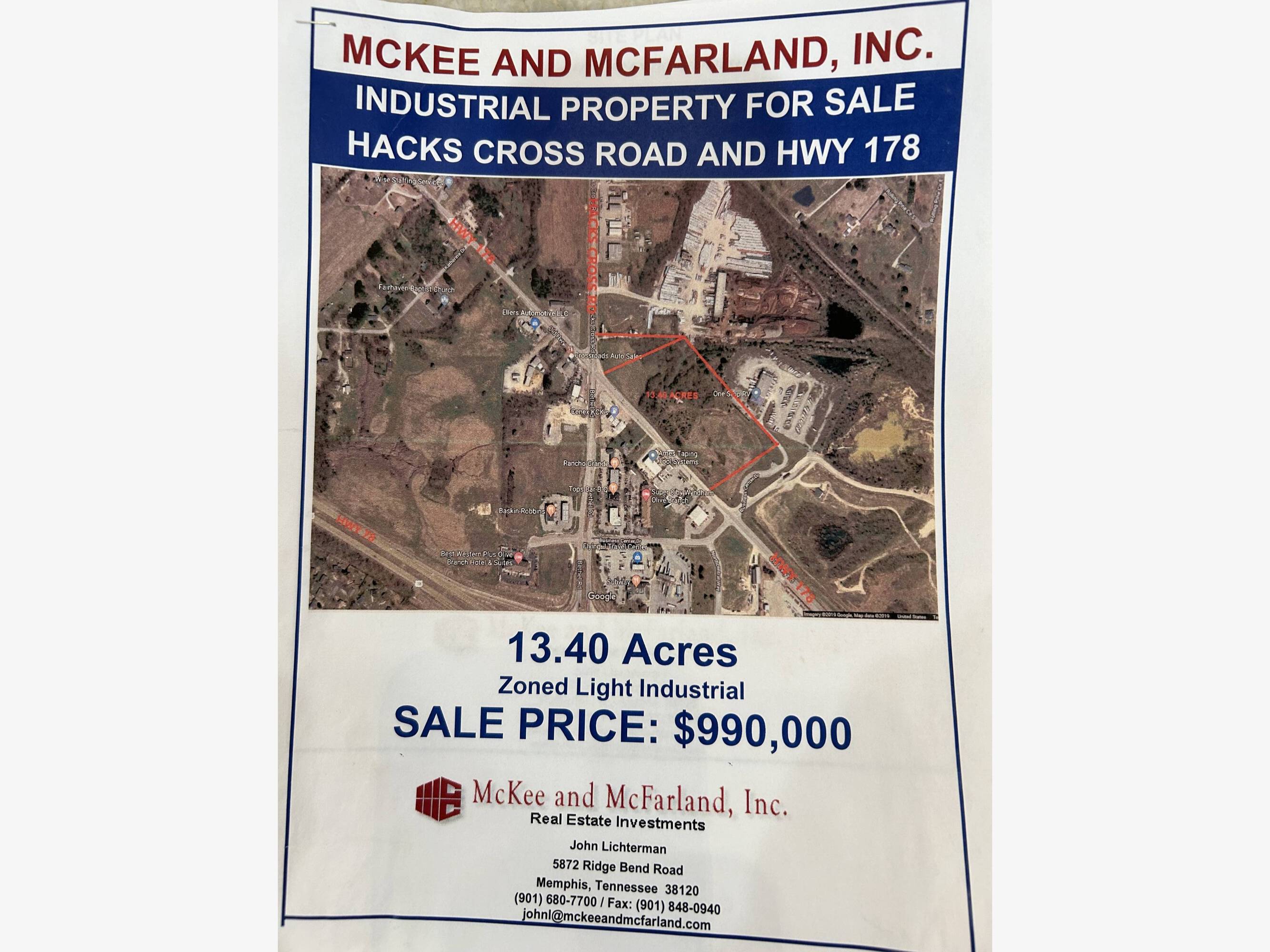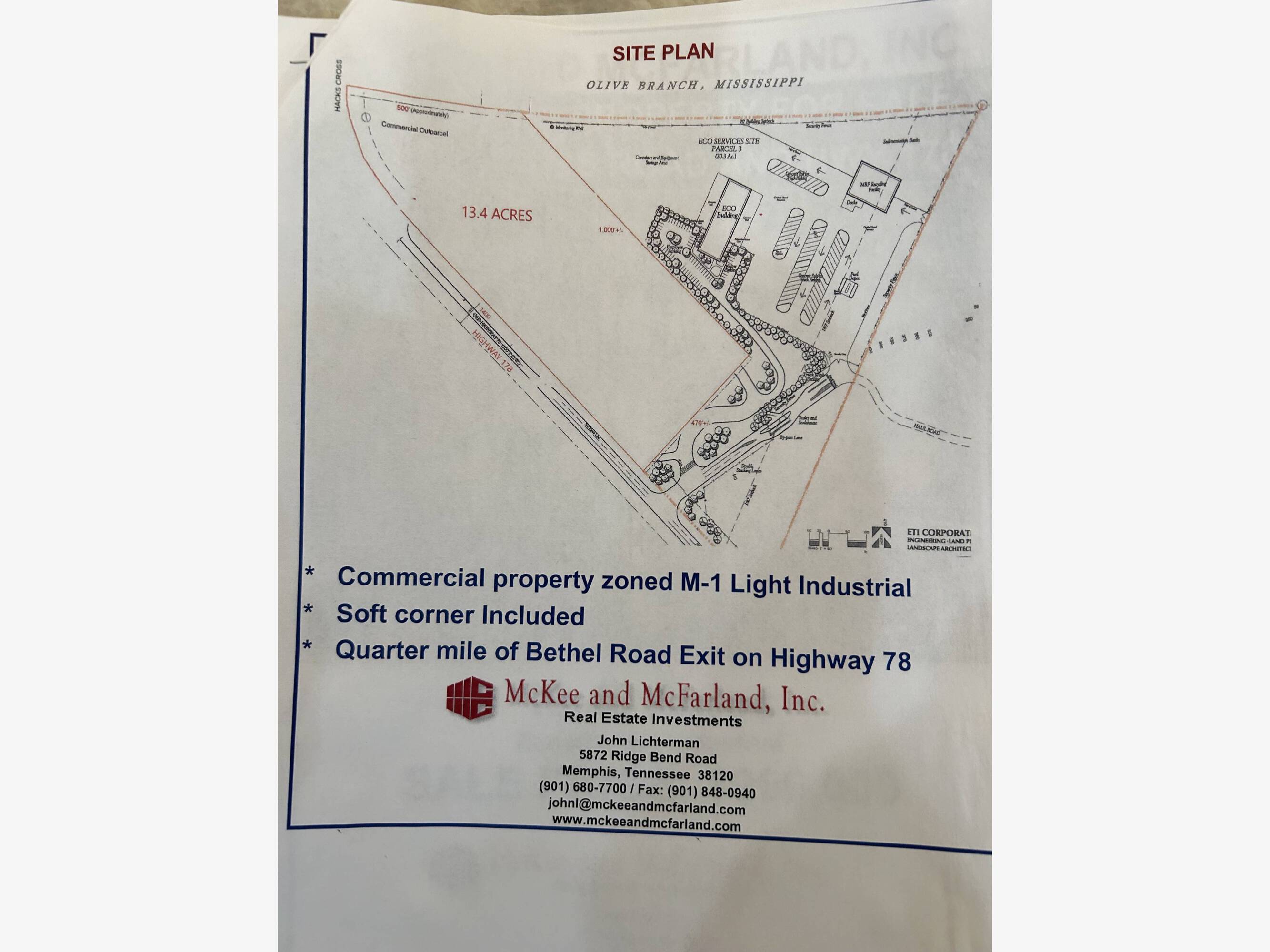 13.2 acres of commercial property with M-1 zoning.