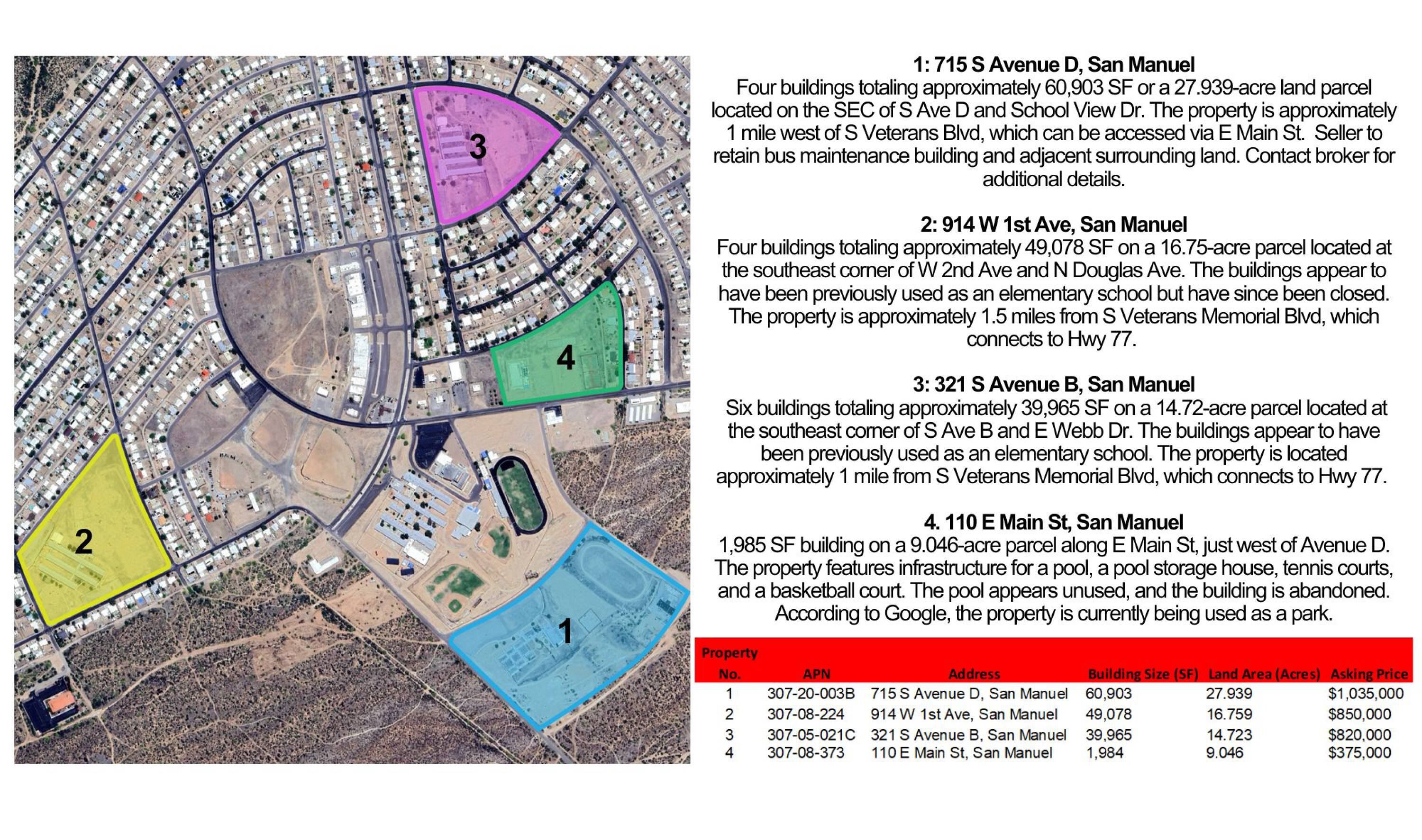 Four parcels in San Manuel Opportunity Zone, formerly school district.