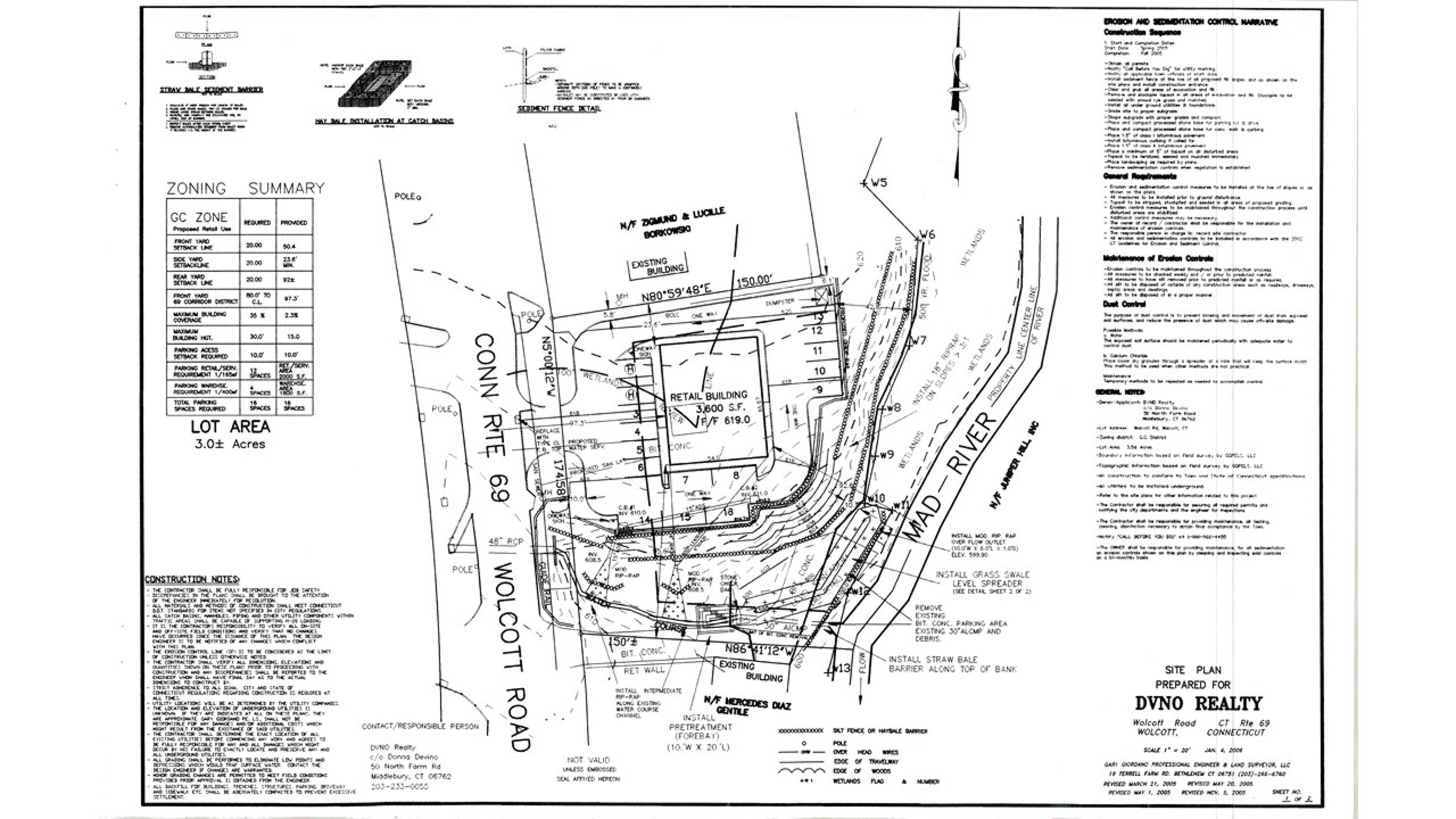 3+ acre commercial land parcel with proposed building plans.