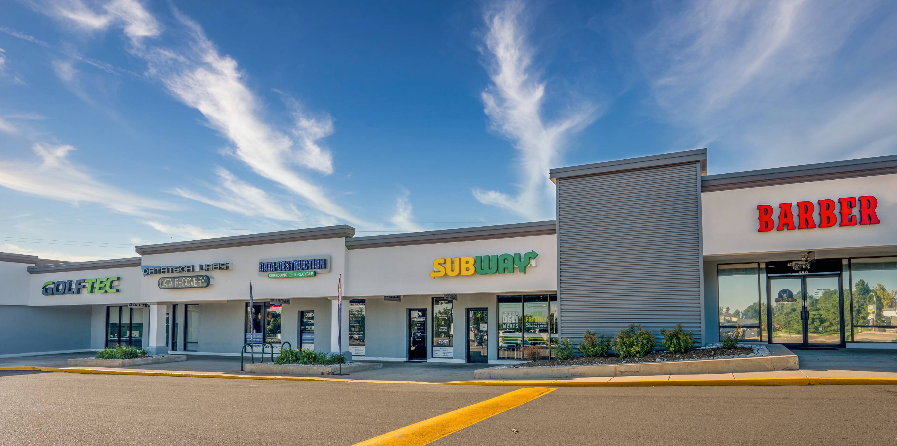 Retail spaces available, ranging from 923 to 4,339 square feet.