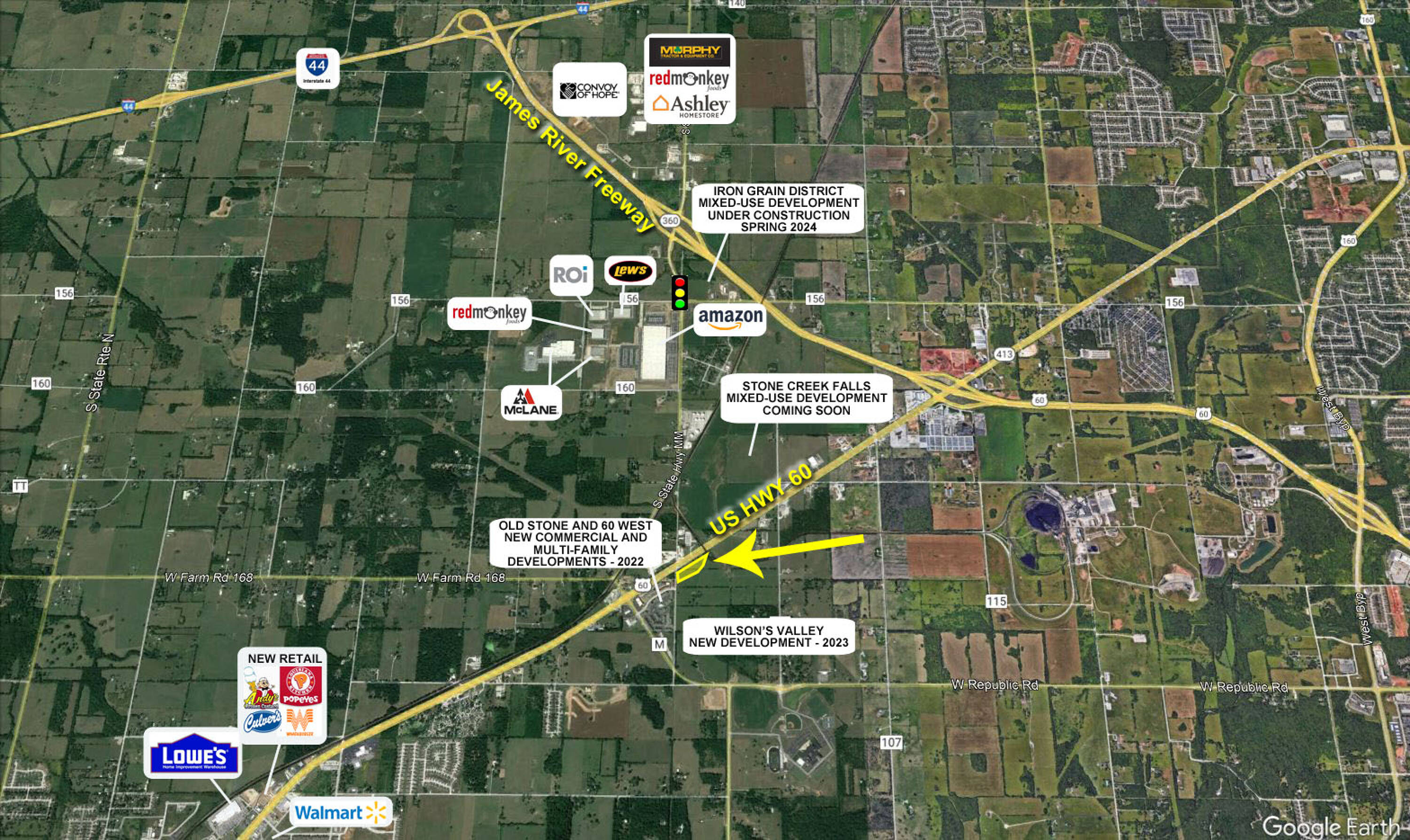 Development lots available on Highway 60 in Republic, Missouri.