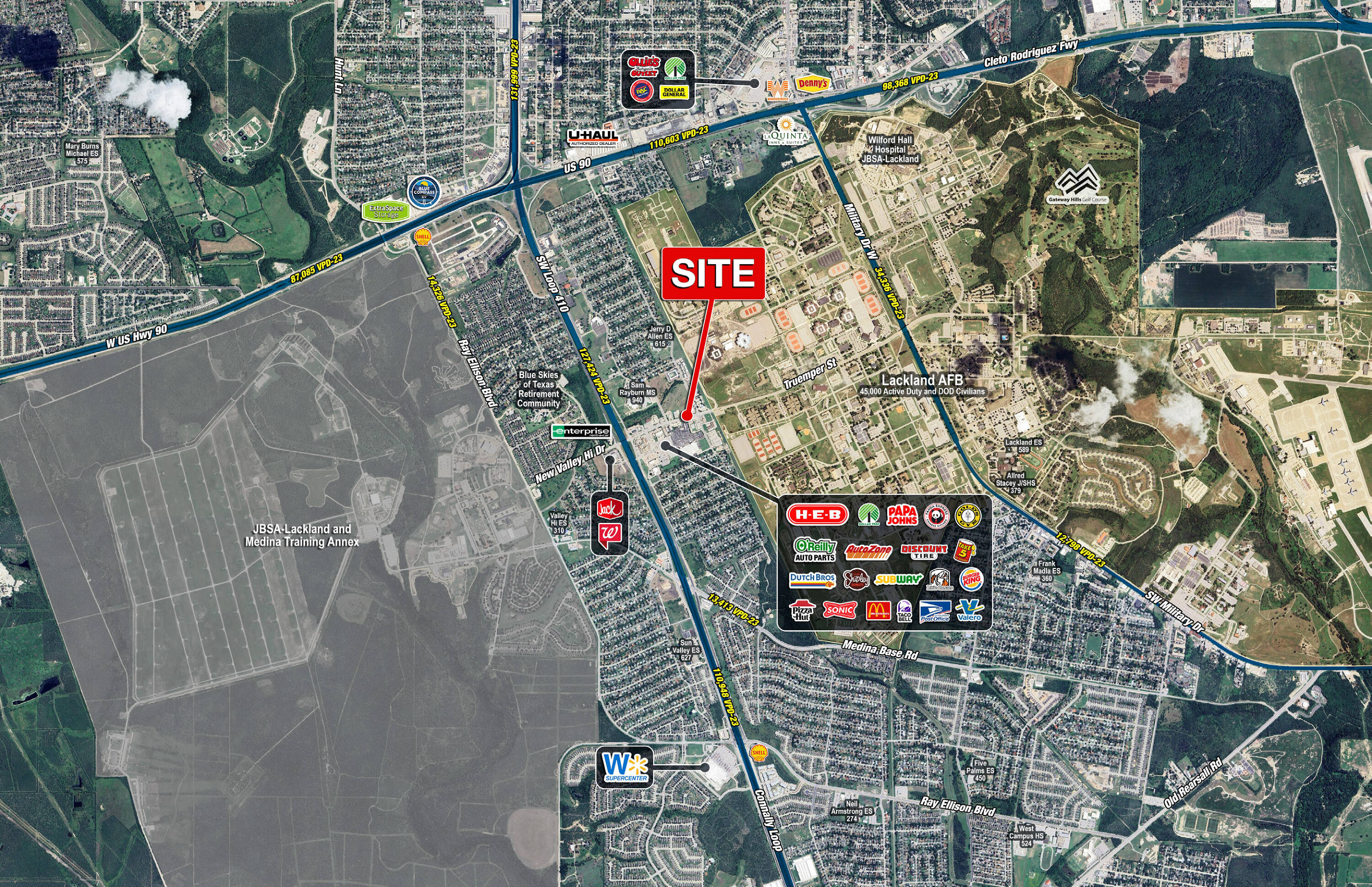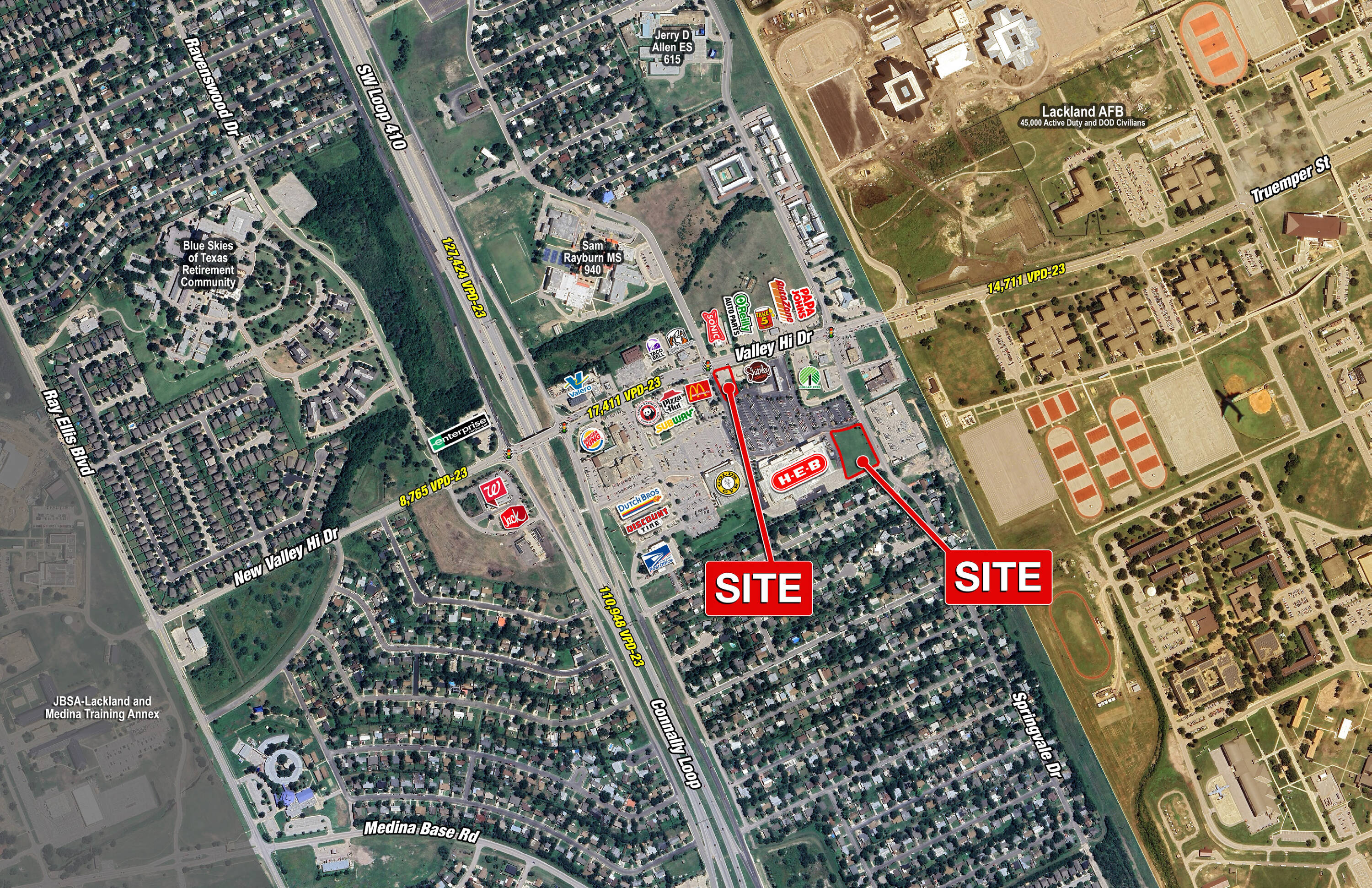 Pad sites available near Loop 410 and Valley Hi Drive.