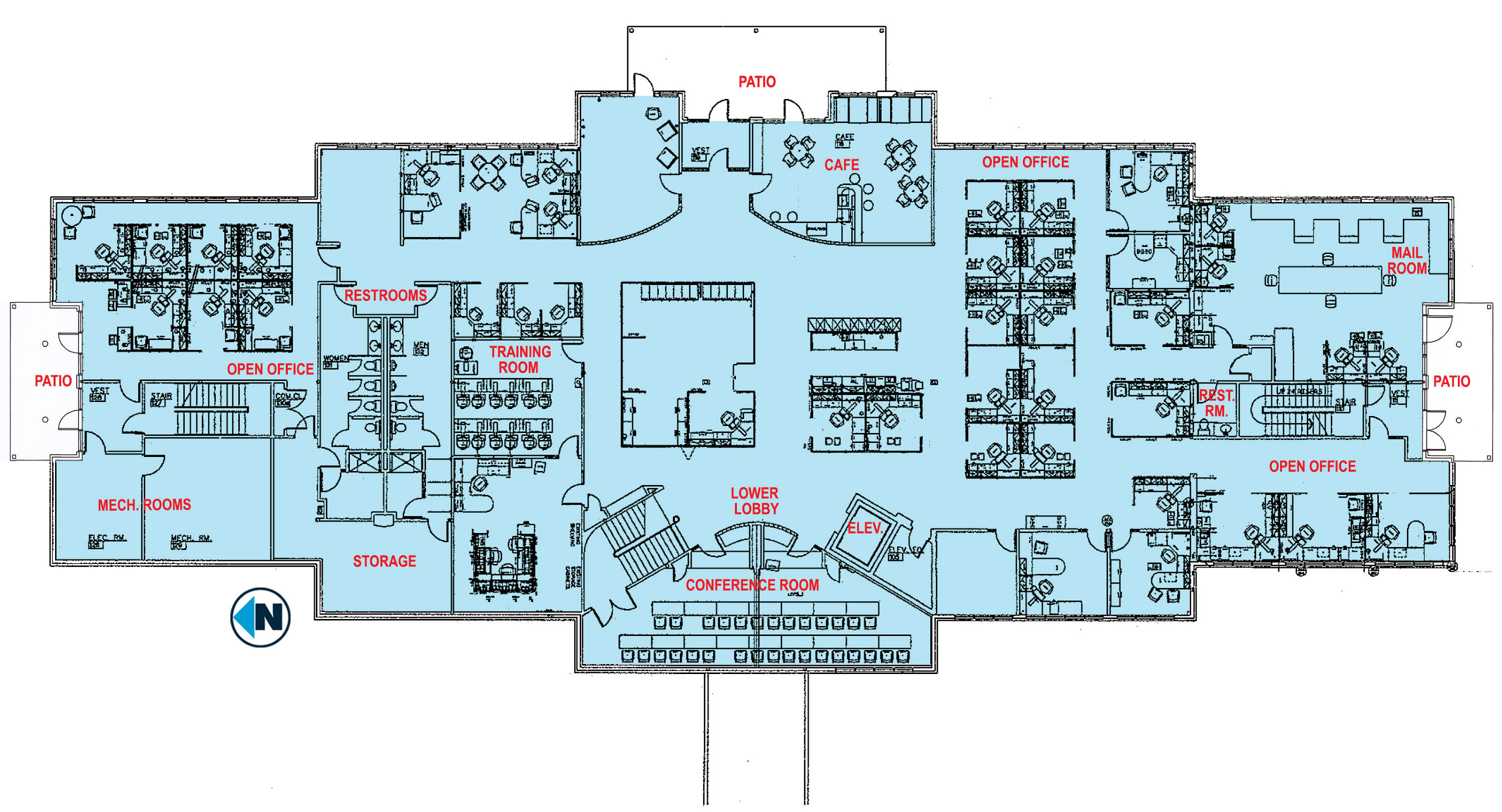 Office building - Office building with workout facility, cafeteria, and backup generator.