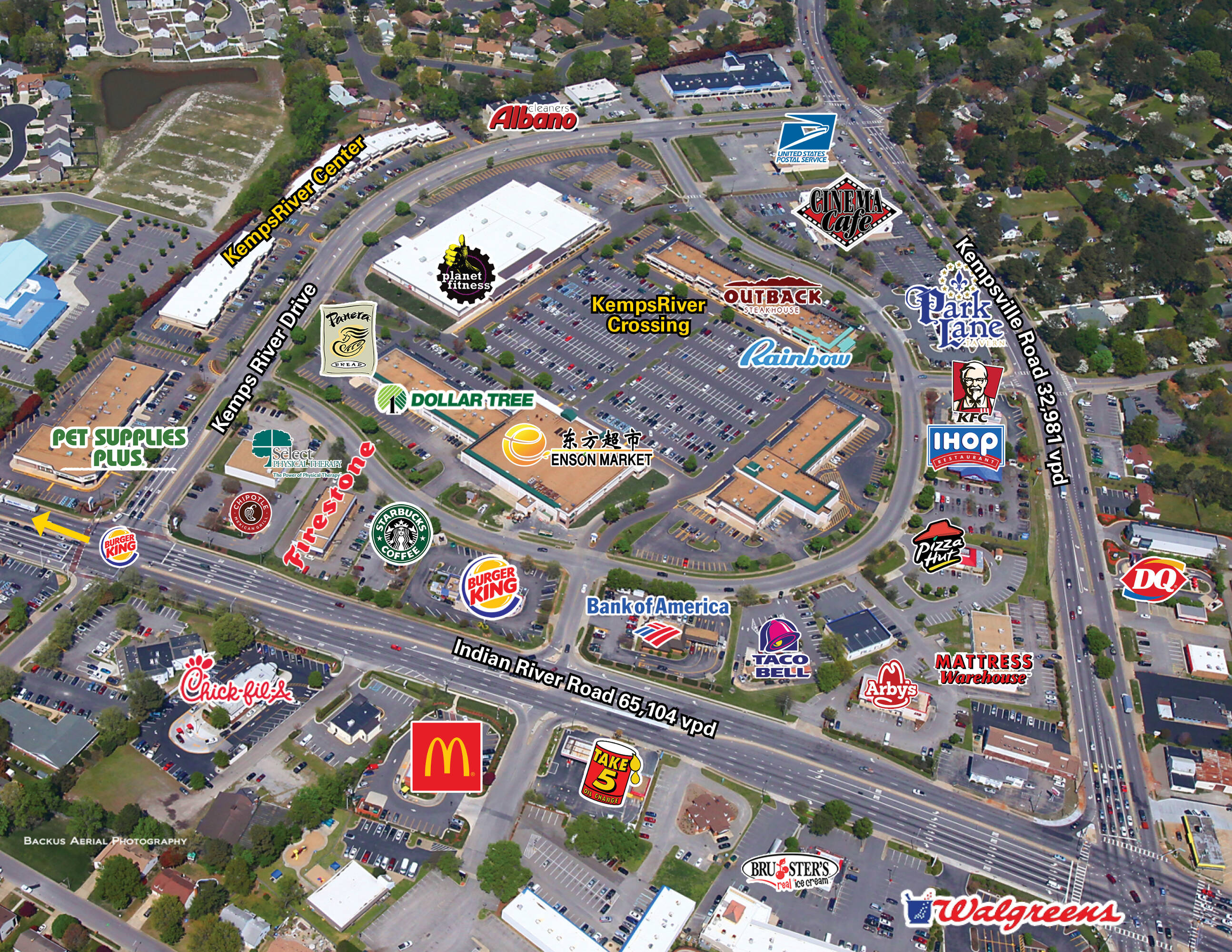 This renovated retail space is situated within the KempsRiver Center, located on Kempsriver Drive, across from Kempsriver Crossing. The property is located in Kempsville, a densely populated area of Virginia Beach. The location is near a busy intersection with a combined traffic count of approximately 100,000 vehicles per day.