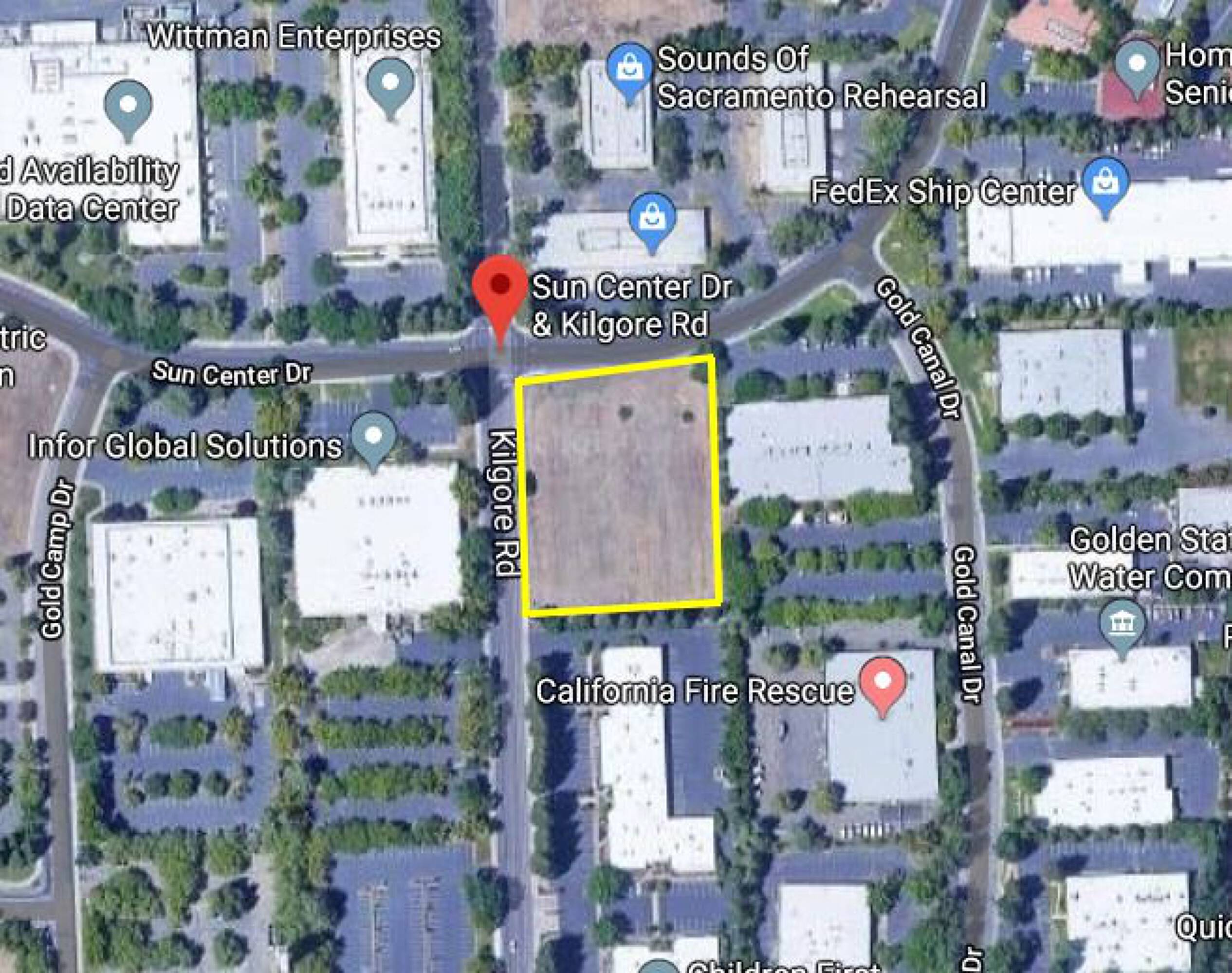 This corner lot is situated at the eastern entrance to the Prospect Business Park, specifically at the southeast corner of Kilgore Road and Sun Center Drive. The high-visibility site offers access to high-speed data lines and convenient access to Highway 50. It is ready for a construction project.