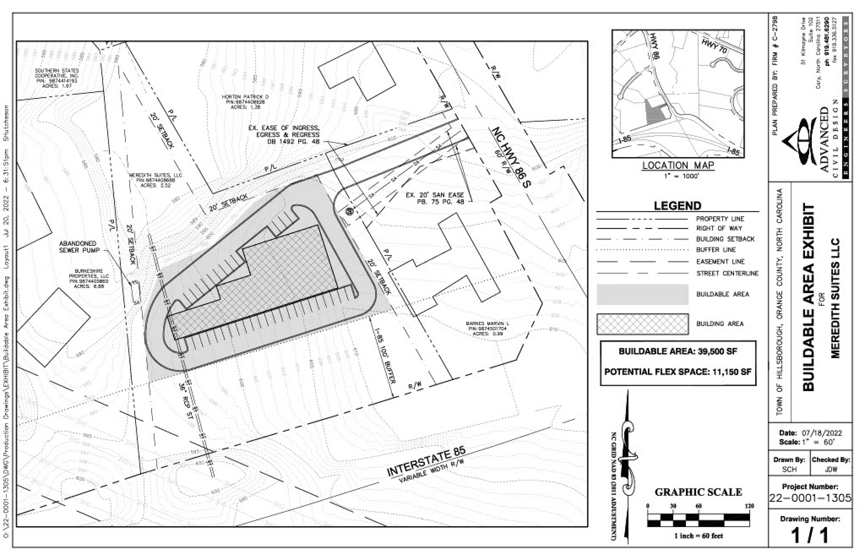 This property features: 2.54 acres at NW corner of I‑85 Exit 165, NC‑86.; Zoned High Intensity Commercial.; Potential Industrial Outdoor Space.