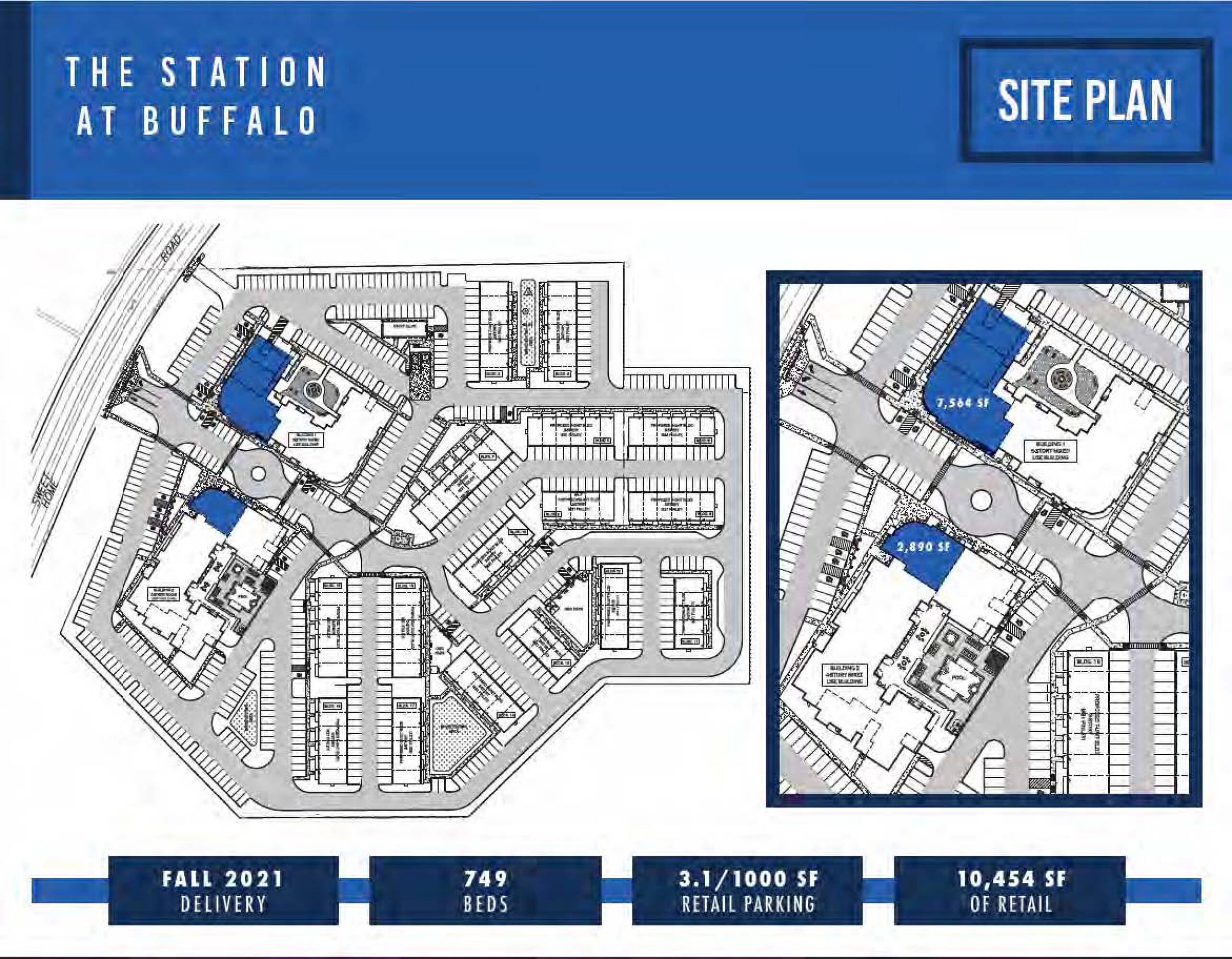 Retail space available from 1,000 to 7,564 square feet.