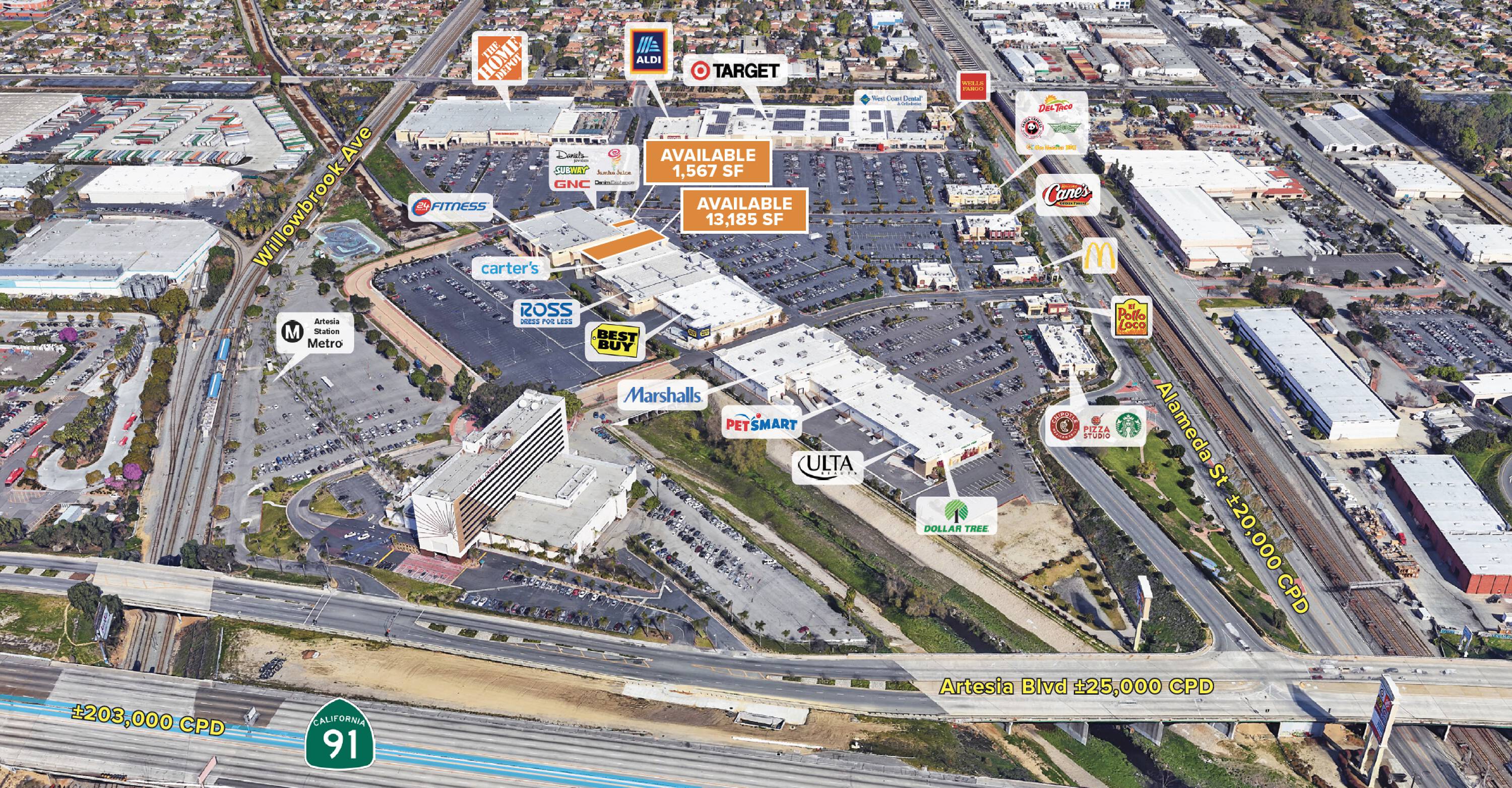 Retail space available for lease at 91 Freeway & Alameda.