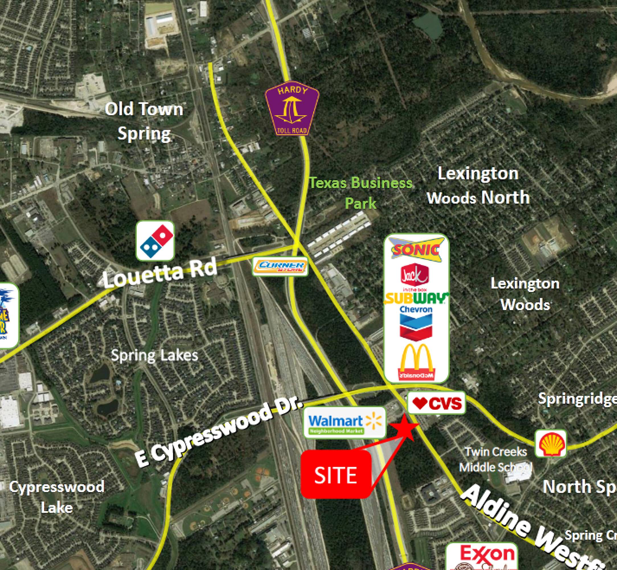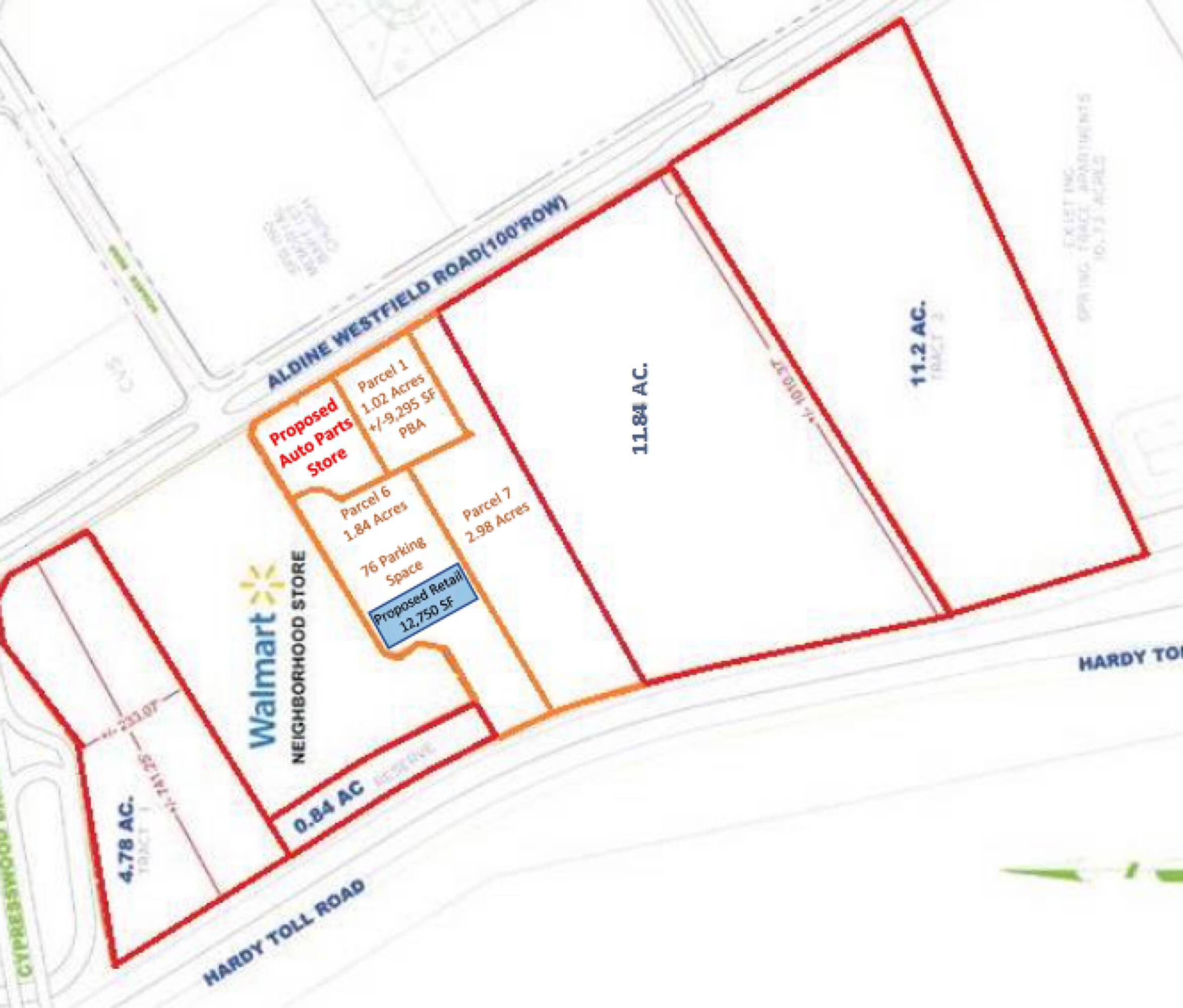 This property features: High‑traffic location at the corner of Cypresswood Drive & Aldine Westfield; Utilities are available on site; Pad sites available in various sizes (1 acre to 11.84 acres)
