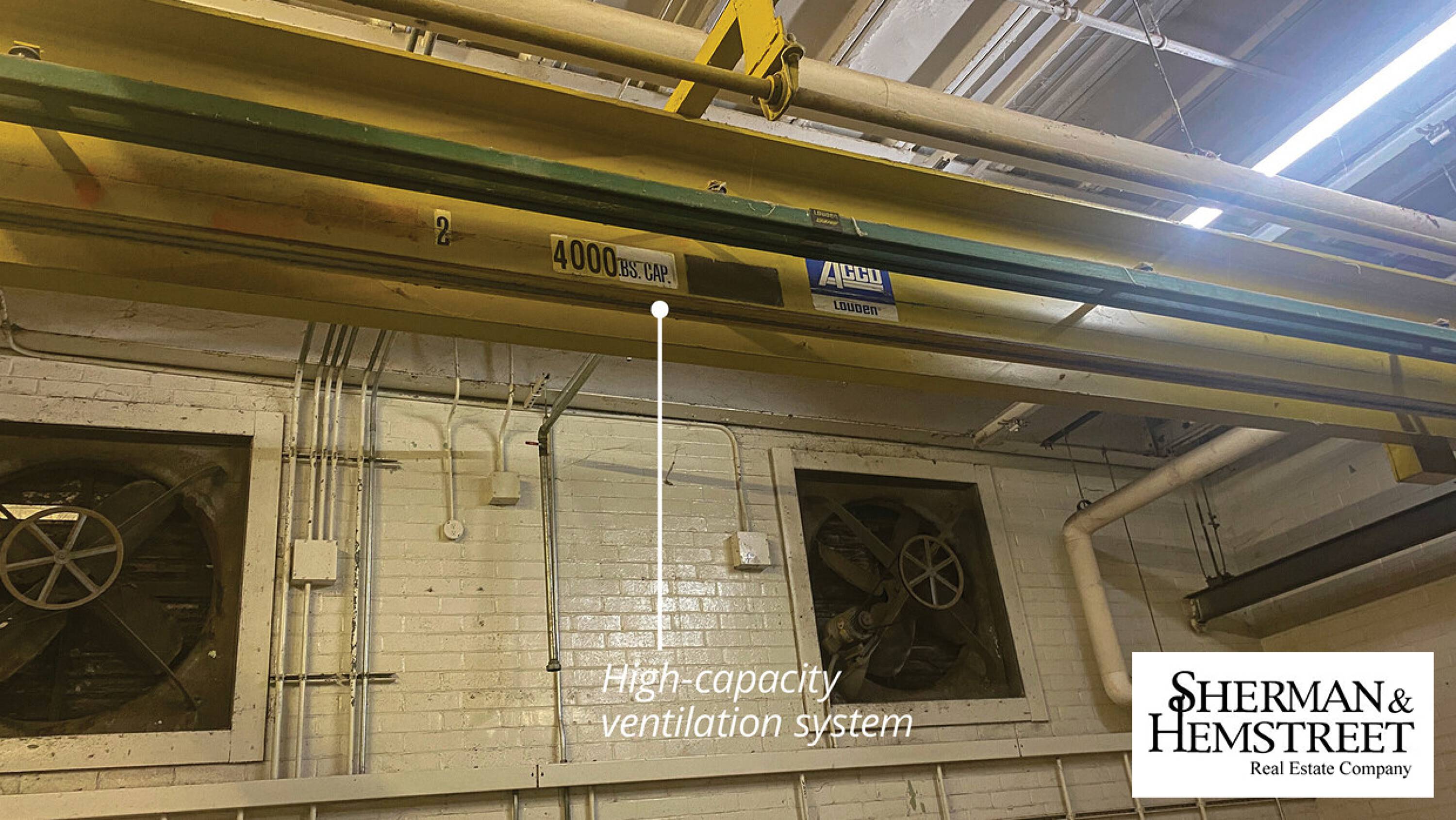 Manufacturing facility with fenced lot, parking, and heavy power.