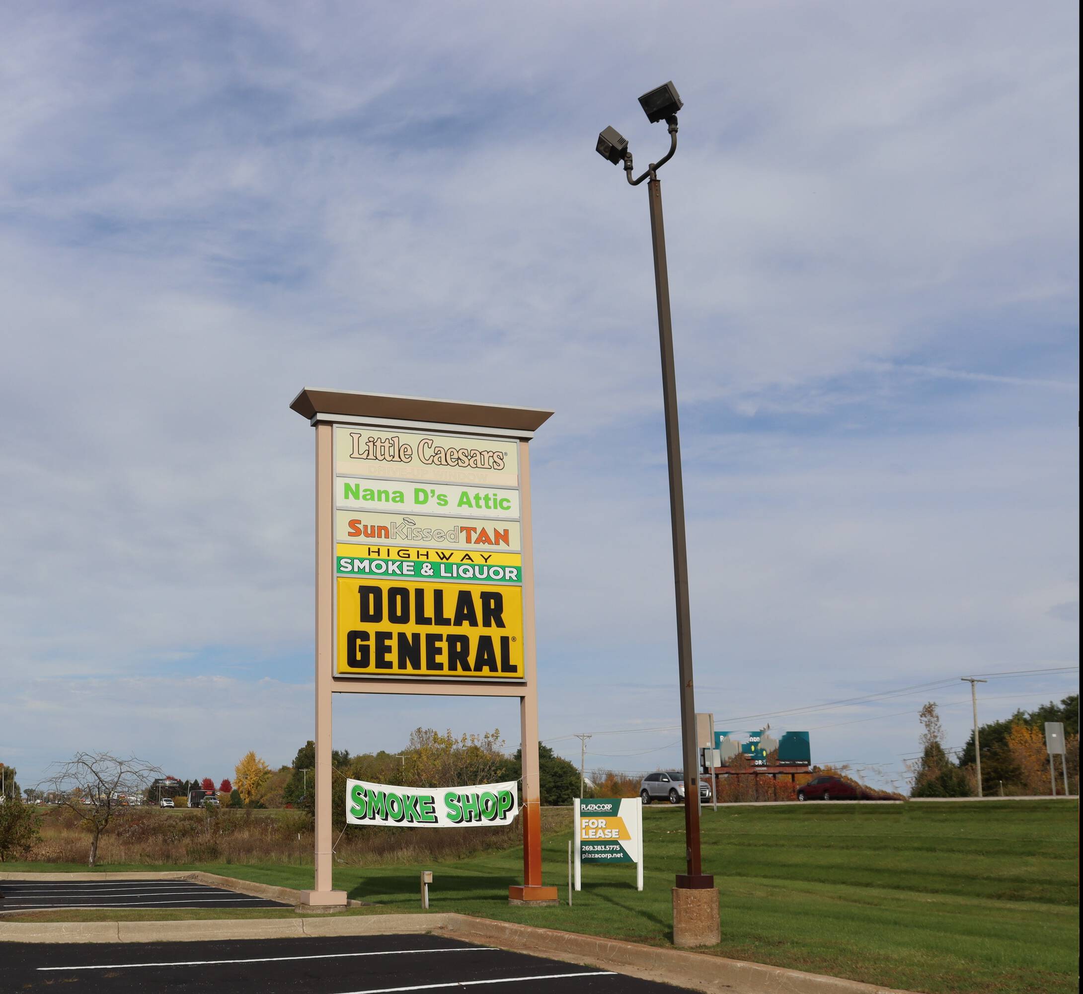 Retail center with high visibility and convenient highway access.