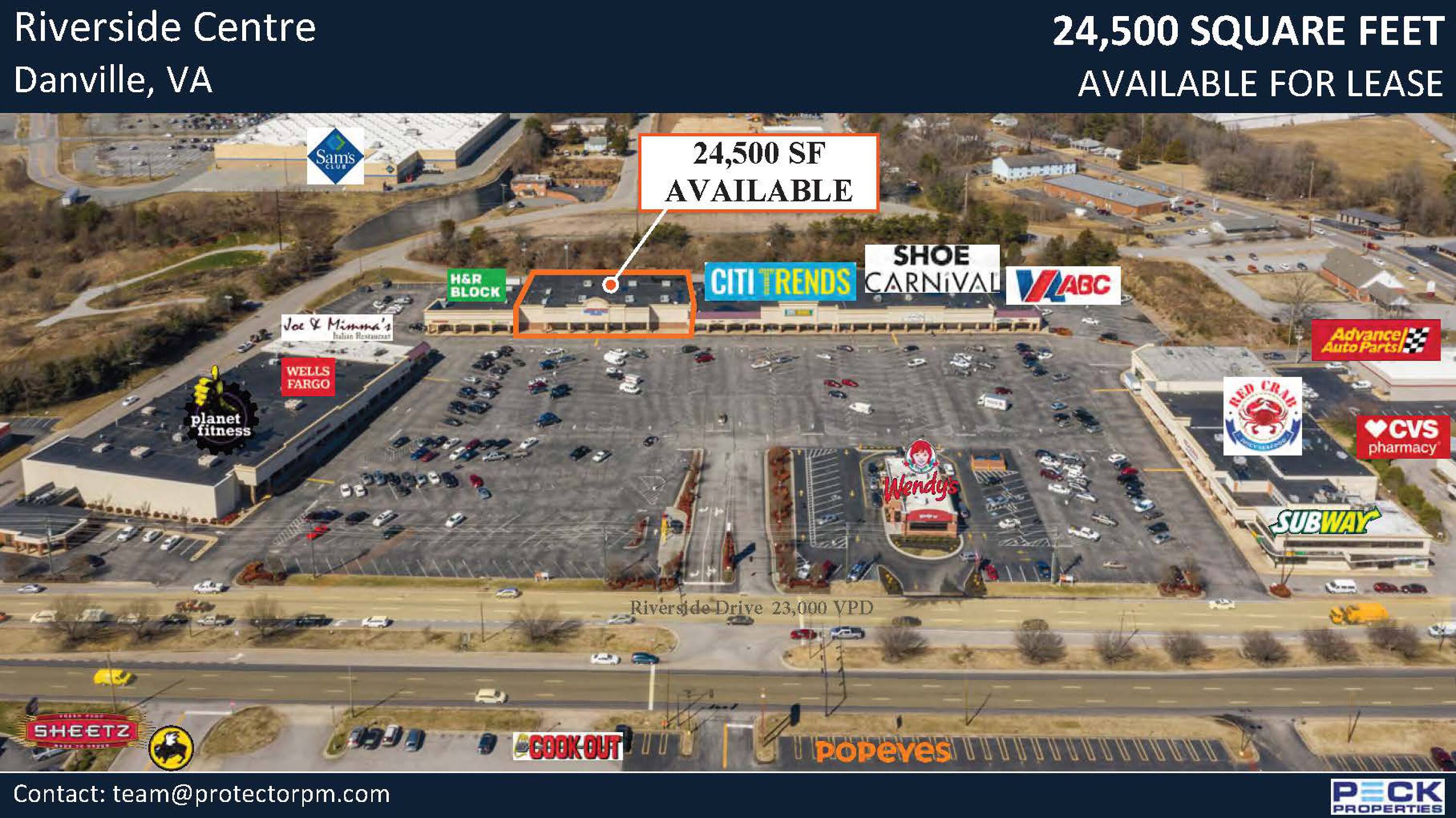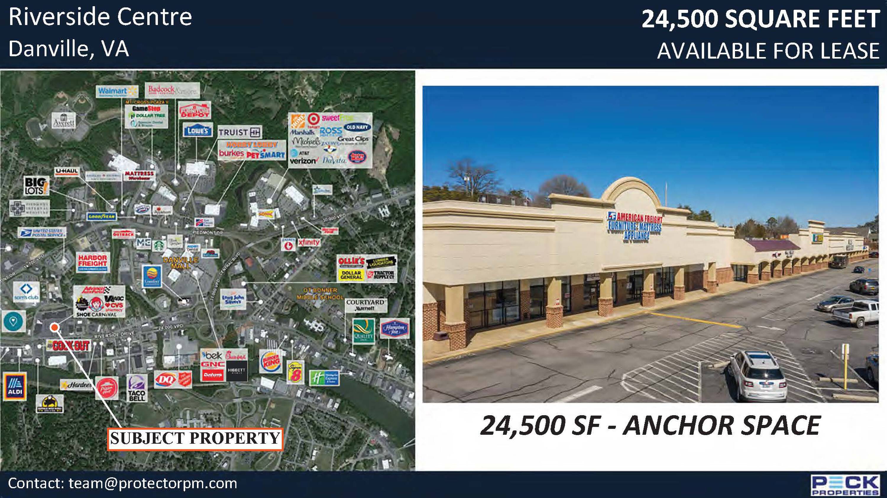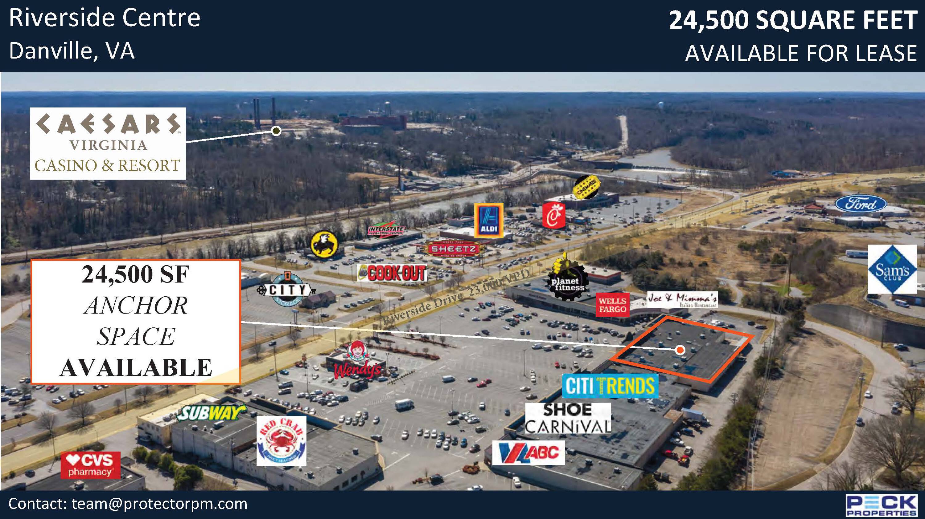 Retail space available in Danville, Virginia with high visibility.