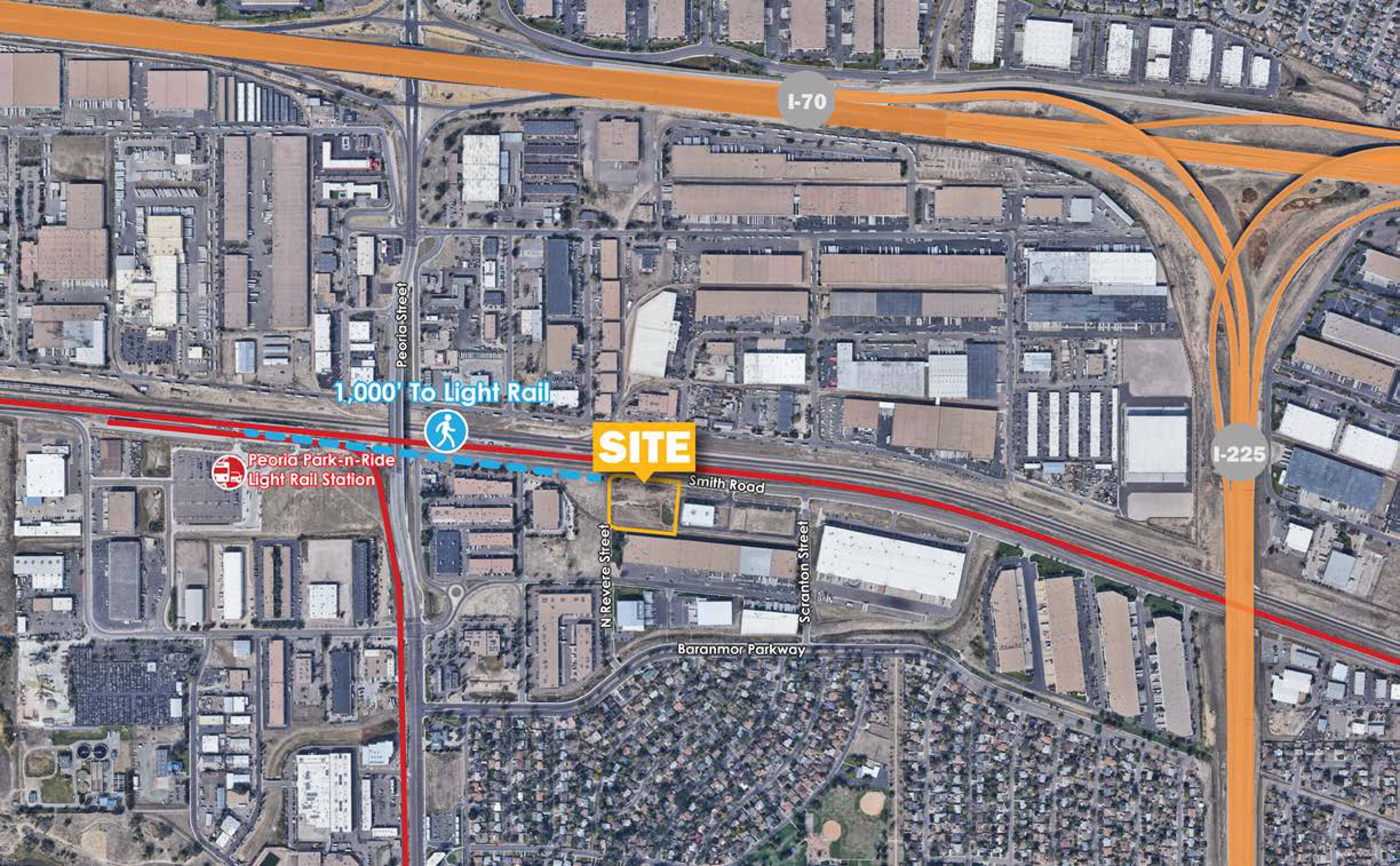 2.5-acre industrial land near transit with I-225/I-70 access.