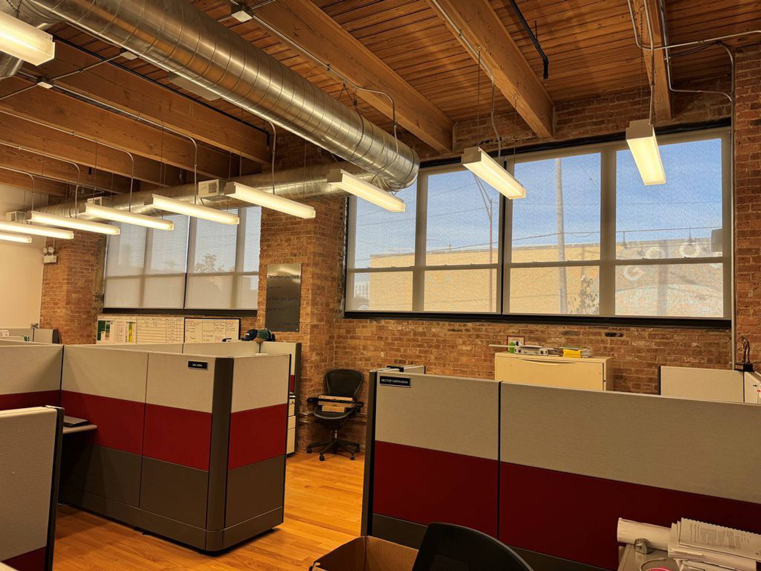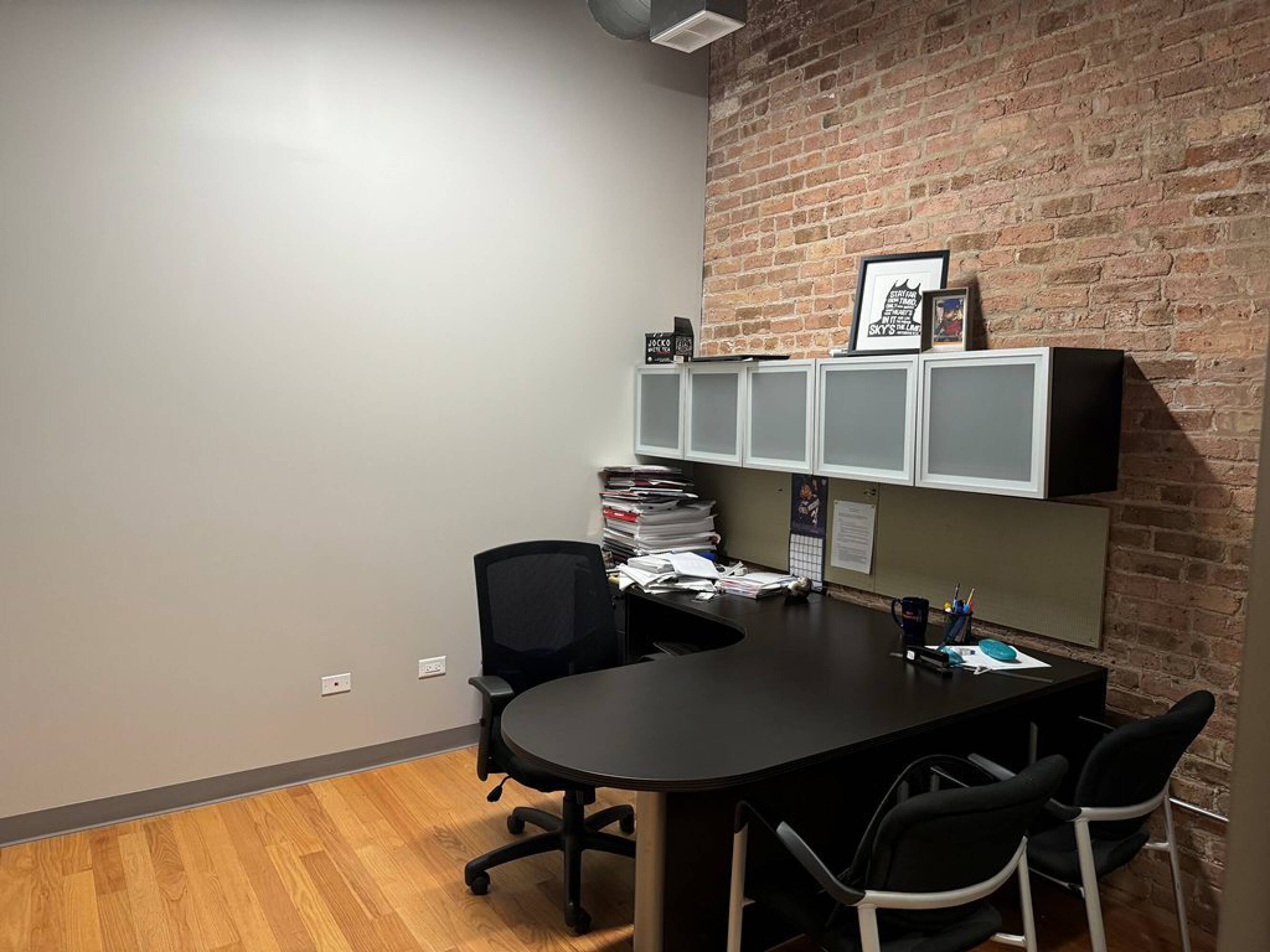 Loft office in Kinzie Corridor with exposed brick.