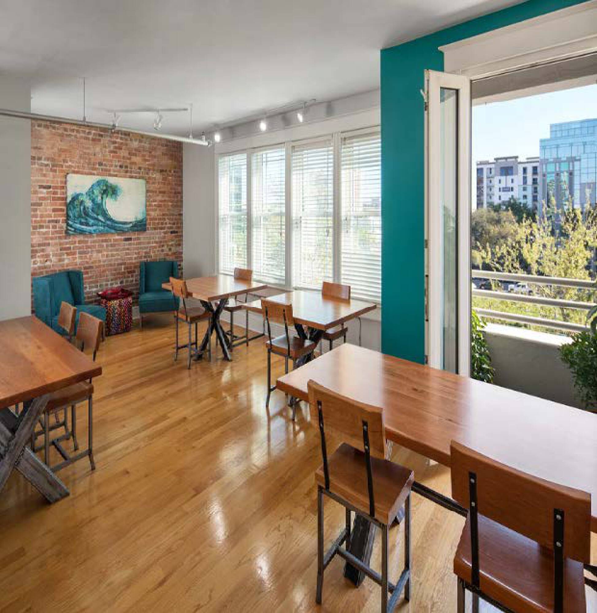 Mixed-use property with coworking, office, and retail spaces for rent.
