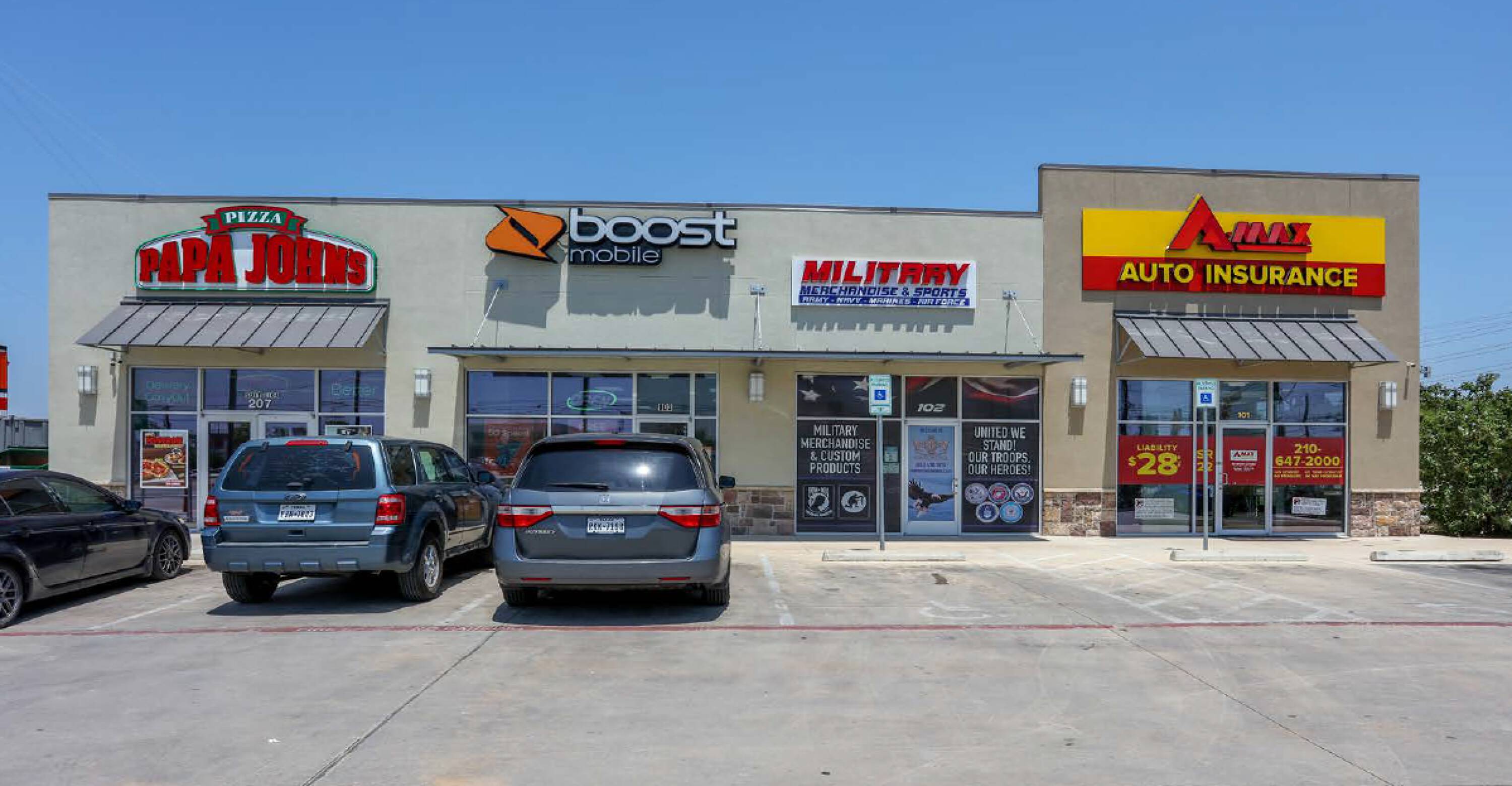 Retail space available at the entrance to Lackland AFB.