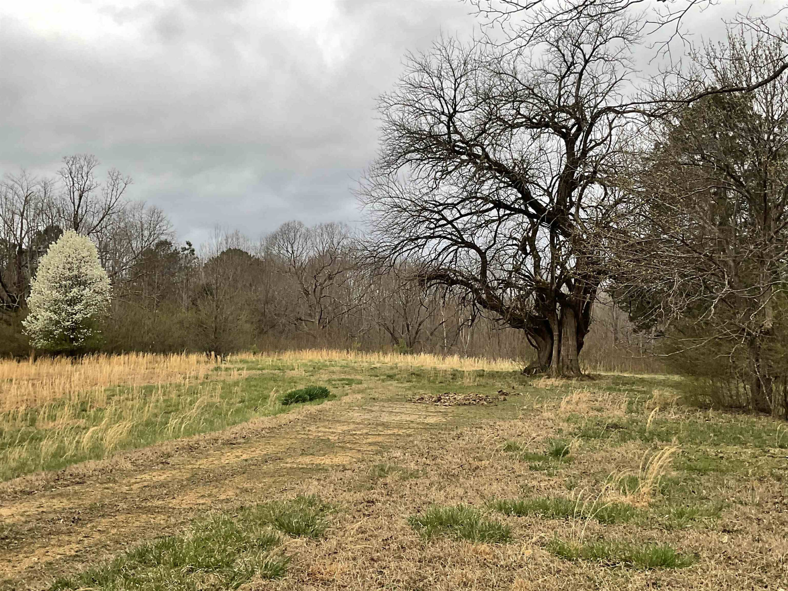Land with building spots, pasture, and mature trees.