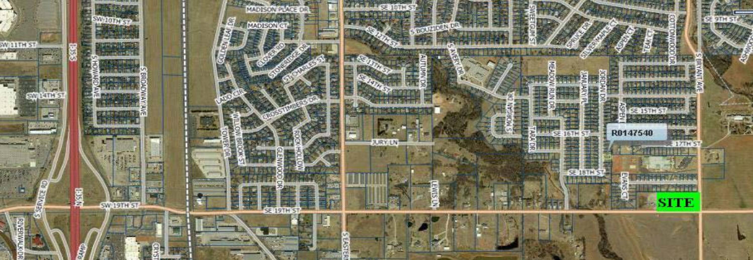 Land is available for sale at the northwest corner of 19th and Bryant in Moore, Oklahoma.