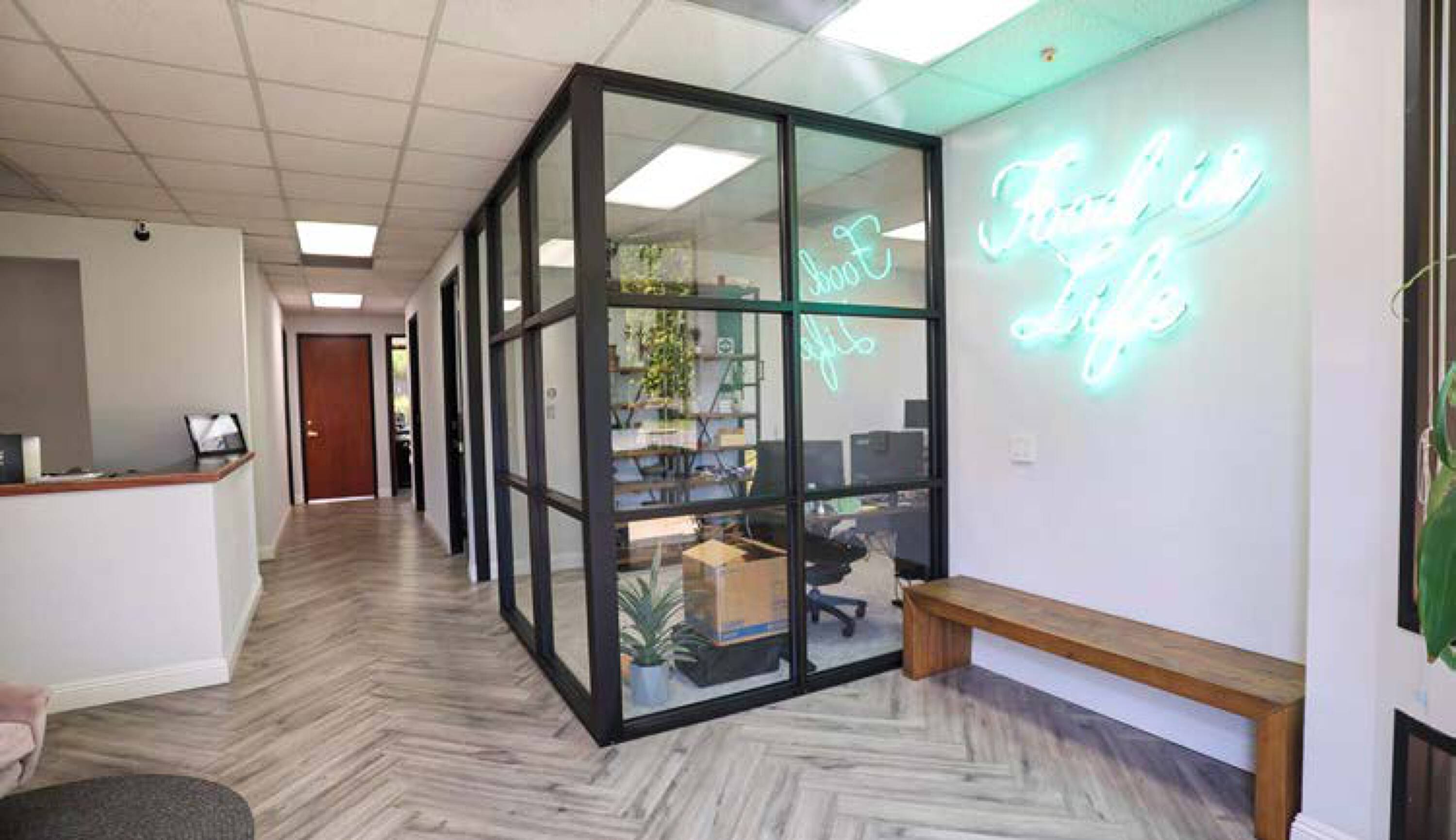 Professional office park with abundant parking and freeway access.