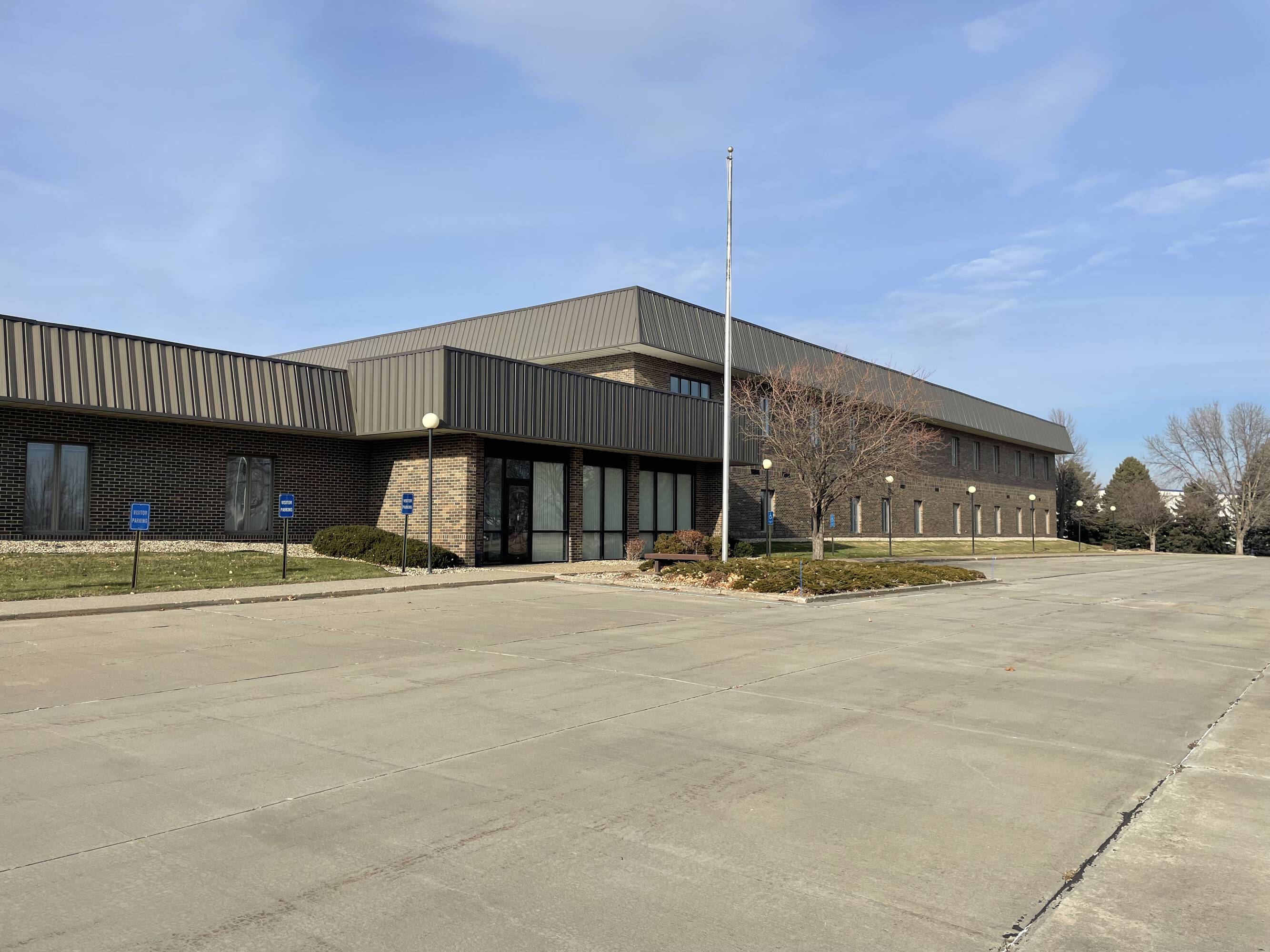 A 75,800 SF professional office building is available for acquisition. Situated on 7.79 acres at 1515 N Sanborn Blvd, Mitchell, SD 57301, the property is zoned HB Highway Oriented Business District. The building features an elevator and a build-out that includes a reception area, multiple conference/work rooms/offices, open space for systems furniture, a large shared break area with kitchen, and in-suite restrooms. The property includes a 110,889 SF lot that allows for additional building, parking, or potential sale. Existing furniture is negotiable. The building offers perimeter windows for natural light, along with mature landscaping.