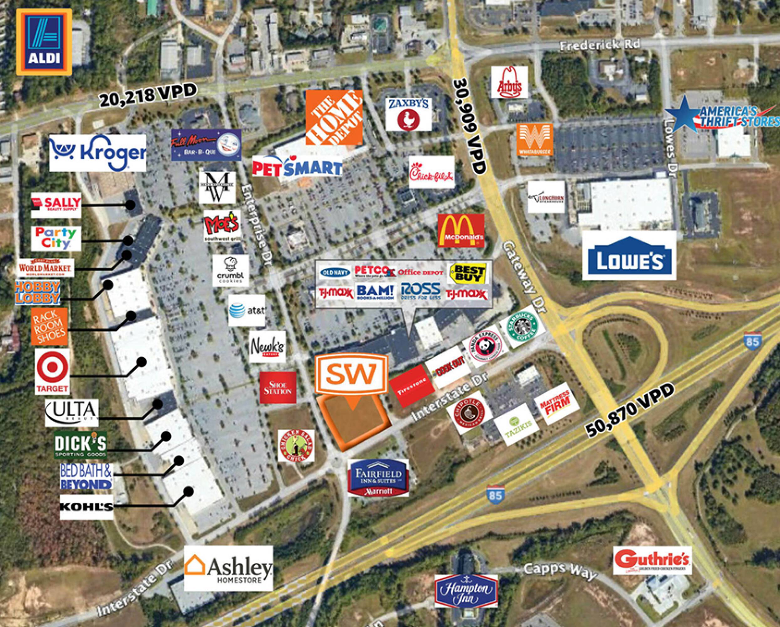 2.5 acres available in high-traffic Tiger Town power center.