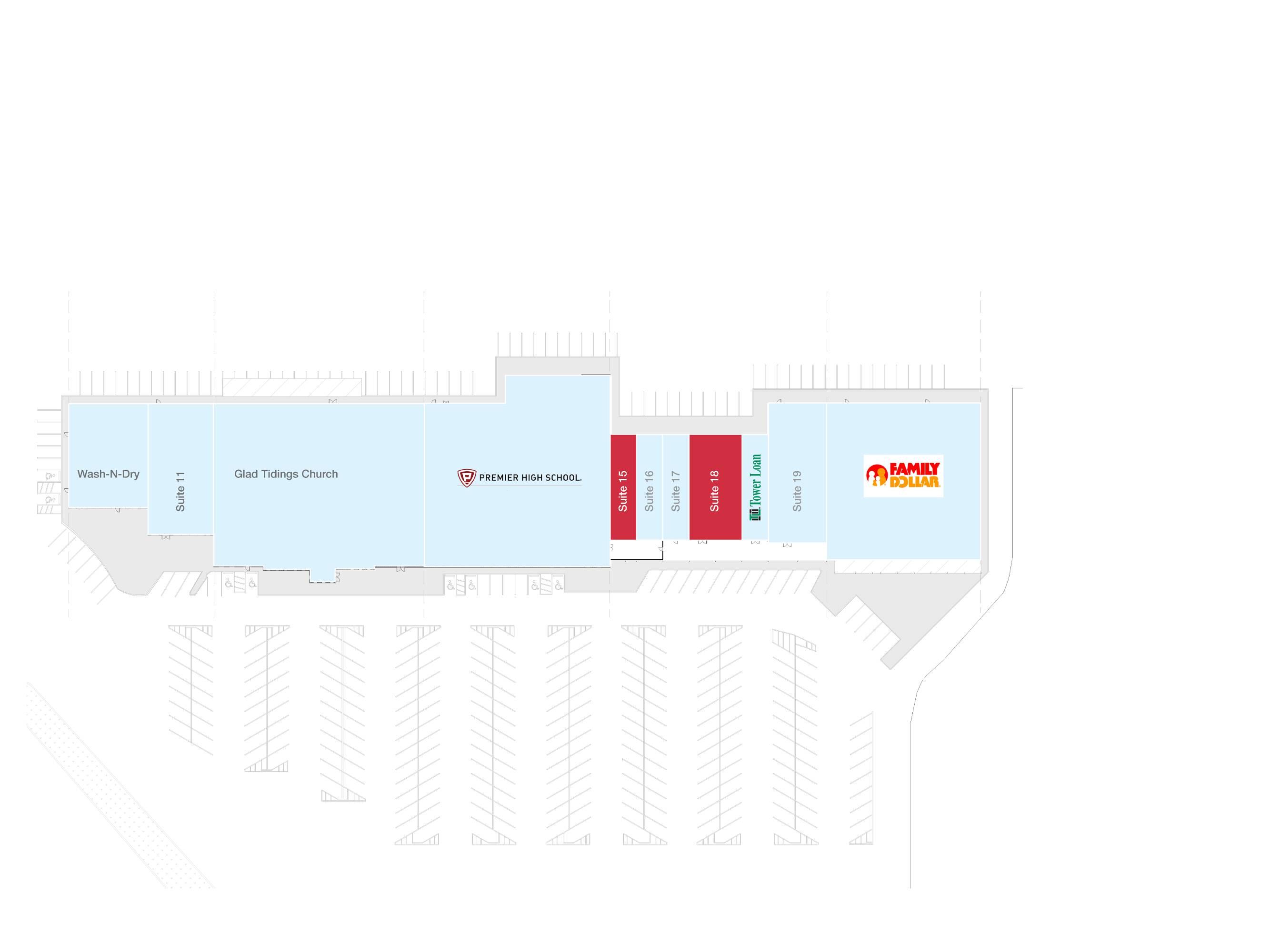 This property features: High traffic and **excellent visibility** location.; Part of a well‑known neighborhood shopping center.; Co‑tenancy with established businesses like Family Dollar and Premier High School.