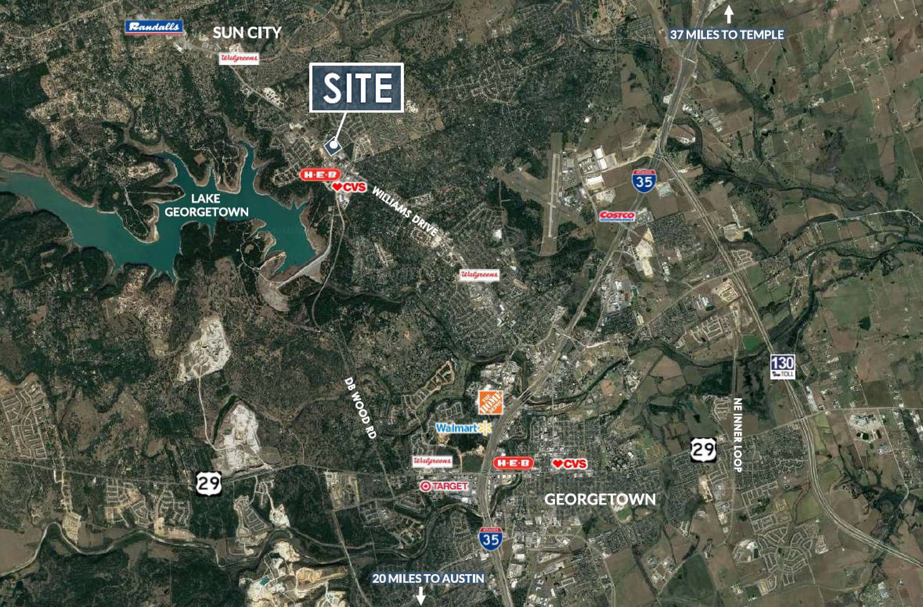 This property offers 16.7 total acres of retail development land. Two pads front Williams Drive. The location is across the street from a high-performing H-E-B grocery store and a new Sprouts-anchored retail project.