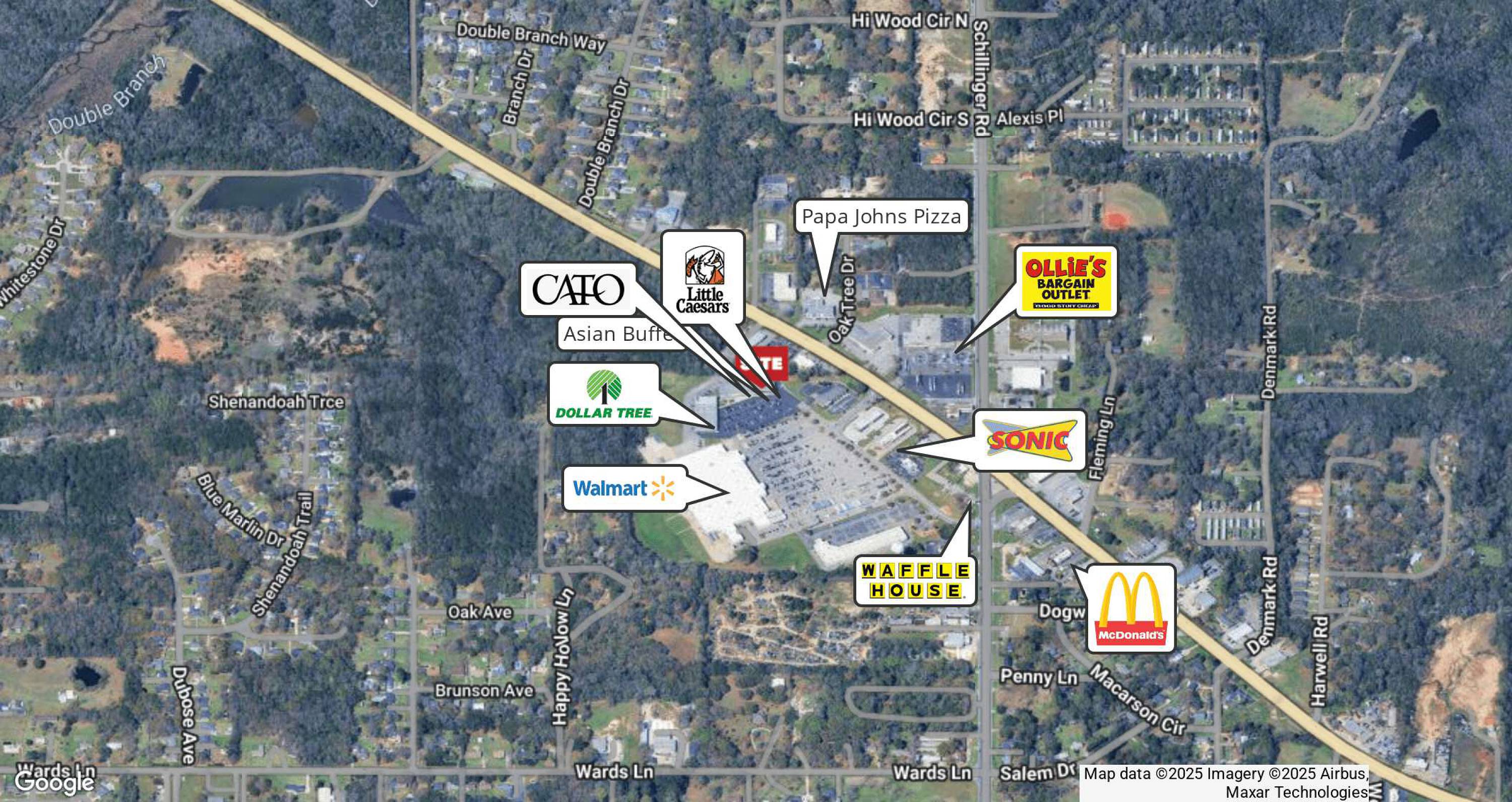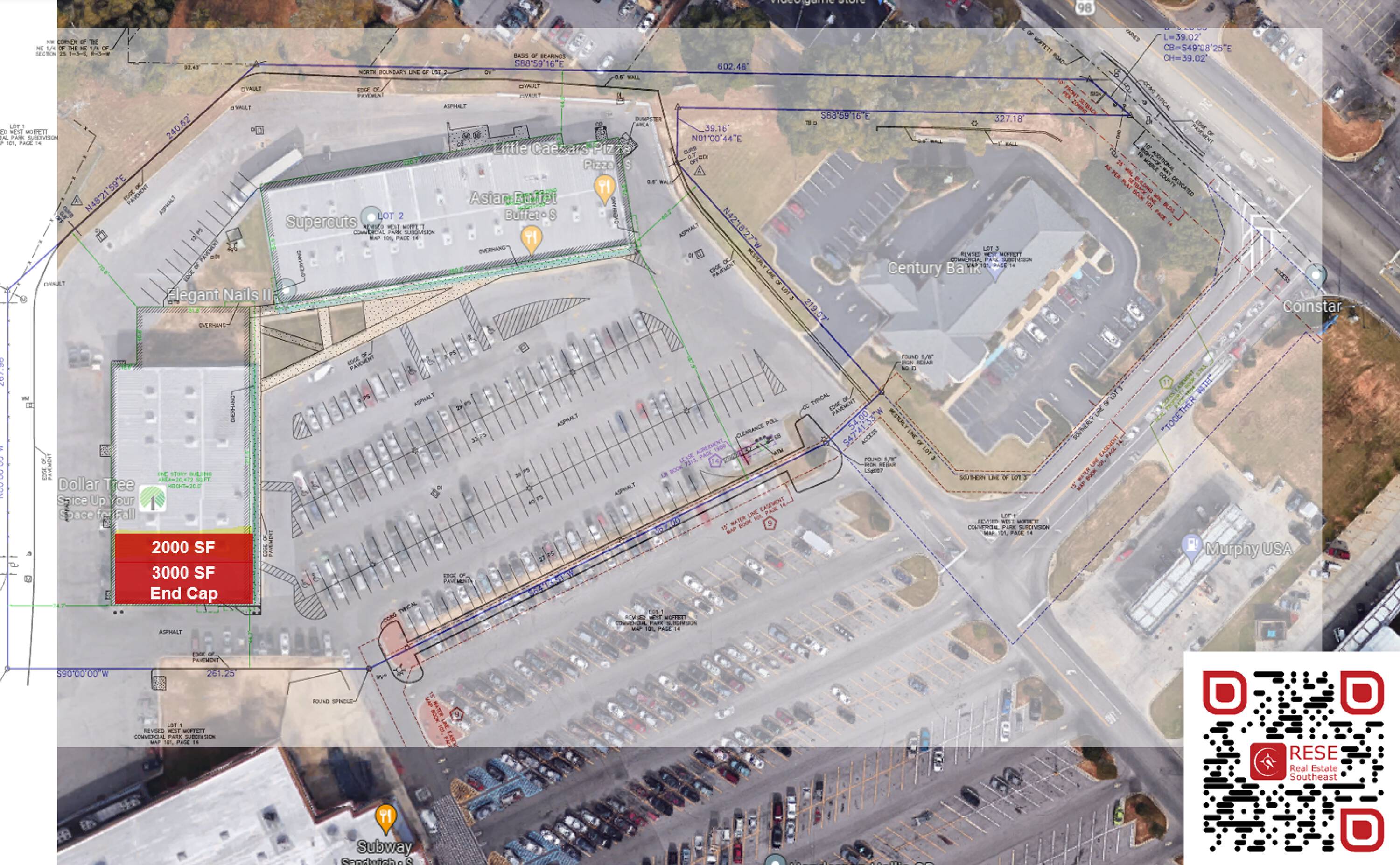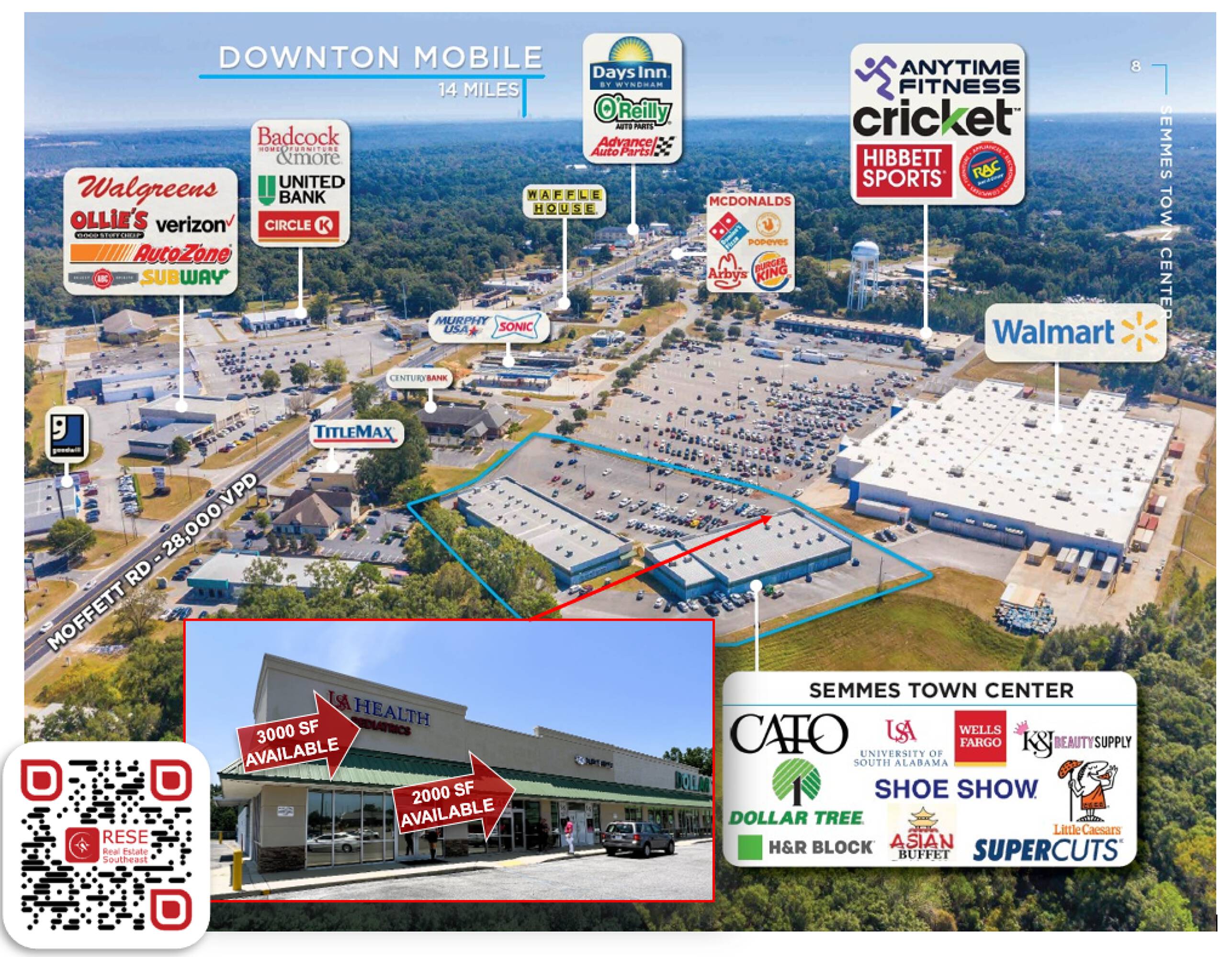 Retail center adjacent to Walmart with high visibility.