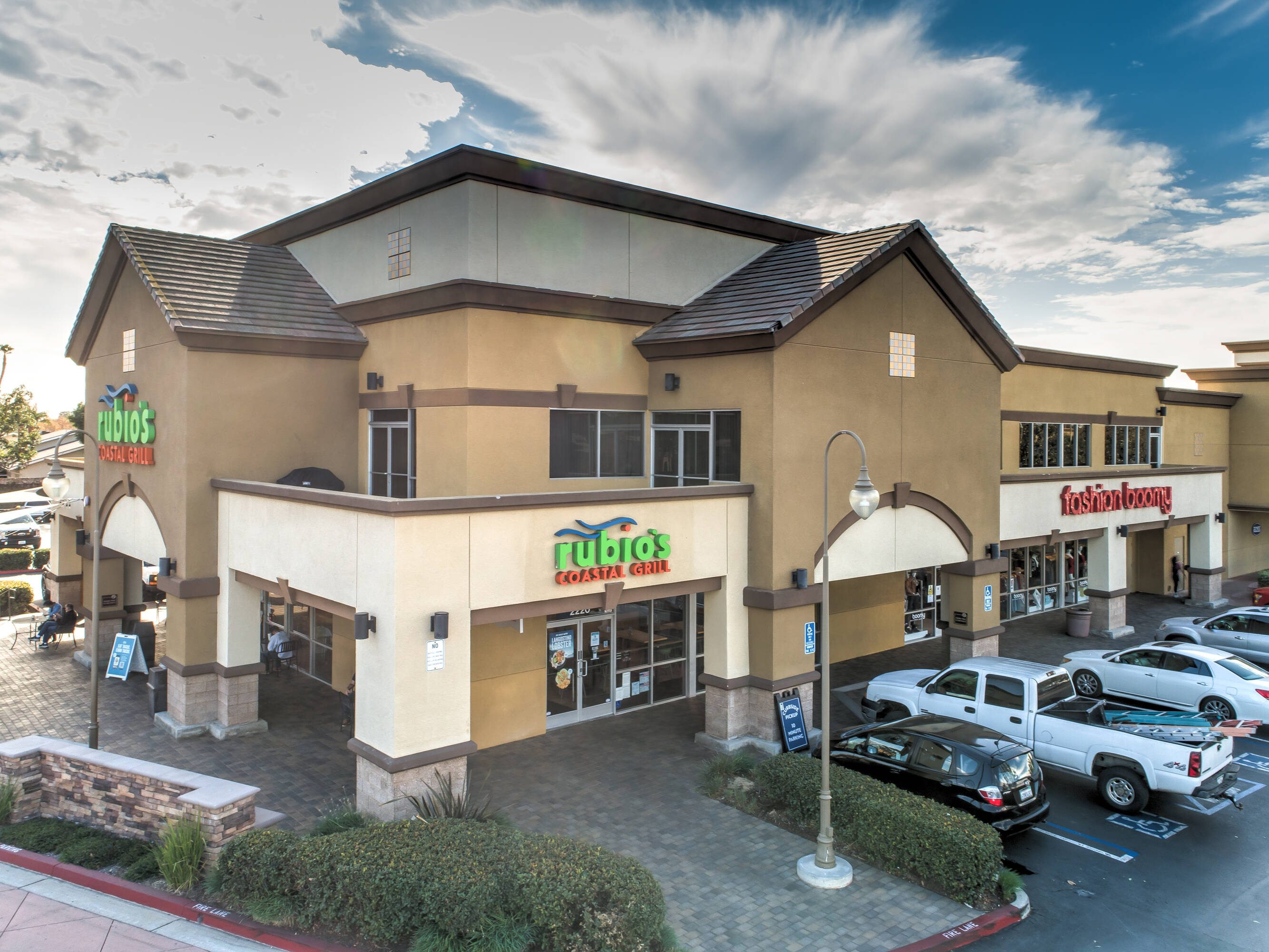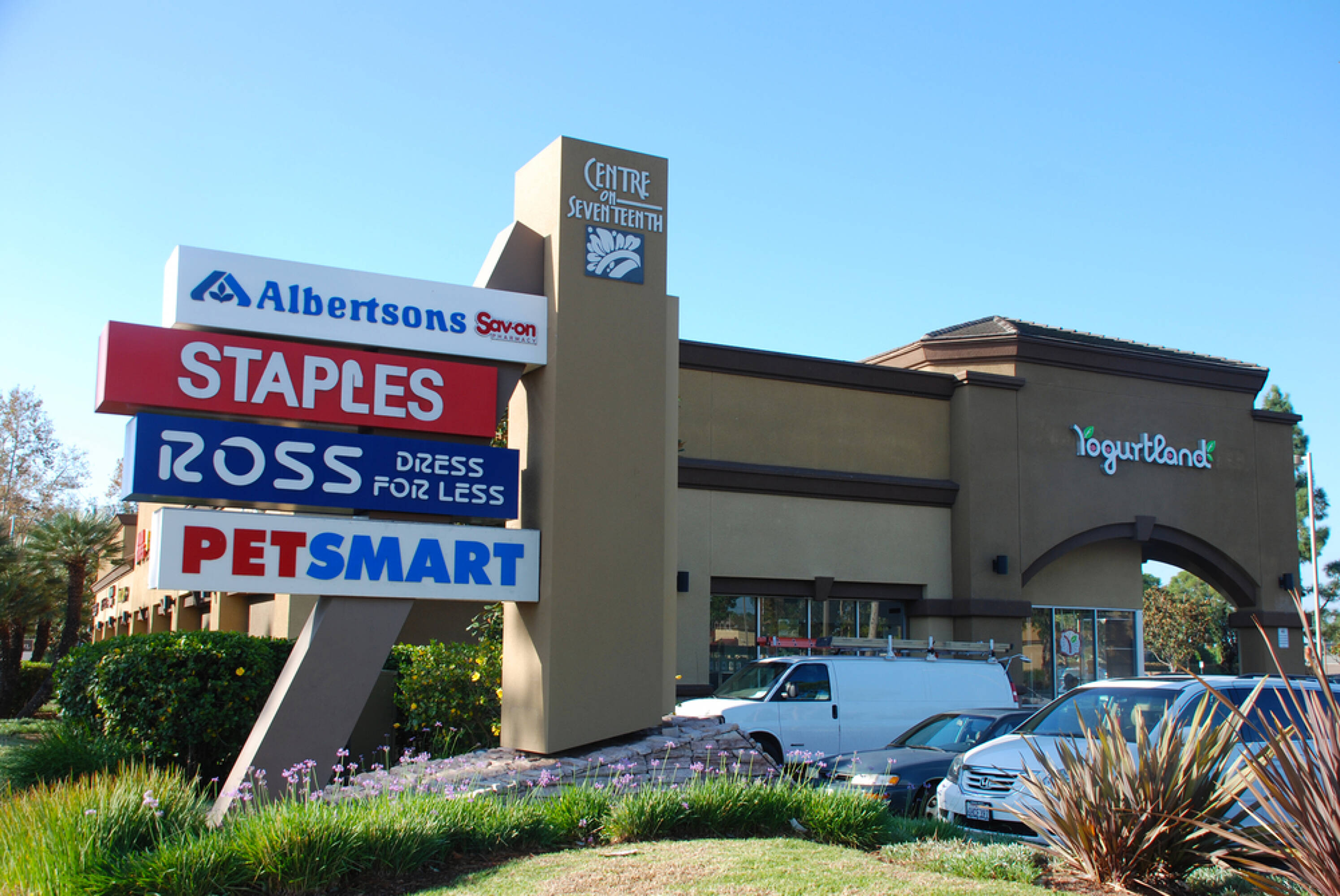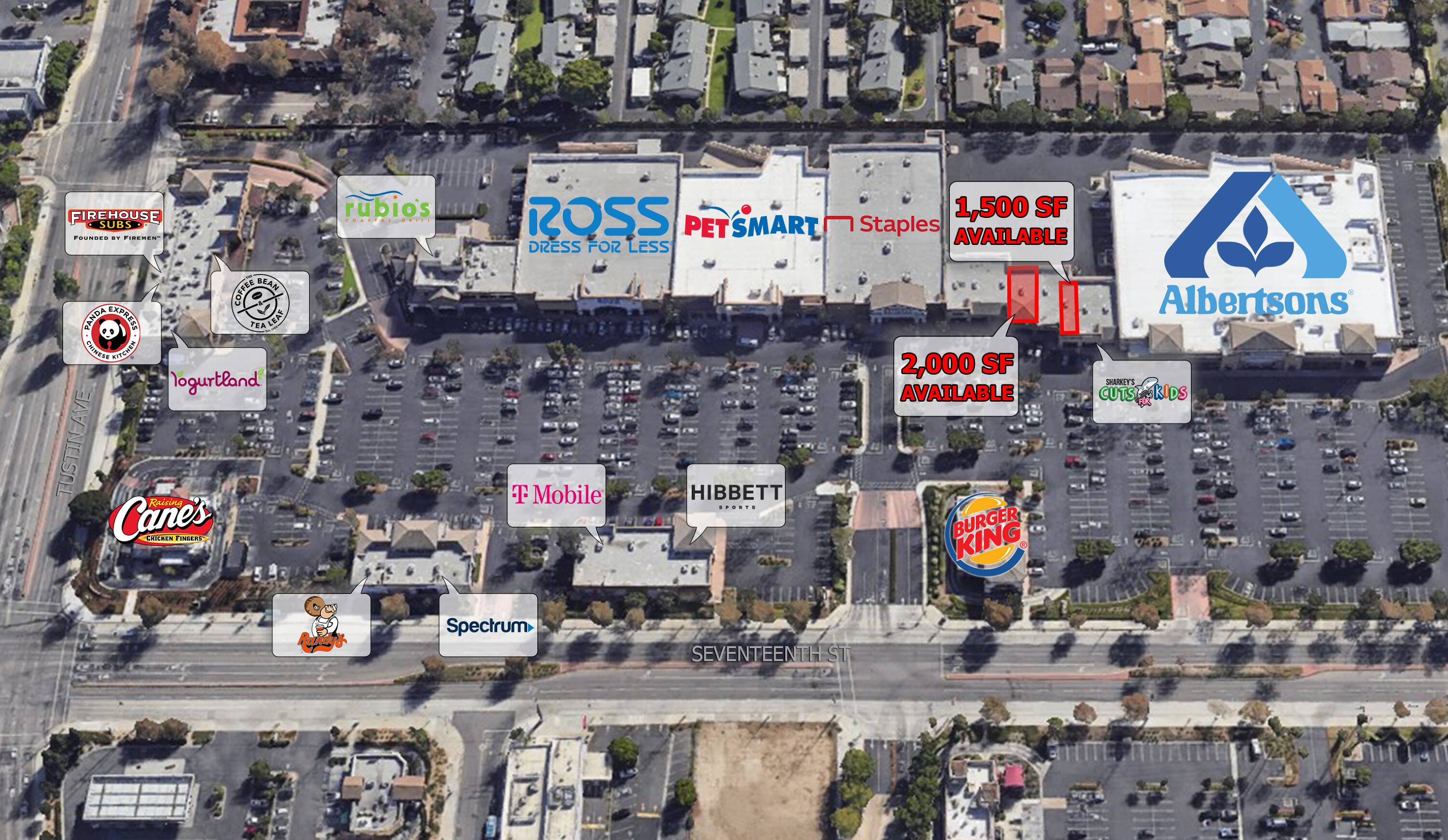 Retail spaces for lease in a busy Santa Ana center.