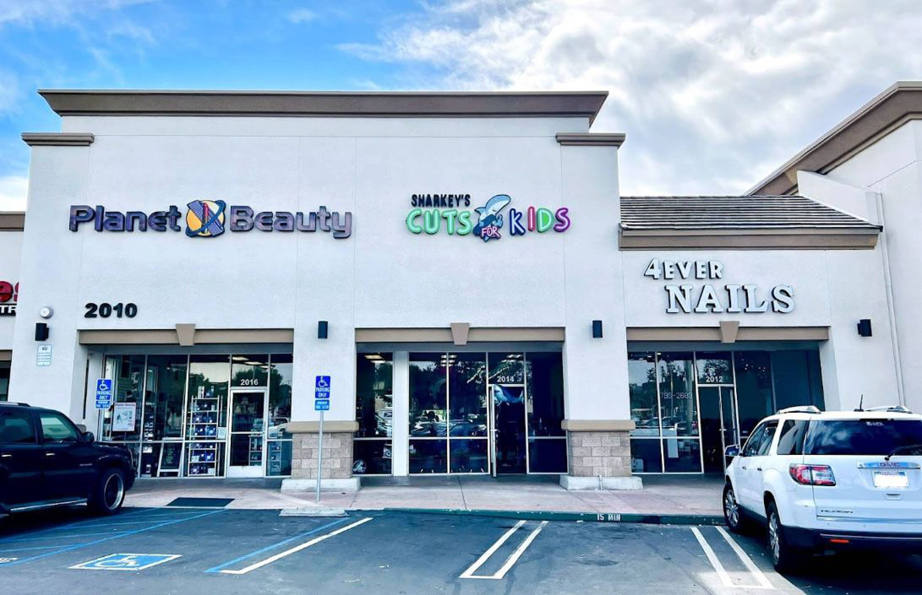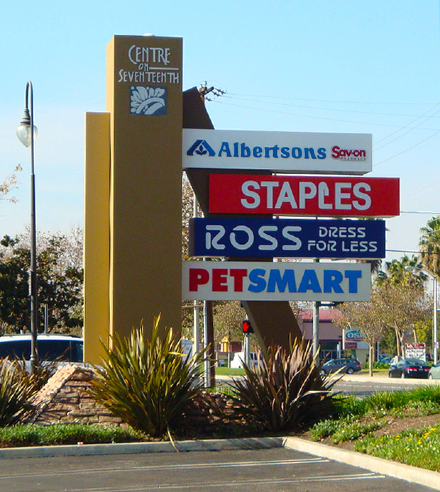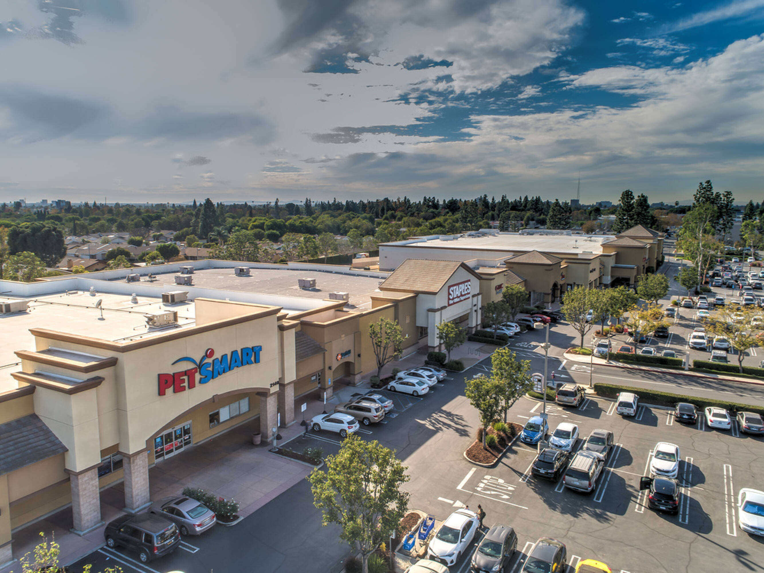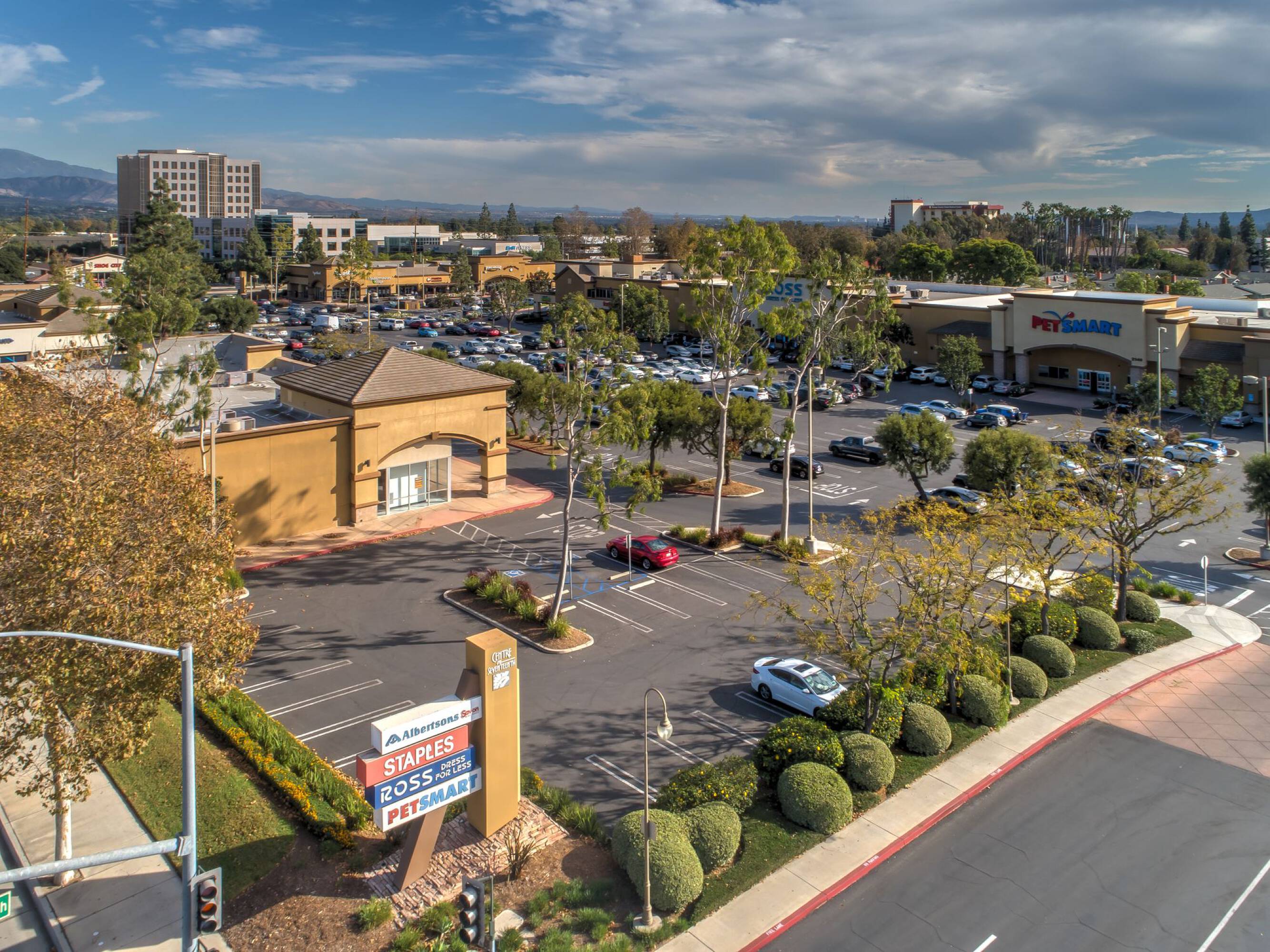 Retail spaces for lease in a busy Santa Ana center.