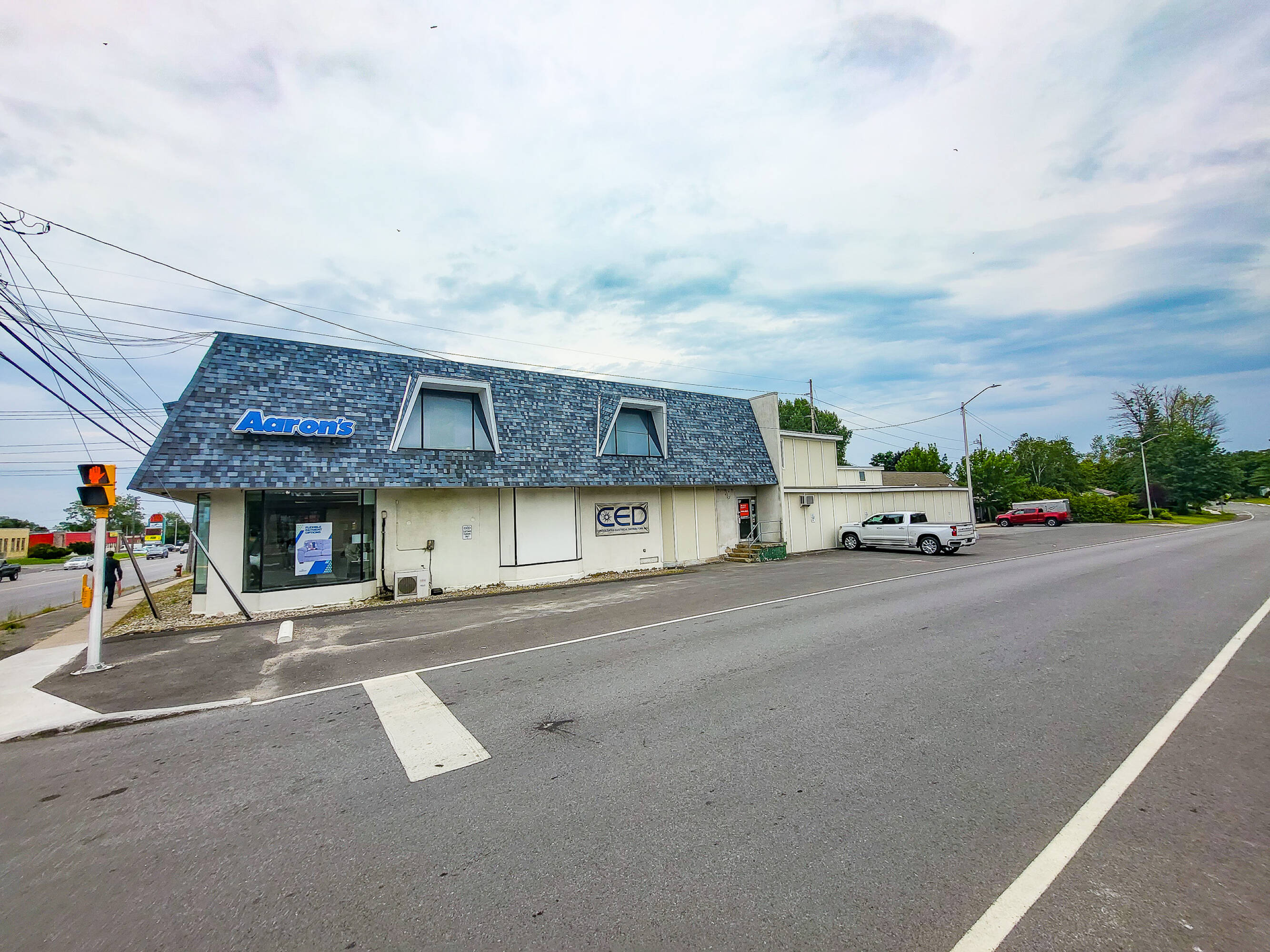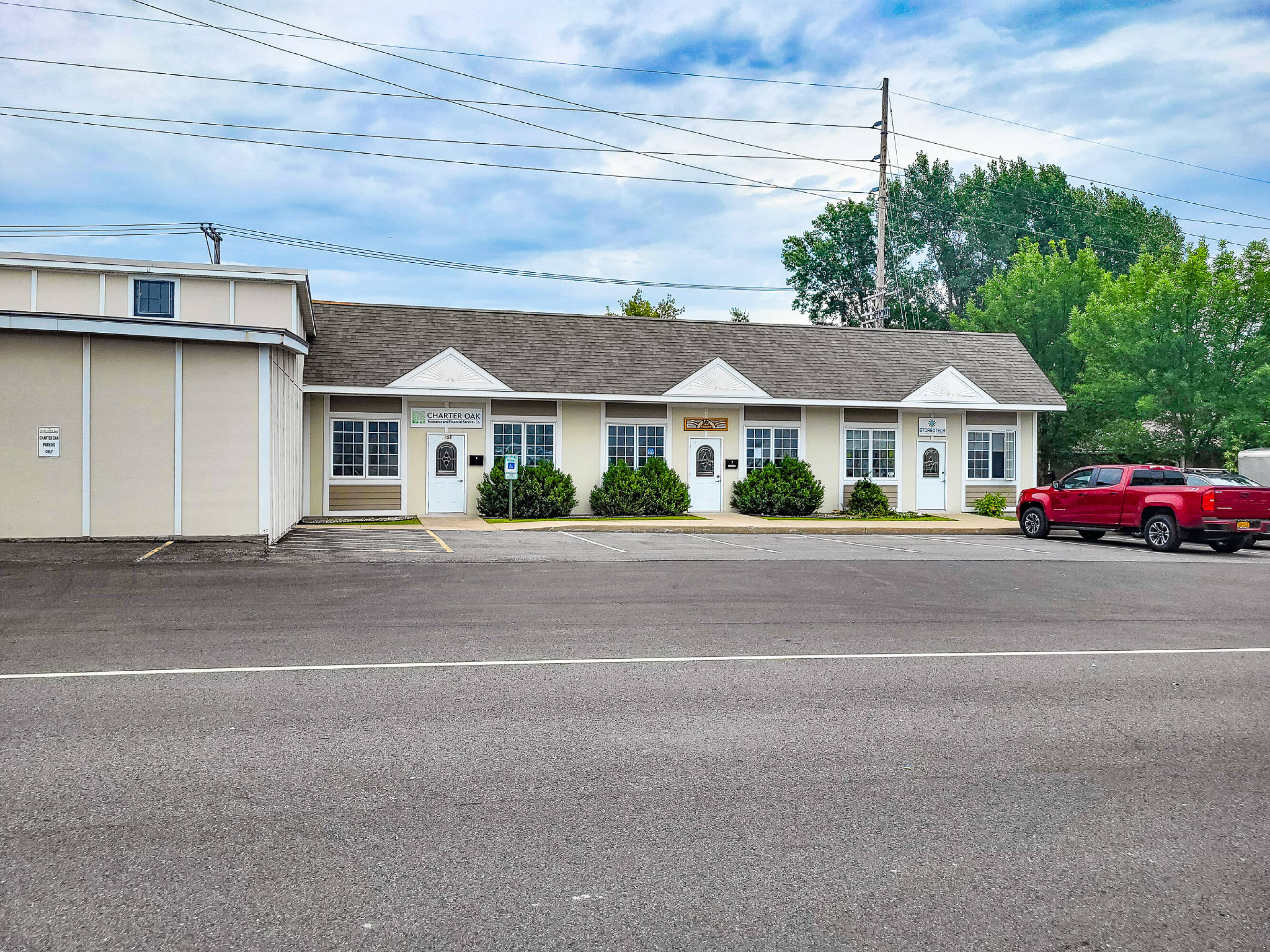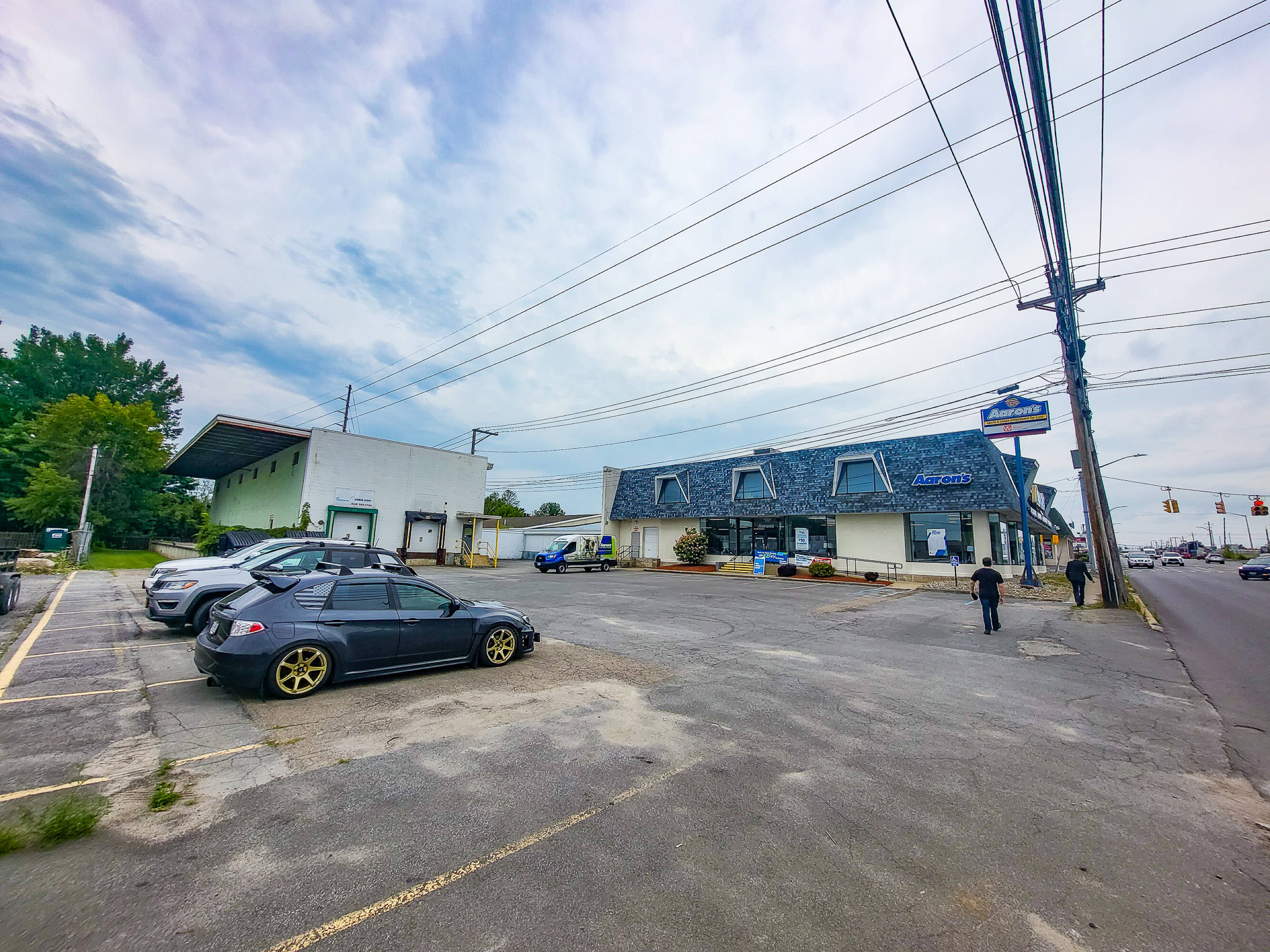 Mixed-use property with retail, warehouse, and office spaces.