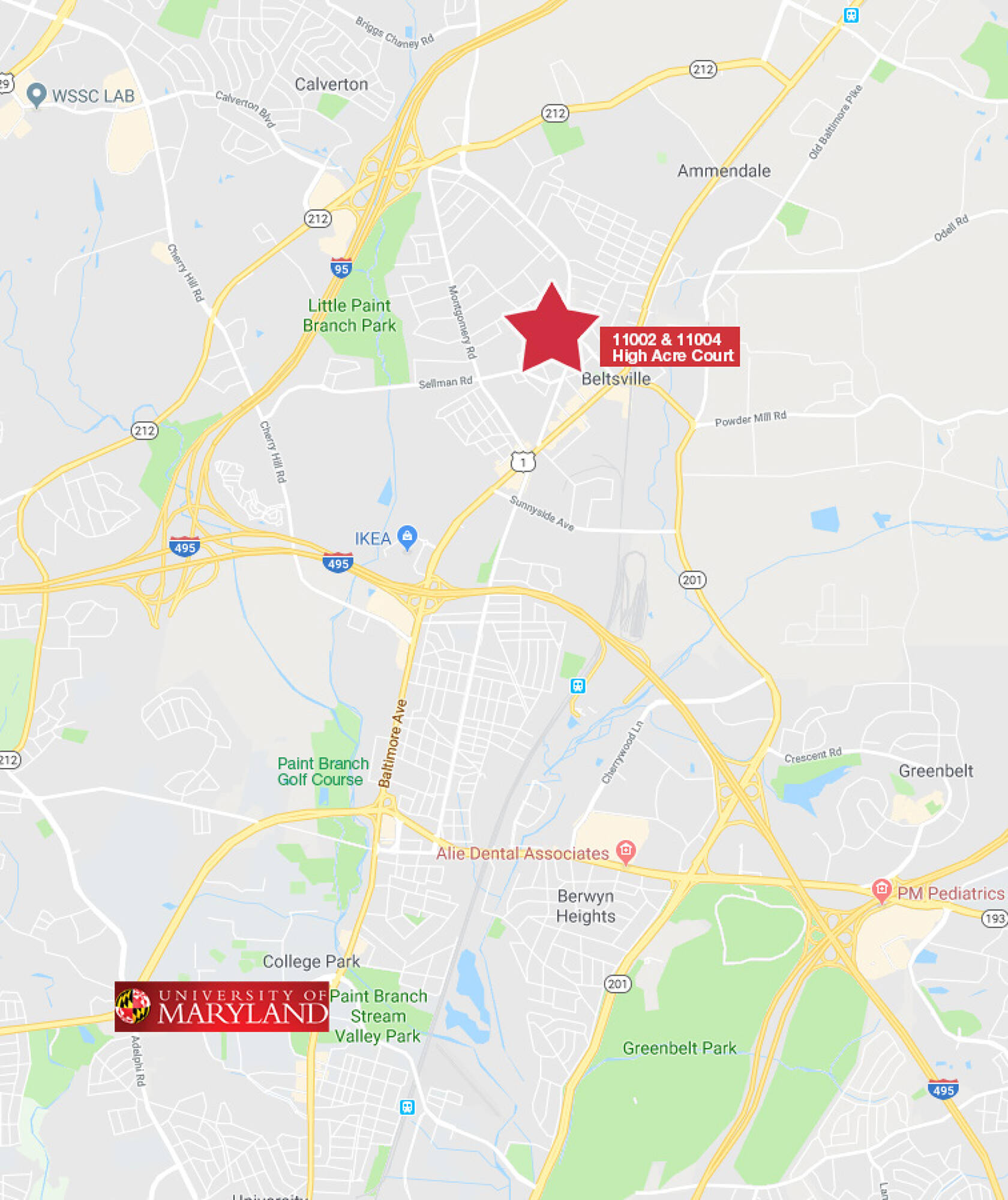 The property is located at 11002 & 11004 High Acre Court Beltsville, MD.