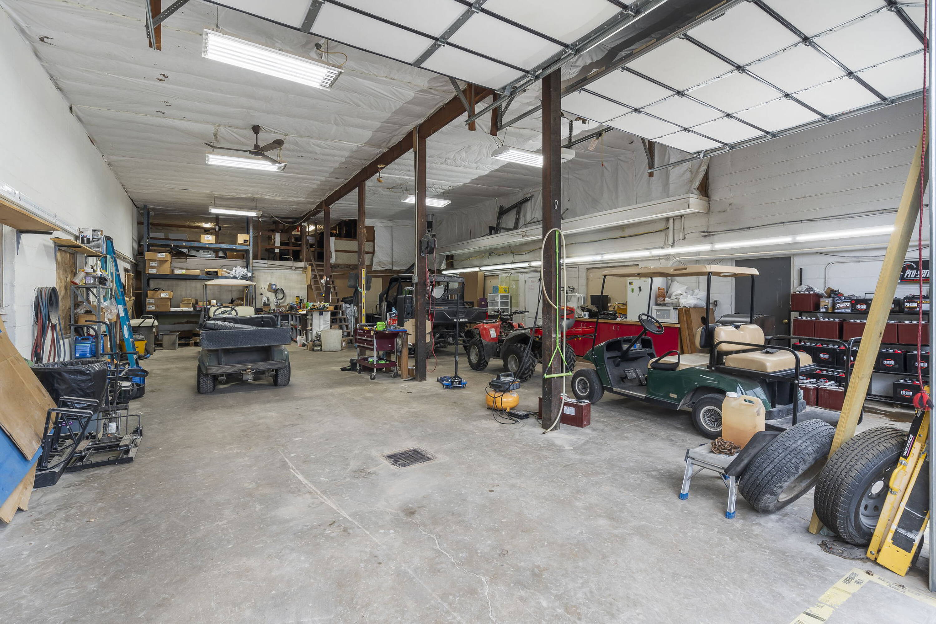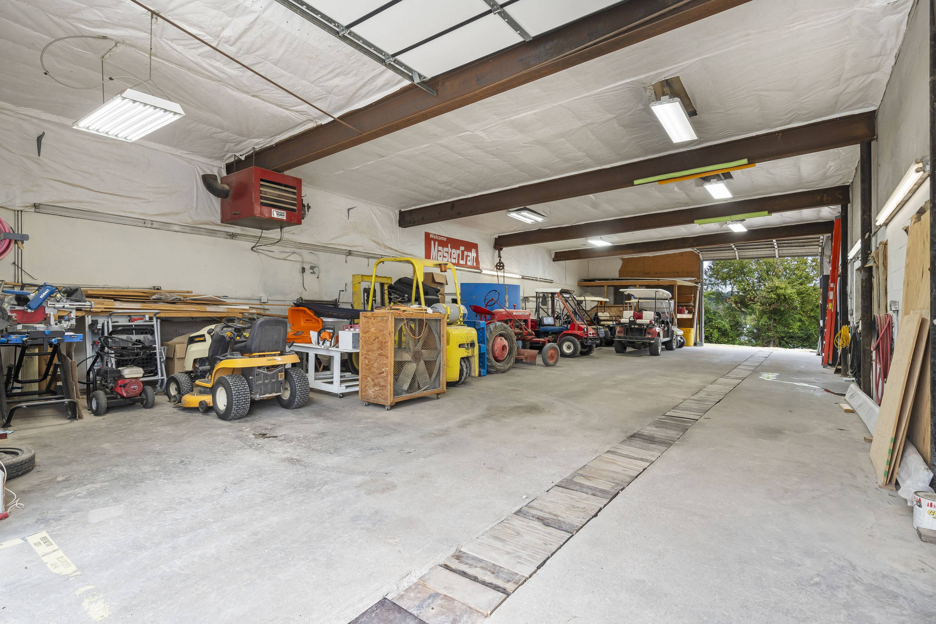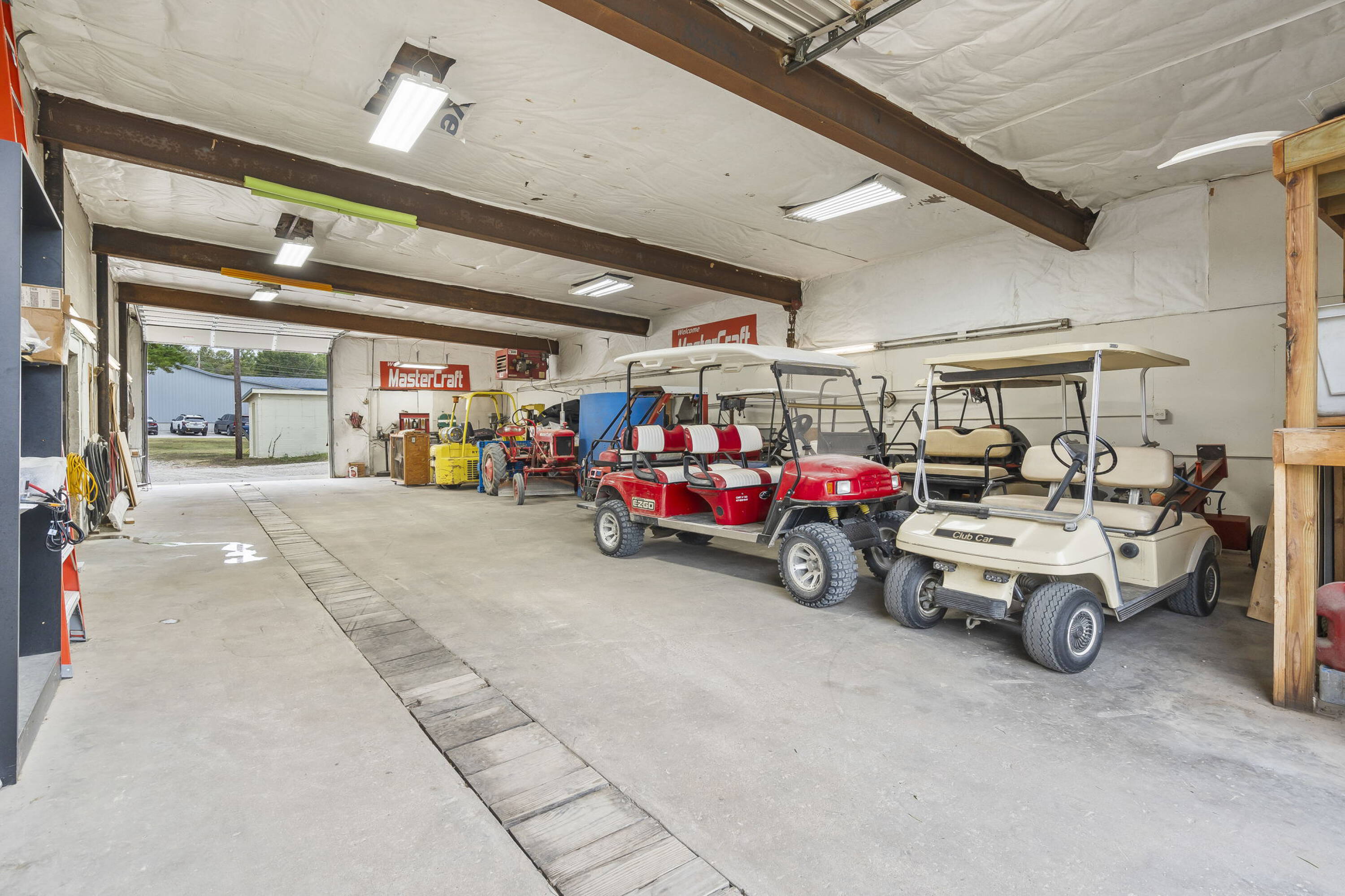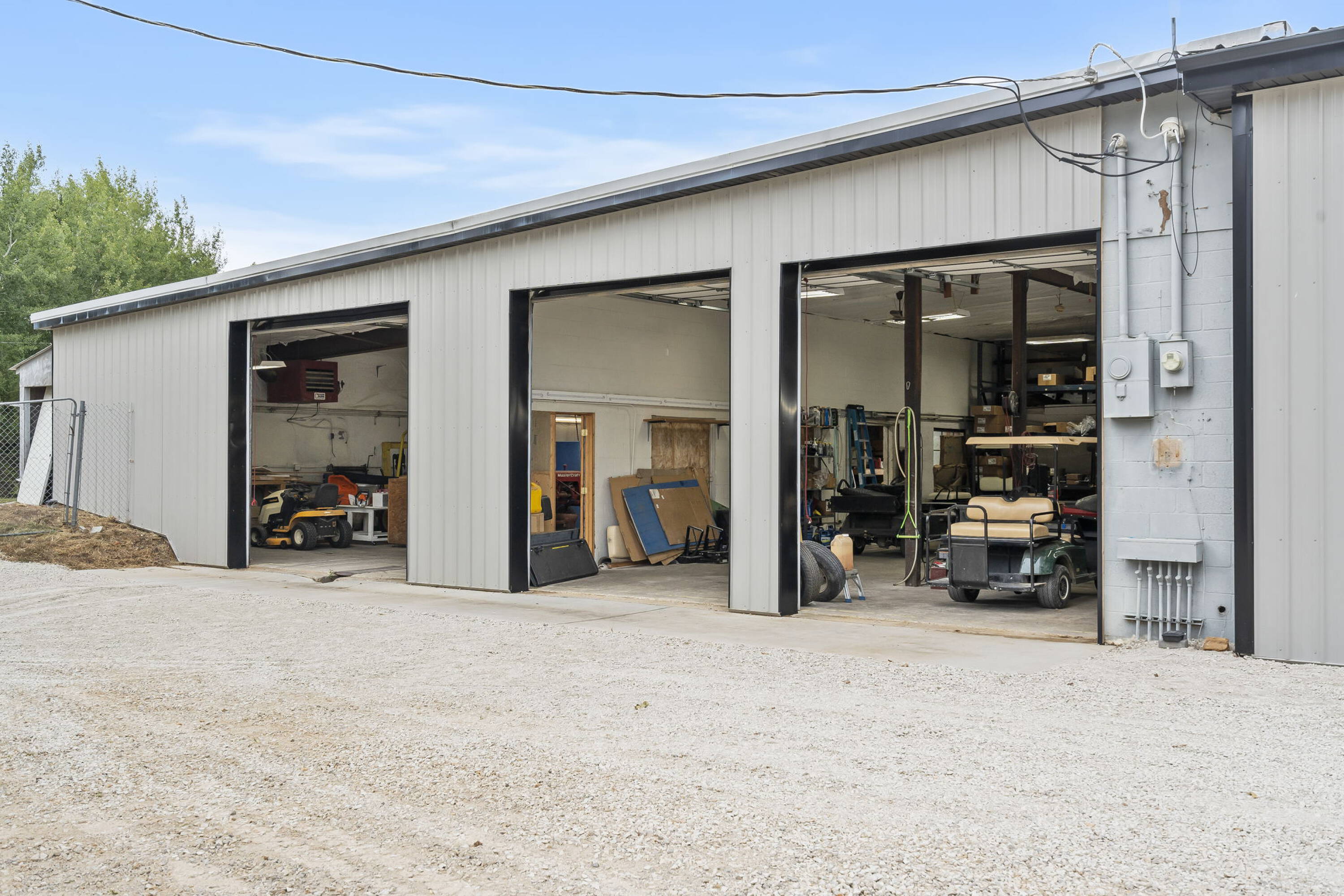 This commercial property is located on Table Rock Lake, adjacent to a boat ramp and courtesy dock. The 5,790 square foot space is divided into a retail area and a shop/warehouse. The property includes a drive-through garage and service bays equipped with in-floor drains, ventilation, and insulated garages. Air compressor lines are installed in all service bays, and a chain hoist is present. An additional foundation and slab are available for constructing a storage building or expansion. The building's power capacity supports heavy equipment. Existing inventory and equipment are available for purchase. The property is move-in ready and located near other businesses. It is suited for various uses.