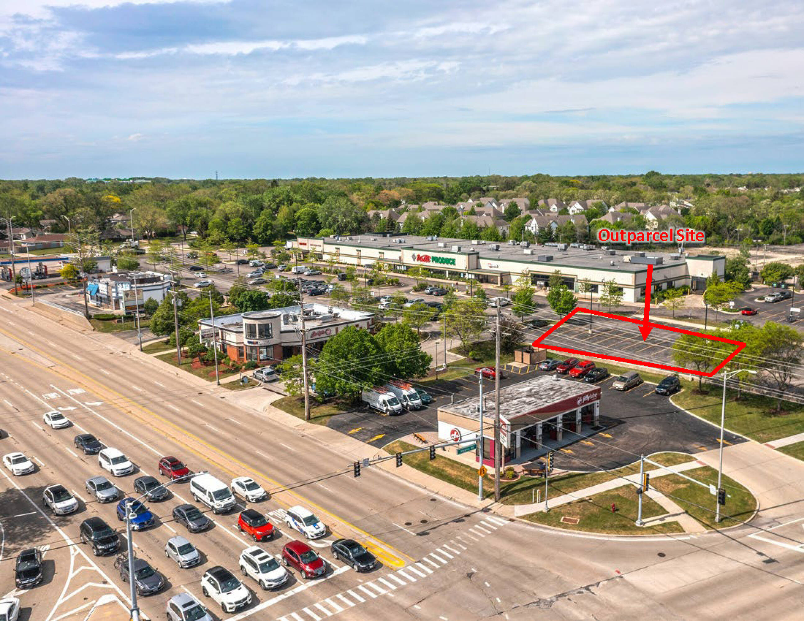 Retail outparcel with drive-thru option available for lease.