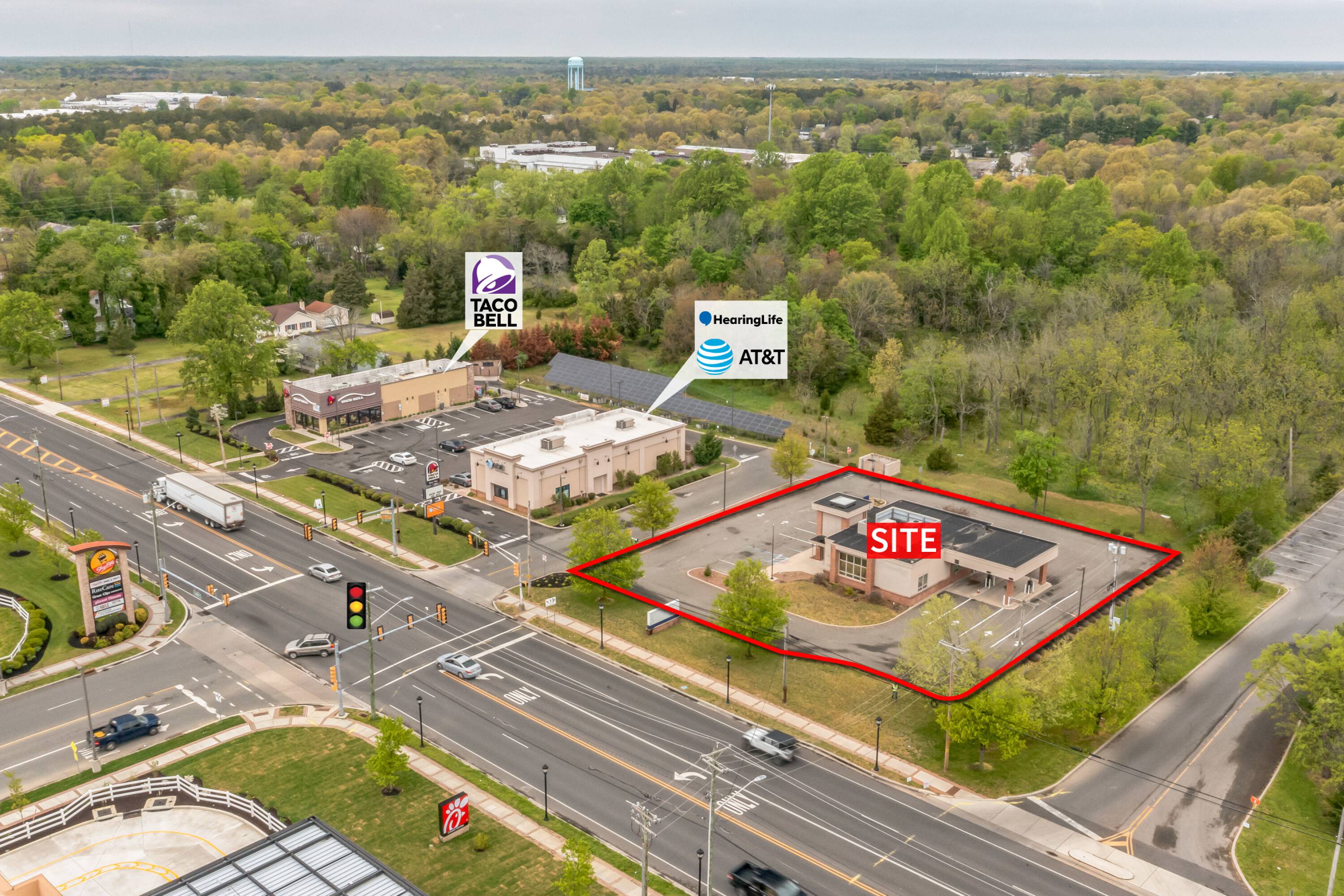 Former bank space available for lease near Walmart Supercenter.