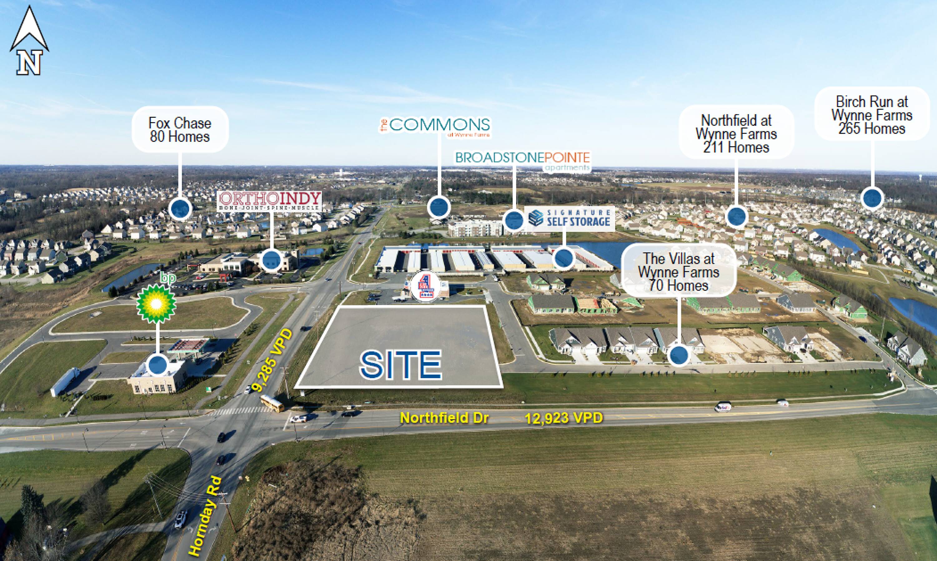 This property features: Strategic location at the Northeast Corner of Hornaday Road & Northfield Drive.; Development opportunity with **.5 - 1.75 acres available for up to 10,000 SF of commercial space.**; Located in Hendricks County, one of the fastest‑growing counties in the Indianapolis MSA.