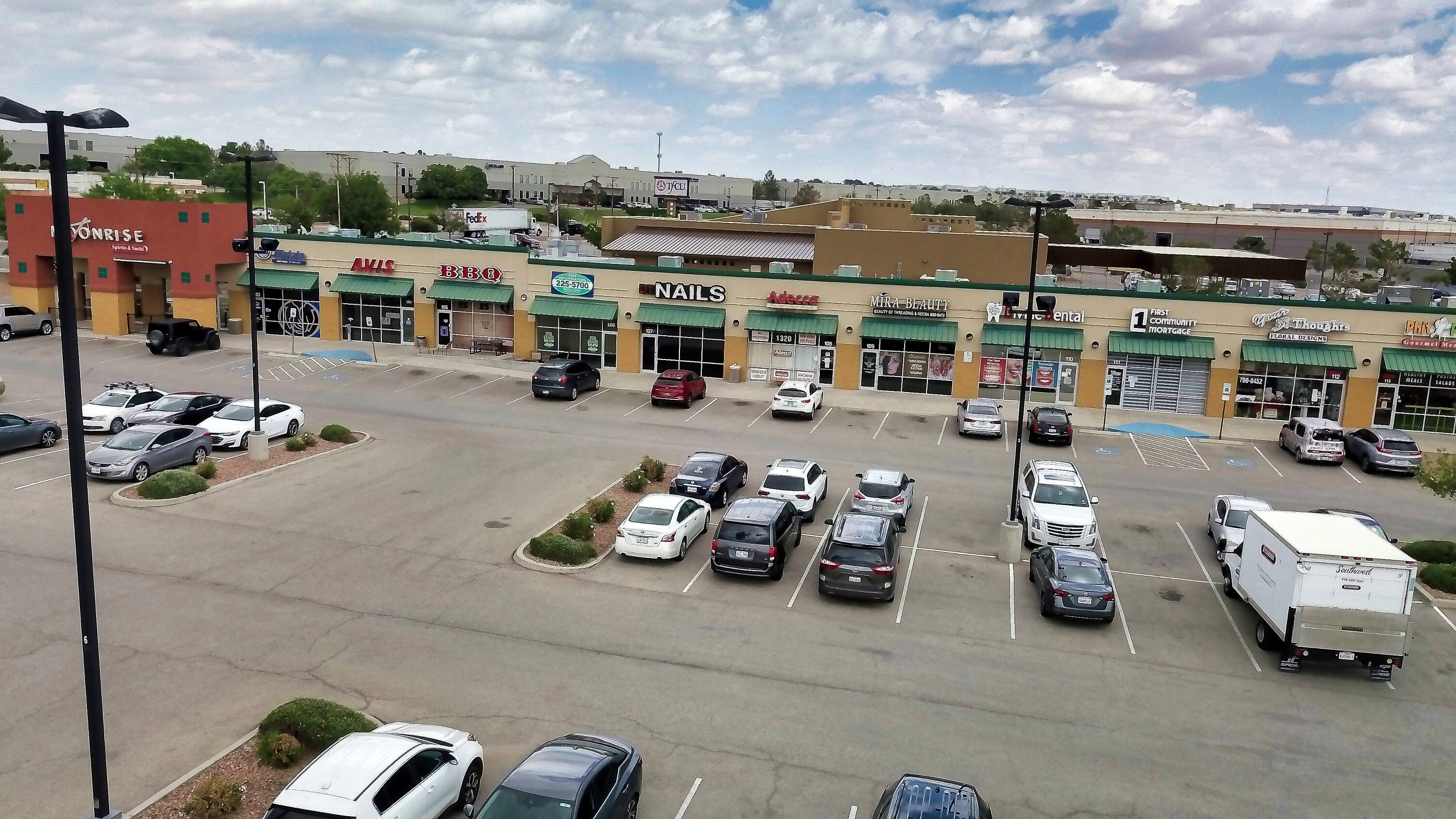 This commercial real estate is located in a shopping center with high traffic volume off I-10. The property is situated at 1320 N Zaragoza Rd, El Paso, TX 79936.