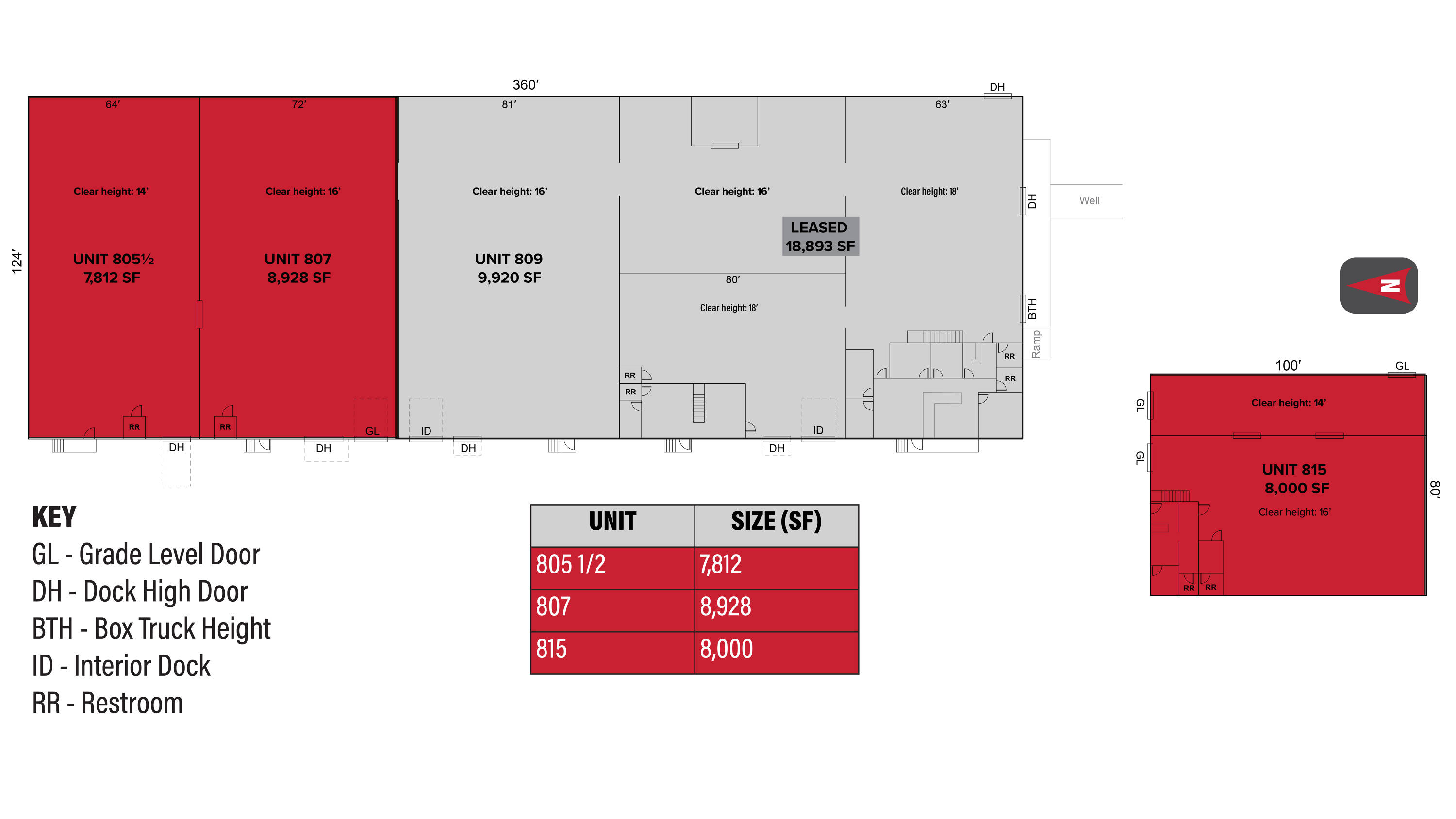 Unit 805 1/2n• Total: 7,812 SFn• One (1) Dock High Doorn• Total Available SF:...