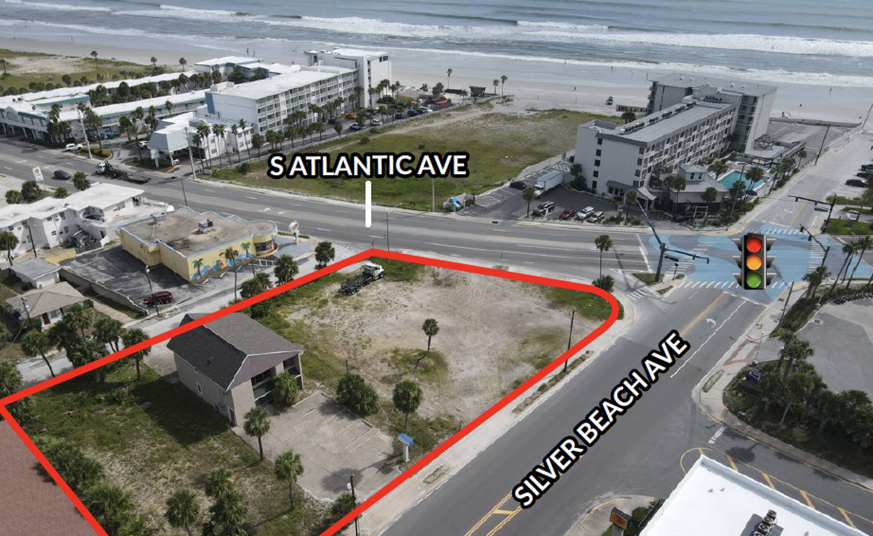 This property features: Premier Daytona Beach location steps from the beach; High‑traffic location at the signalized intersection of A1A and Silver Beach Avenue; 0.79 acre ground lease or build‑to‑suit opportunity