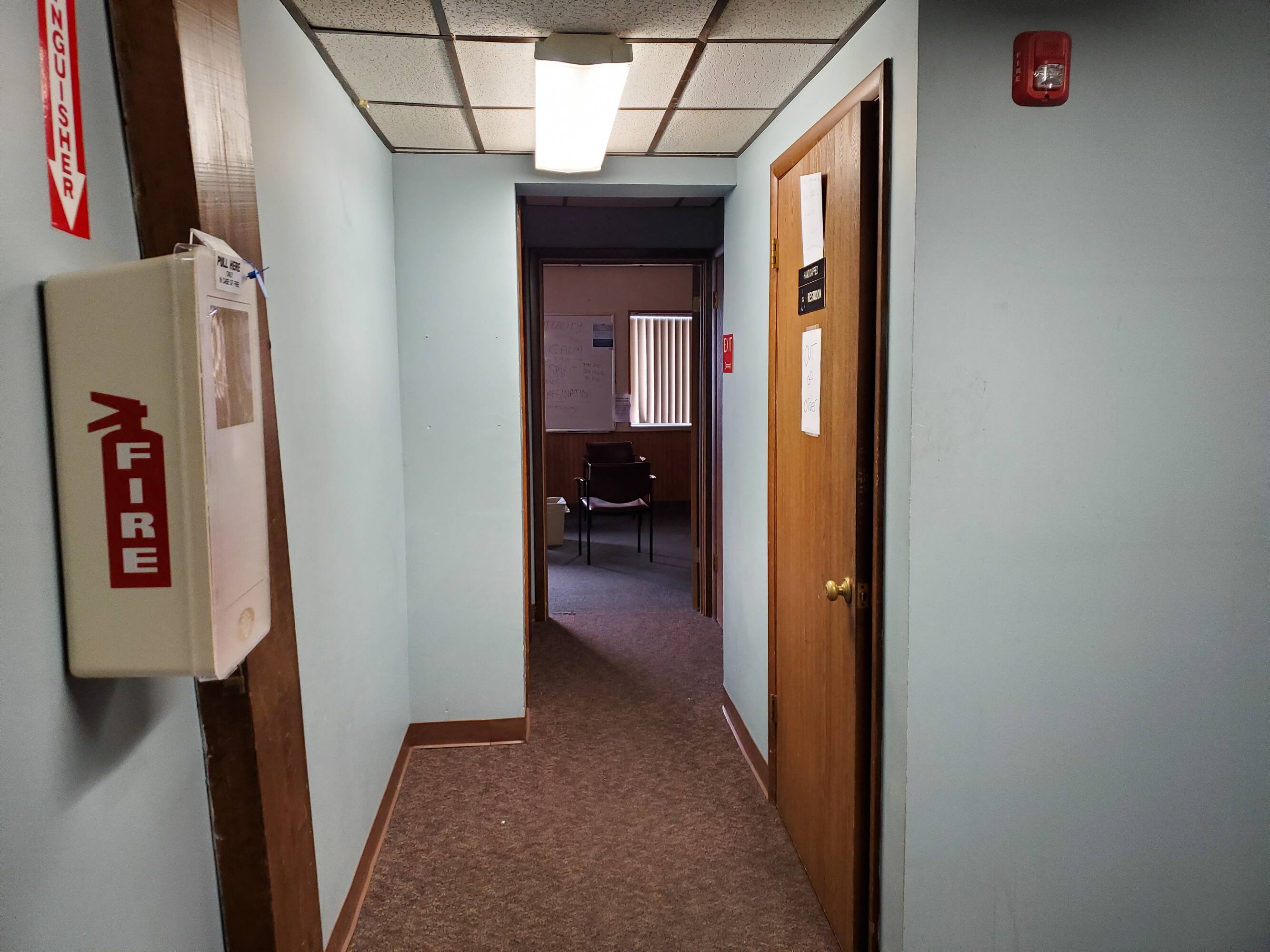 This is a 4800 sq ft brick building configured with 7 offices, 4 meeting rooms, and 3 lavatories. It also includes a reception area and waiting room. On-site parking is available for approximately 30 cars, accessible via 3 curb cuts. The property is suitable for office use, but retail use is also possible. Tenant is responsible for rent, utilities, lawn maintenance, and snow plowing.