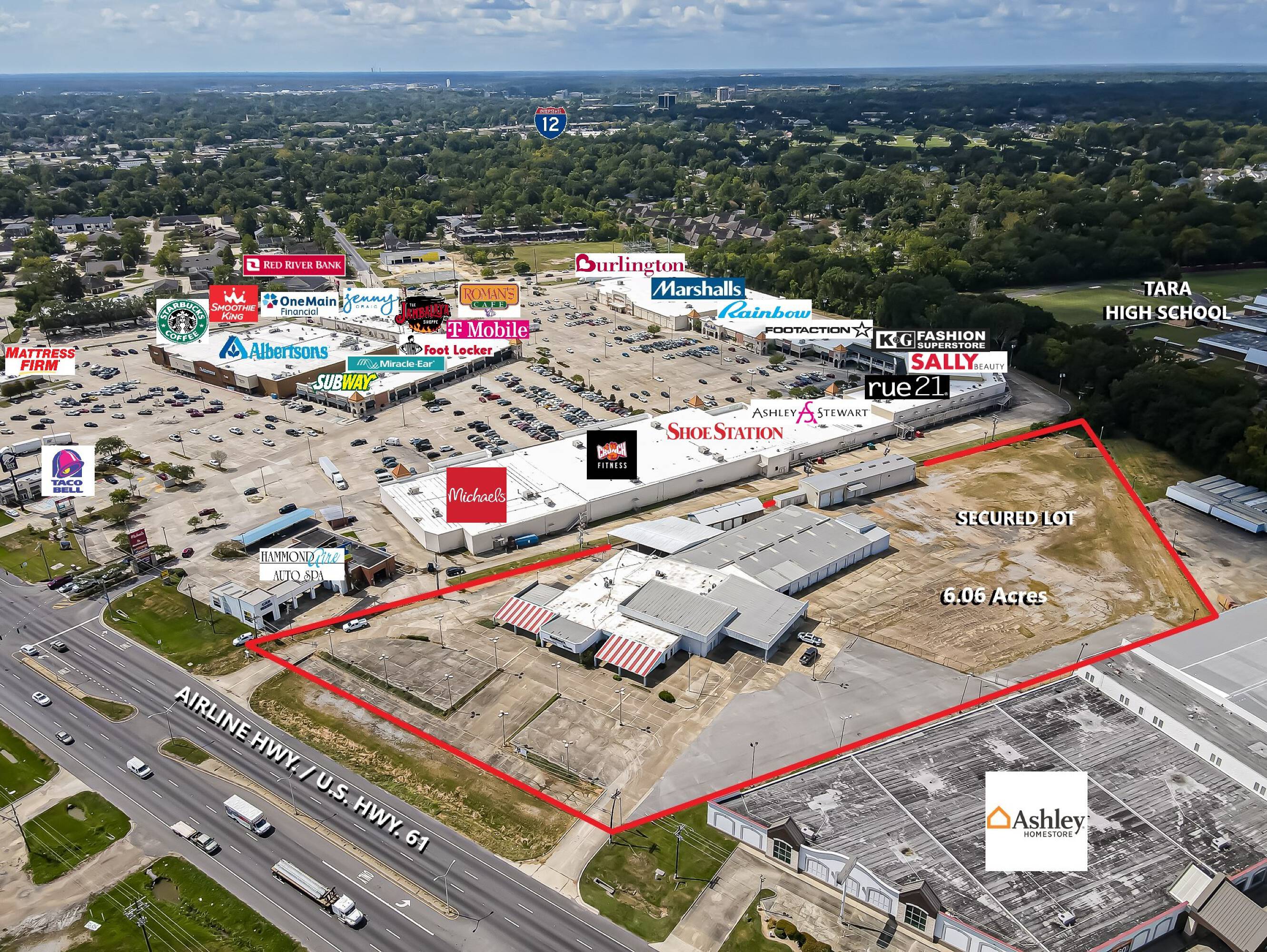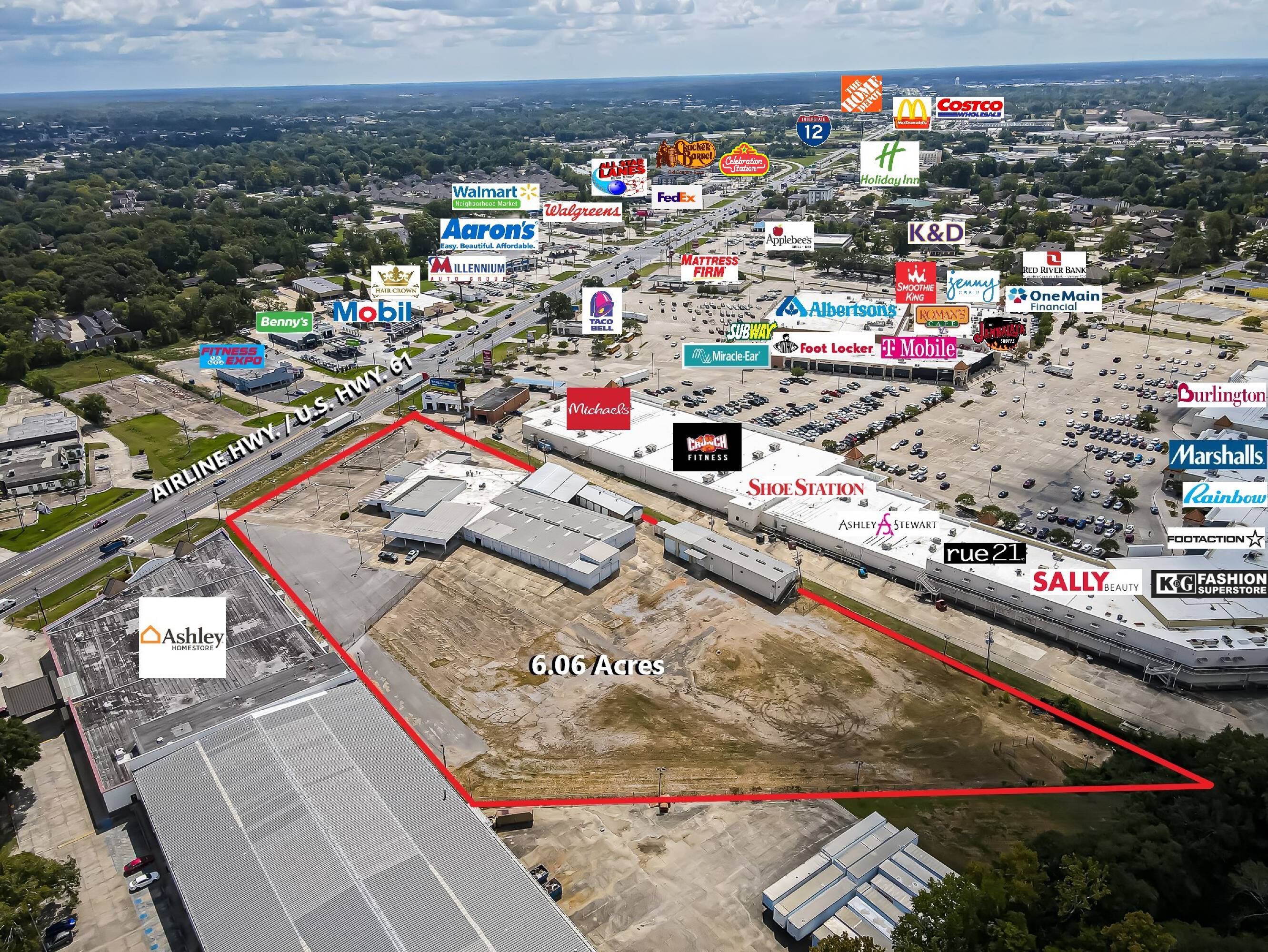 6.06 acres of commercially zoned land with existing 39,582SF building.