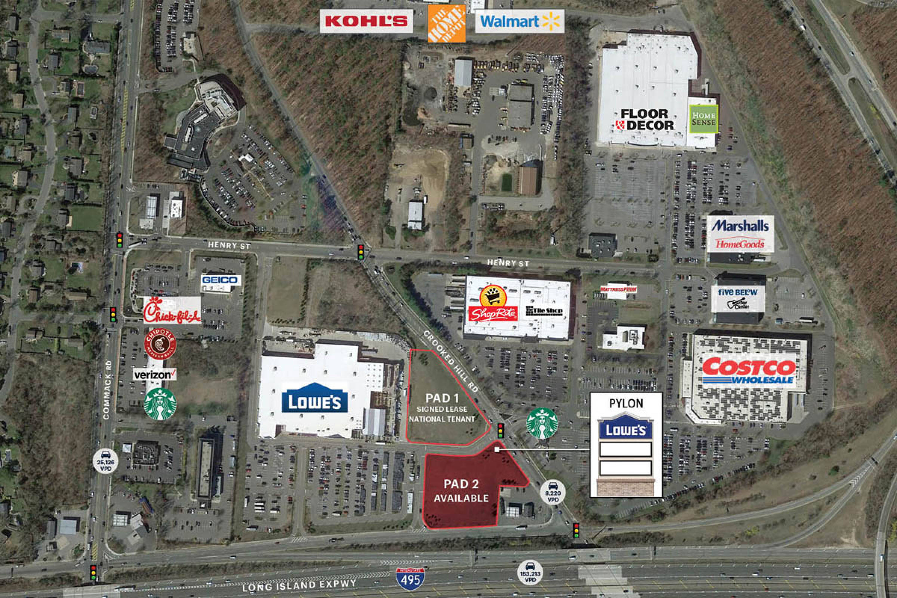 Commercial land available for lease in Commack, New York.