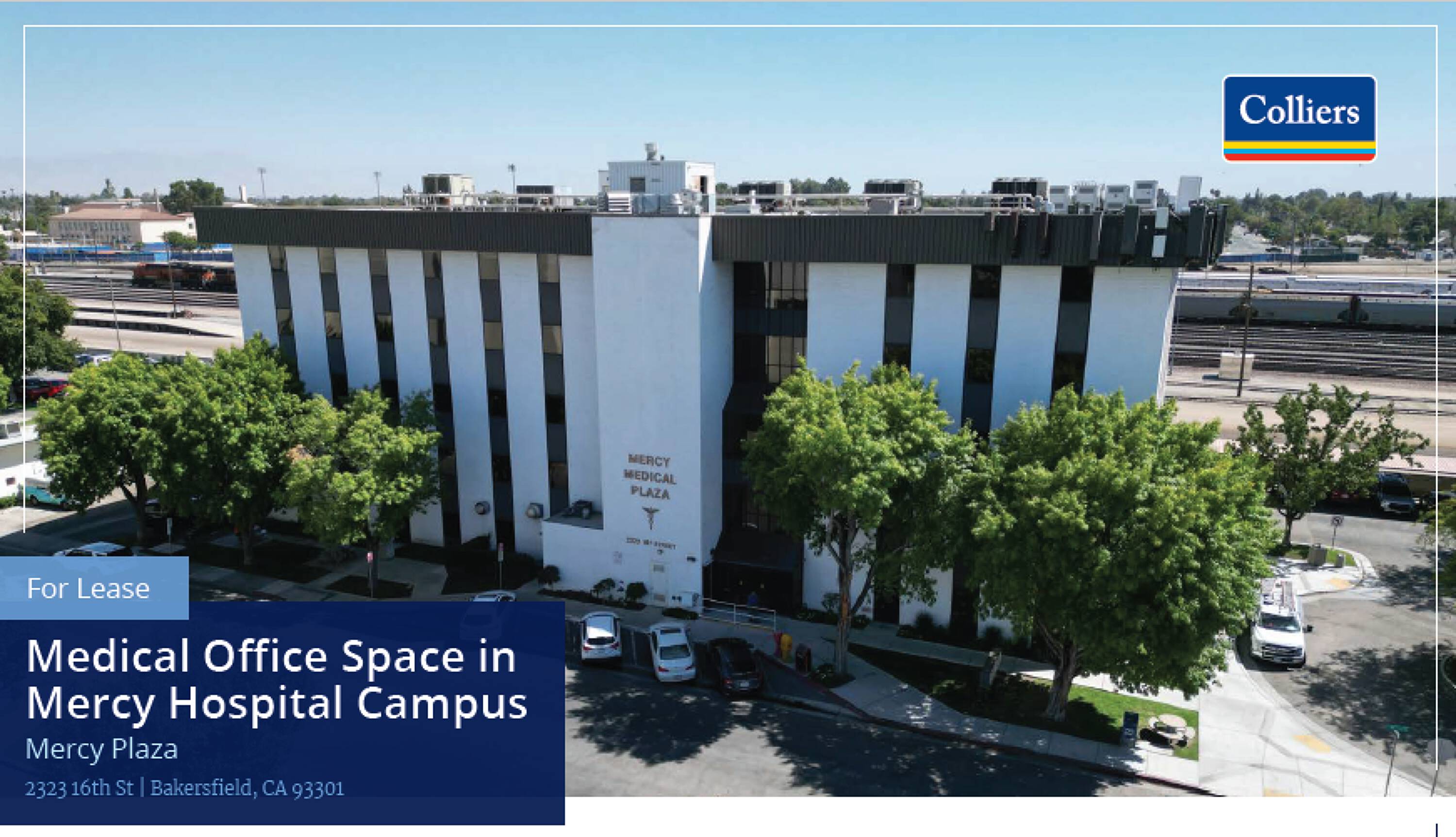 Five-story office building in downtown Bakersfield near Mercy Hospital.